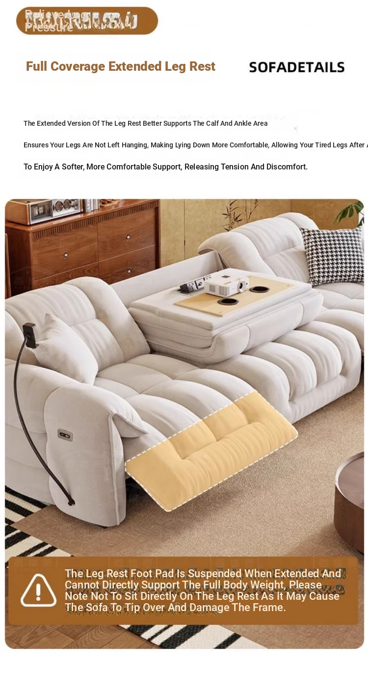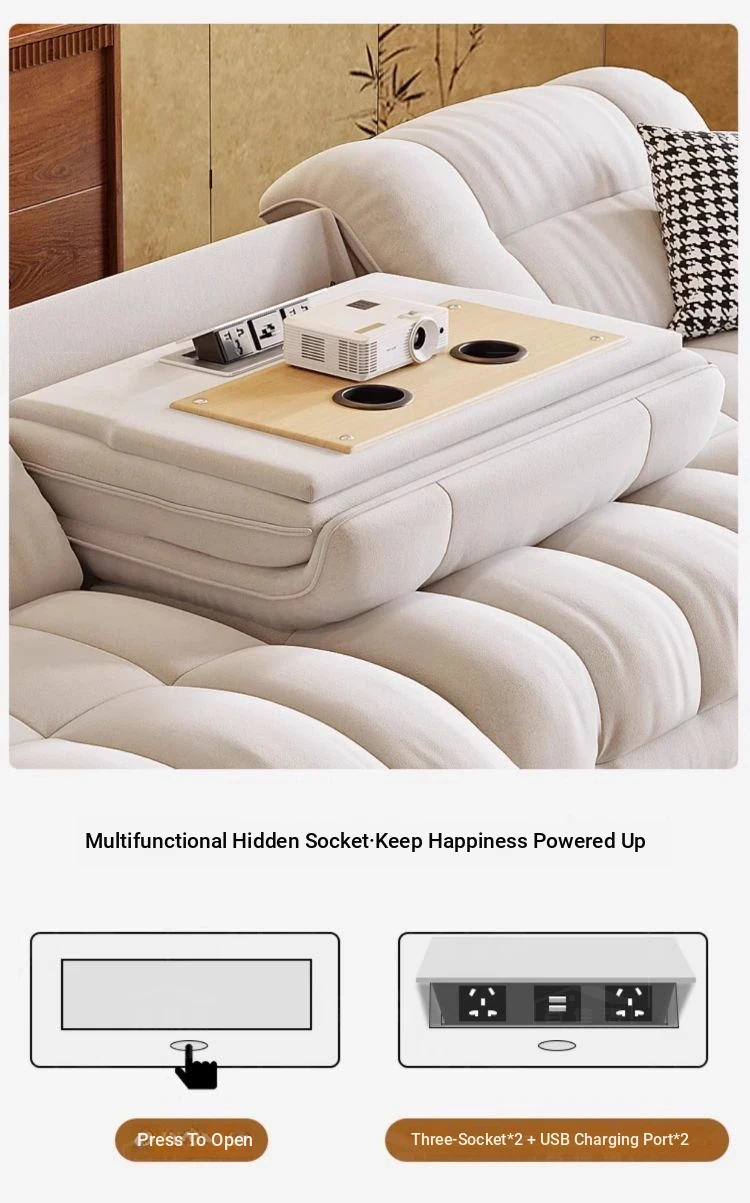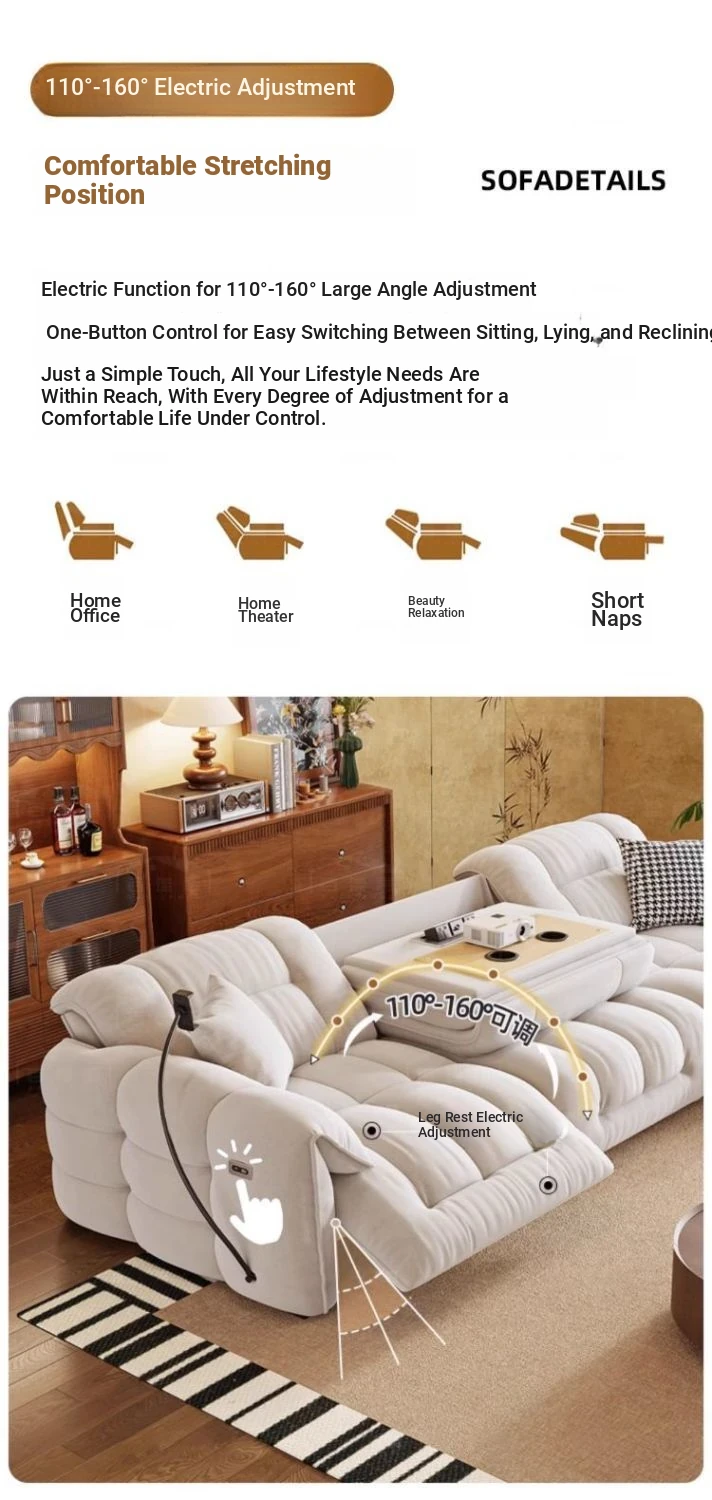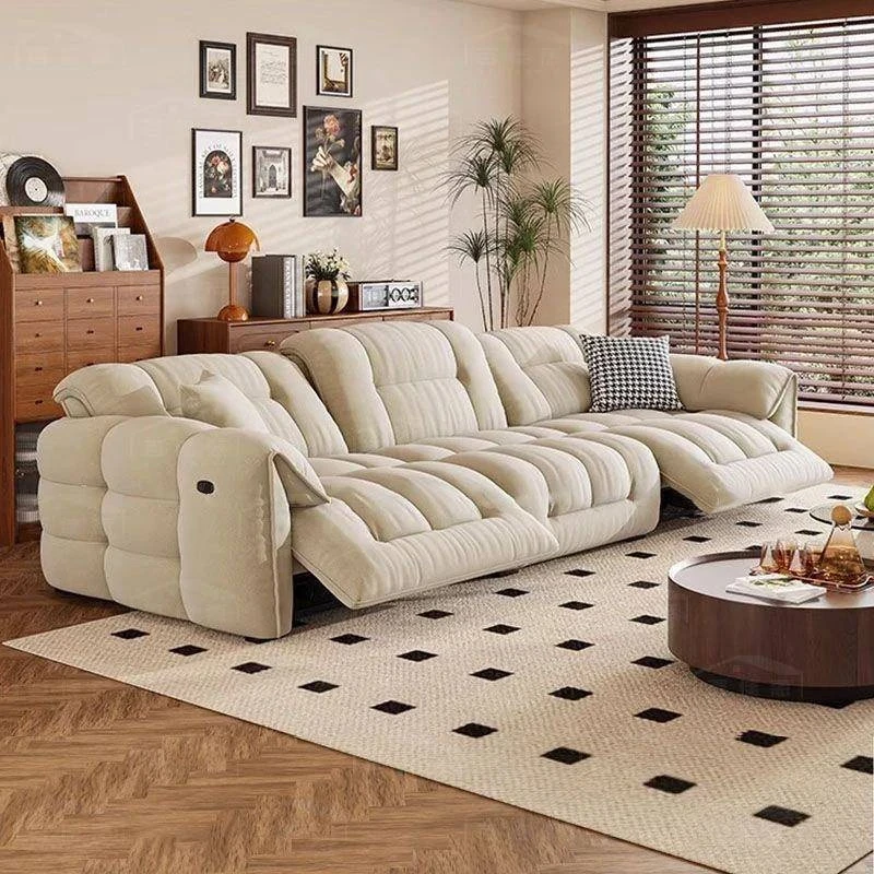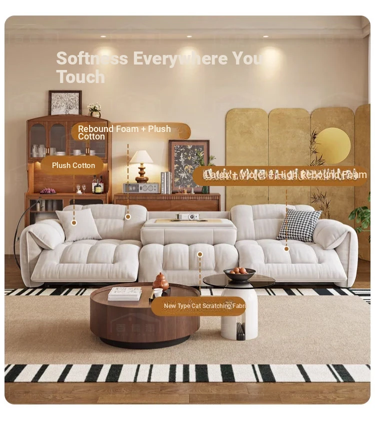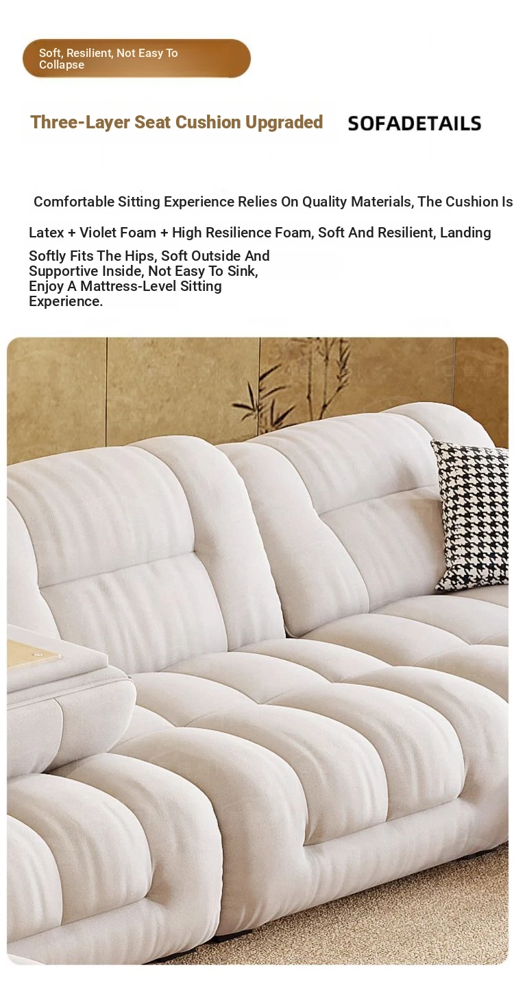 Modern Minimalist Space Electric Cabin Sofa - Functional 3-Seater Cat Scratch Fabric Couch in French Cream Style for Small Living Rooms