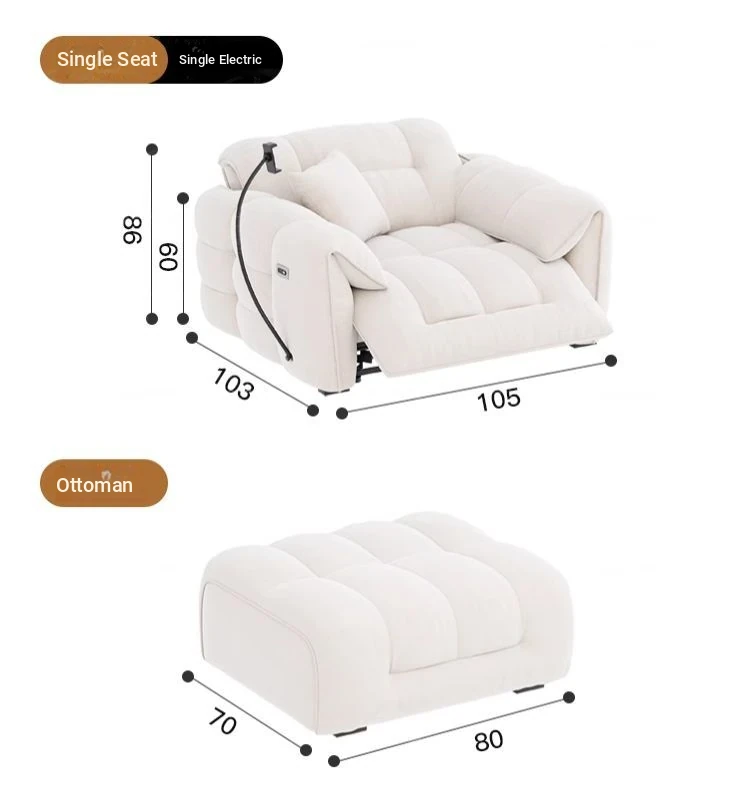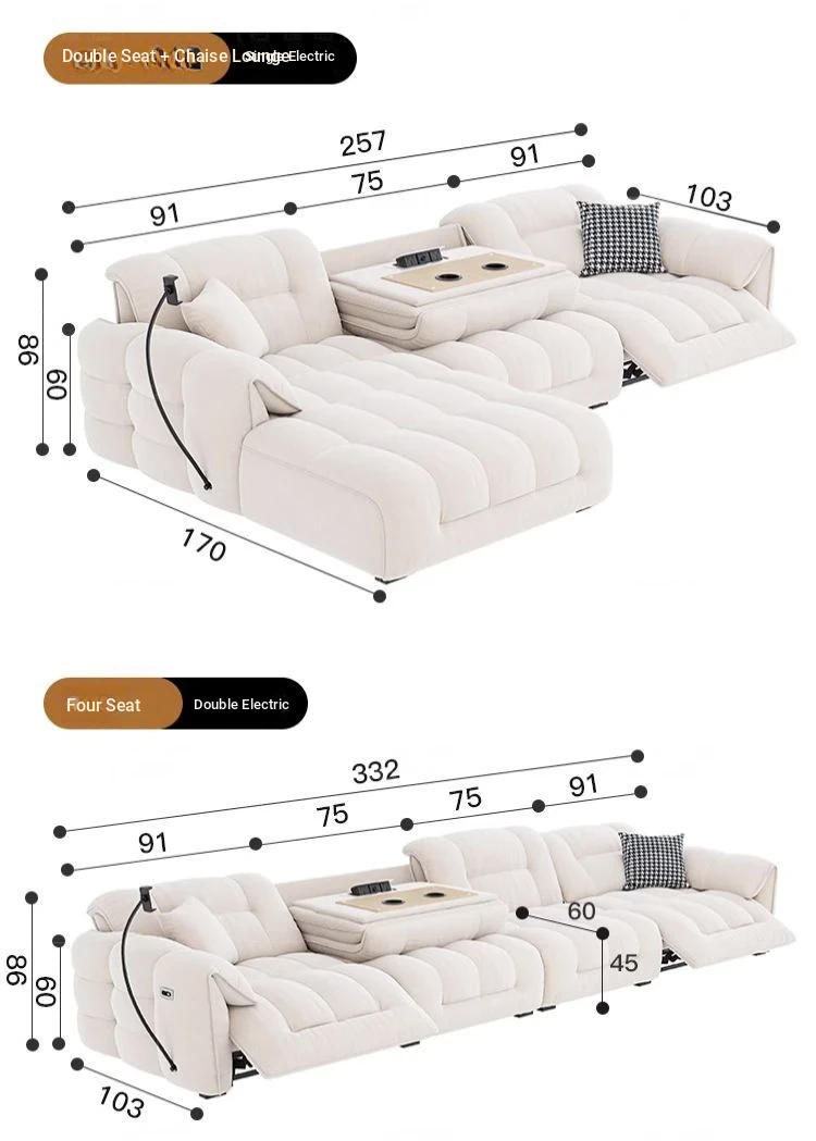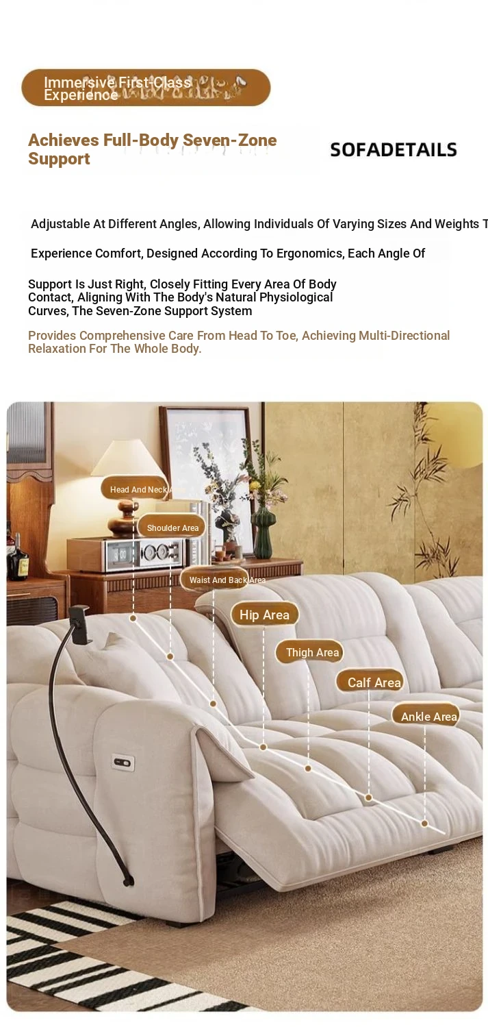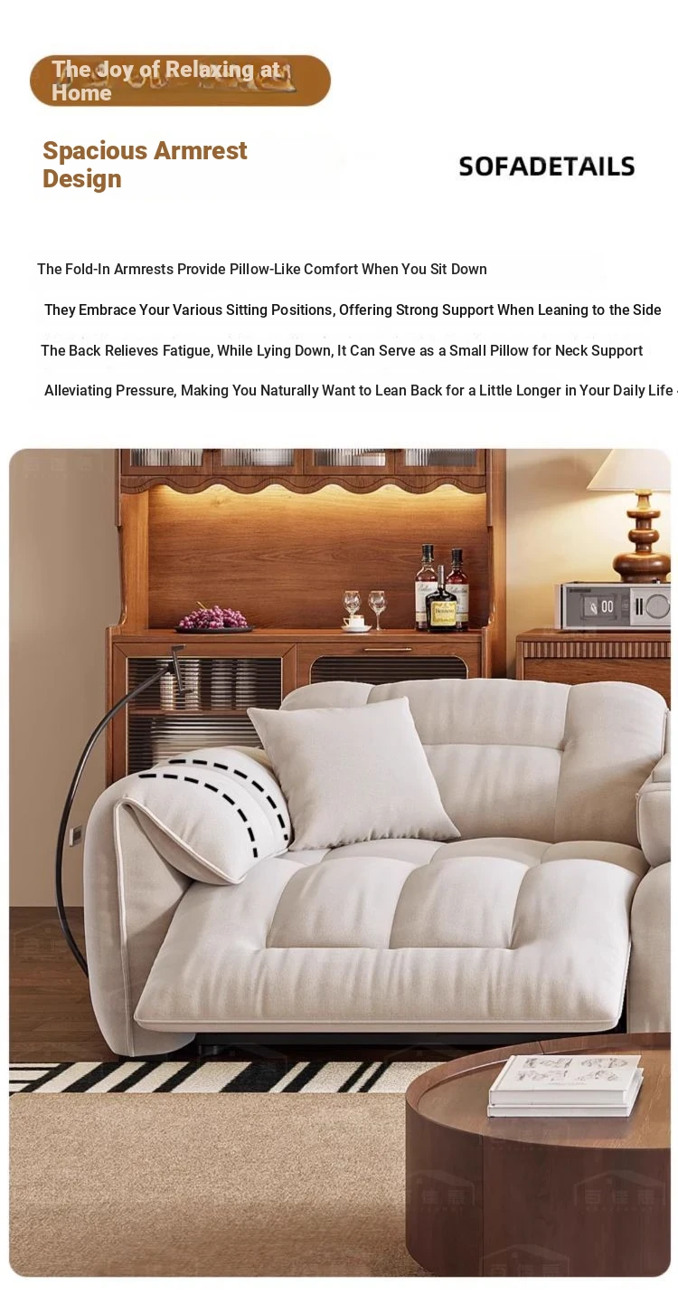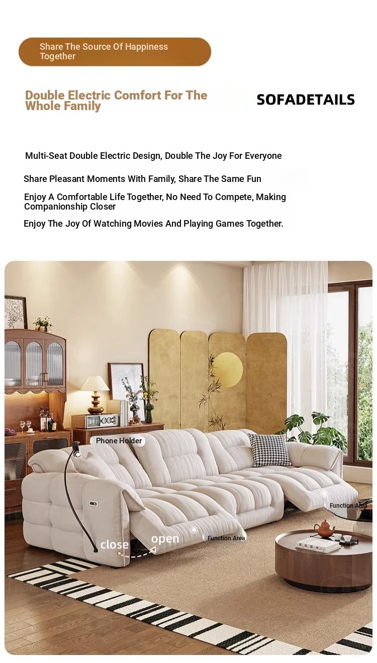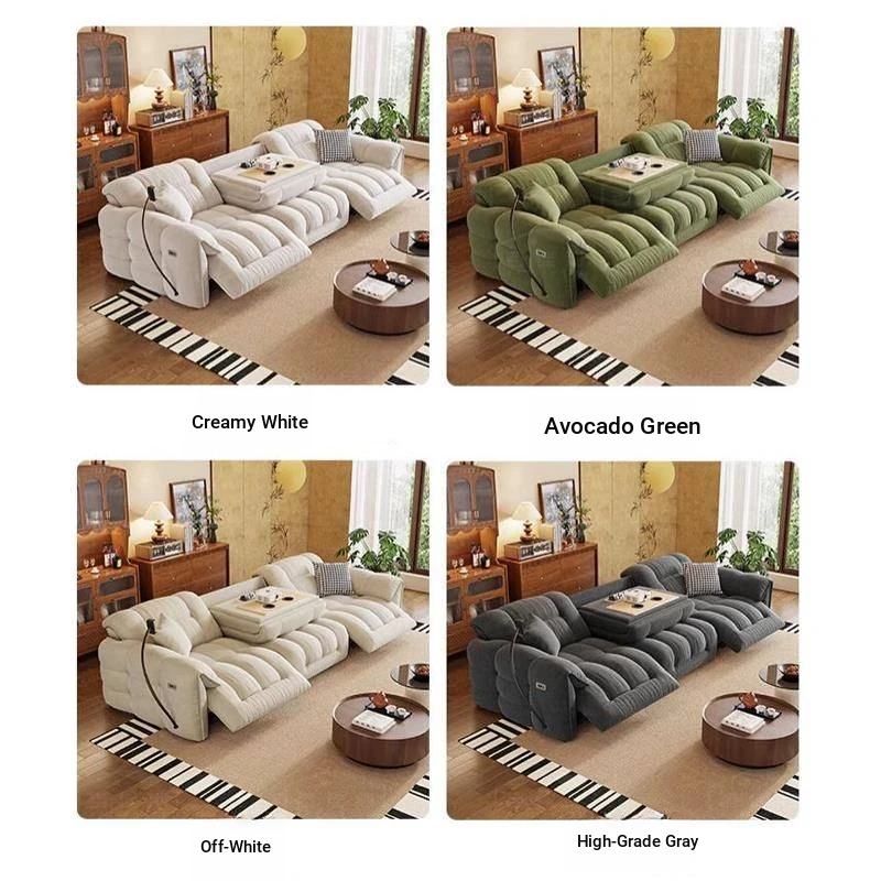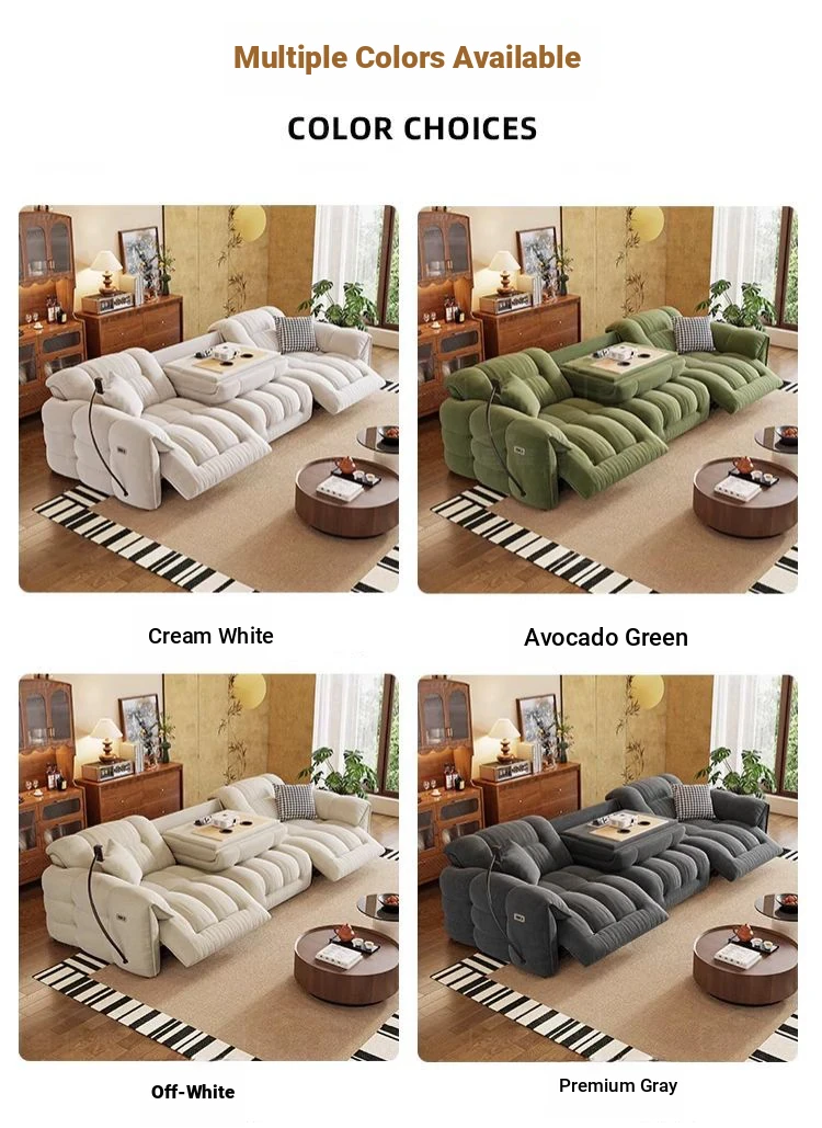 Modern Minimalist Space Electric Cabin Sofa - Functional 3-Seater Cat Scratch Fabric Couch in French Cream Style for Small Living Rooms