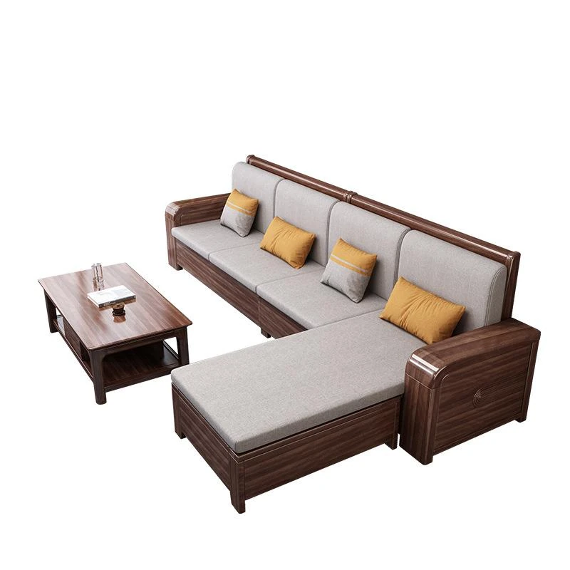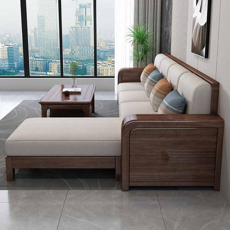 Modern Walnut Solid Wood Sofa Set – Stylish Corner Fabric Sofa for Small Spaces, Perfect for Contemporary Chinese Living Rooms – Elegant and Functional Furniture Solution