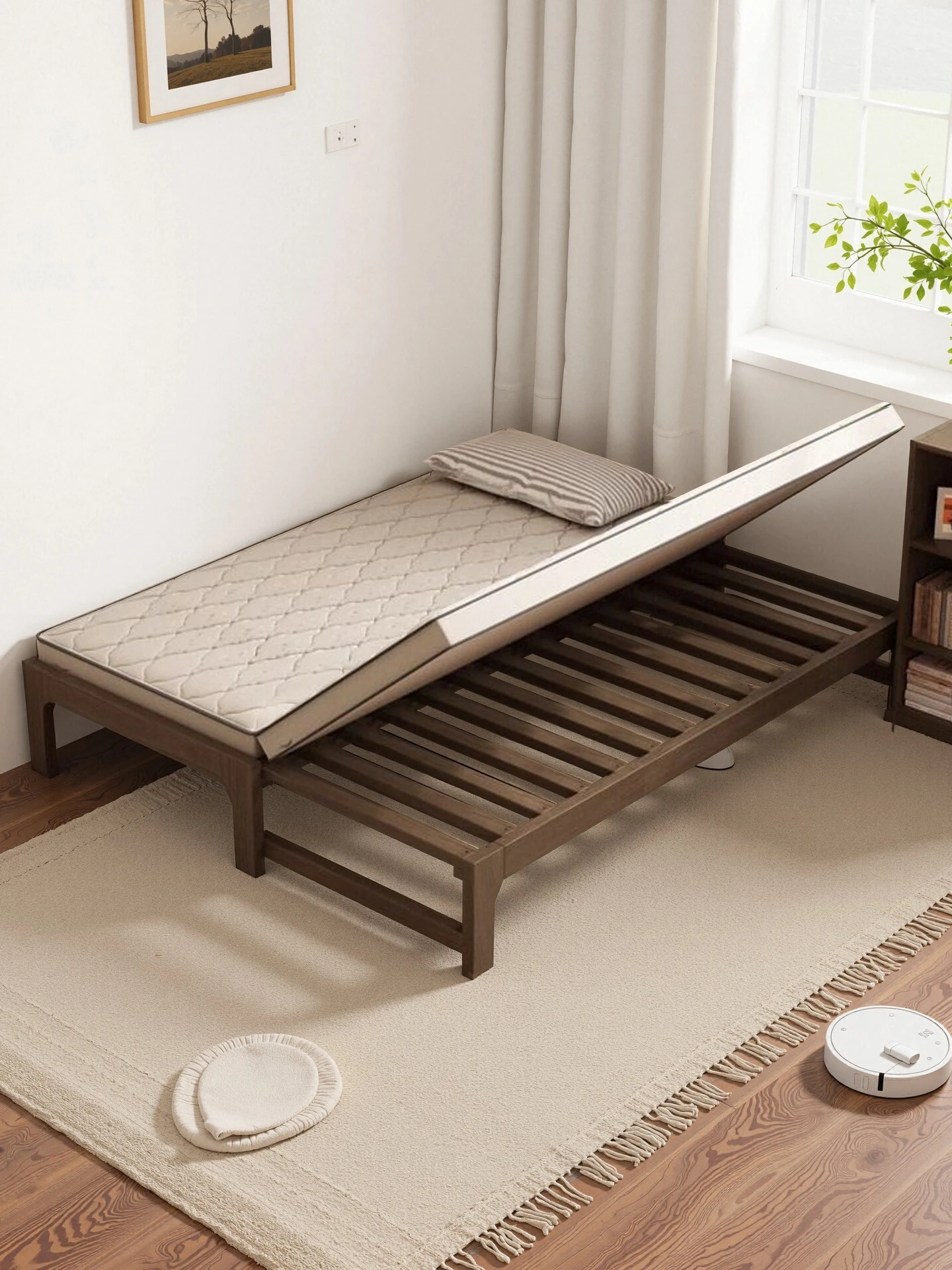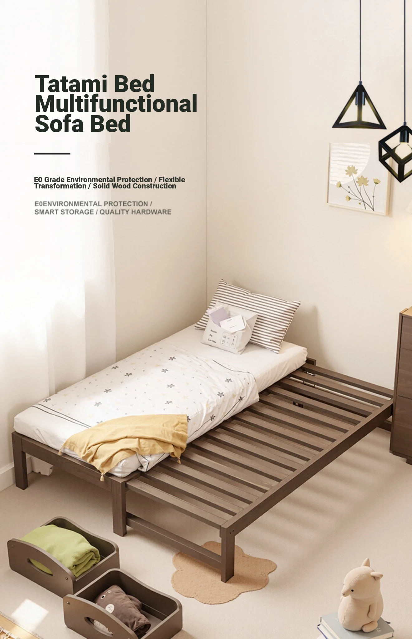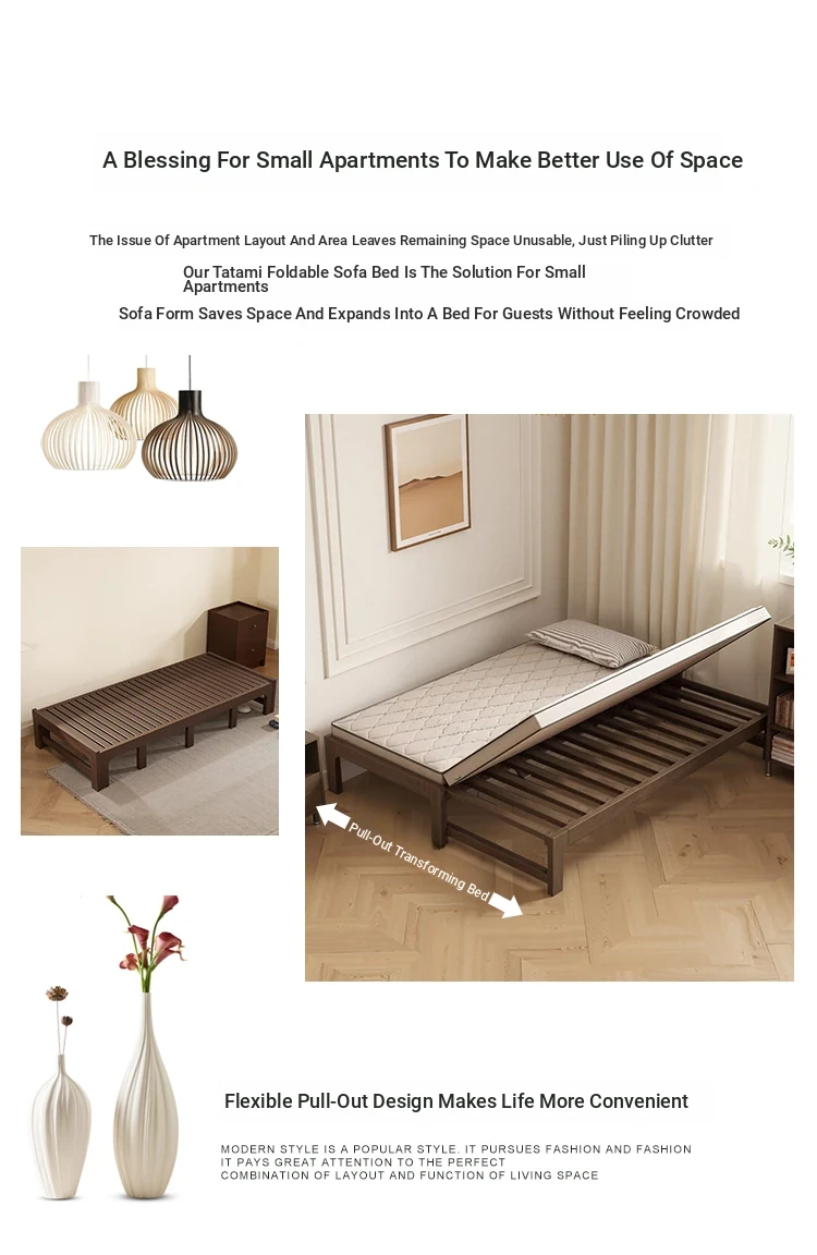 Multi-functional Solid Wood Pull-out Bed - Space-saving Expandable Sofa Bed for Small Apartments, Living Rooms, and Bedrooms, Perfect for Tatami and Foldable Design