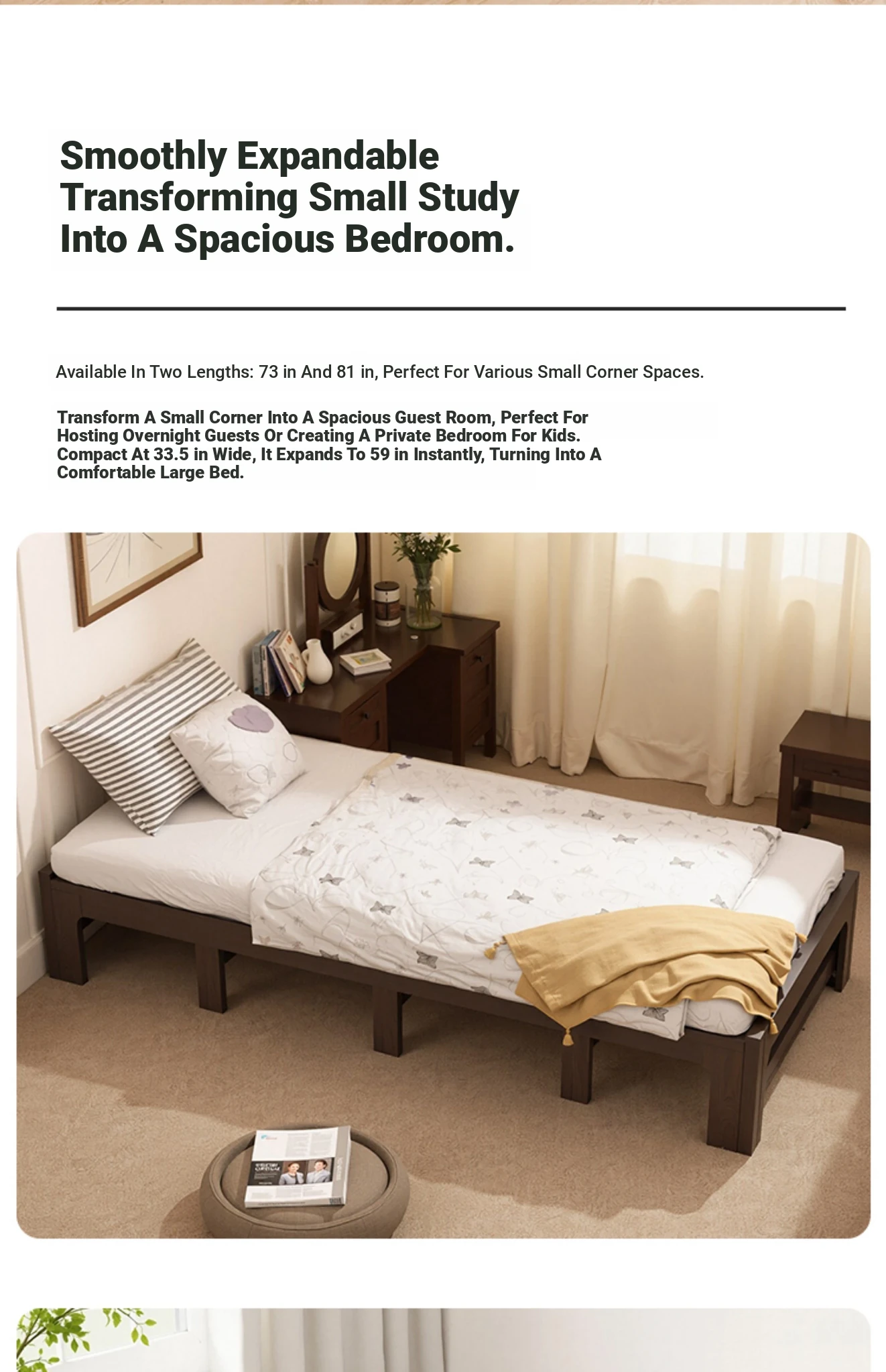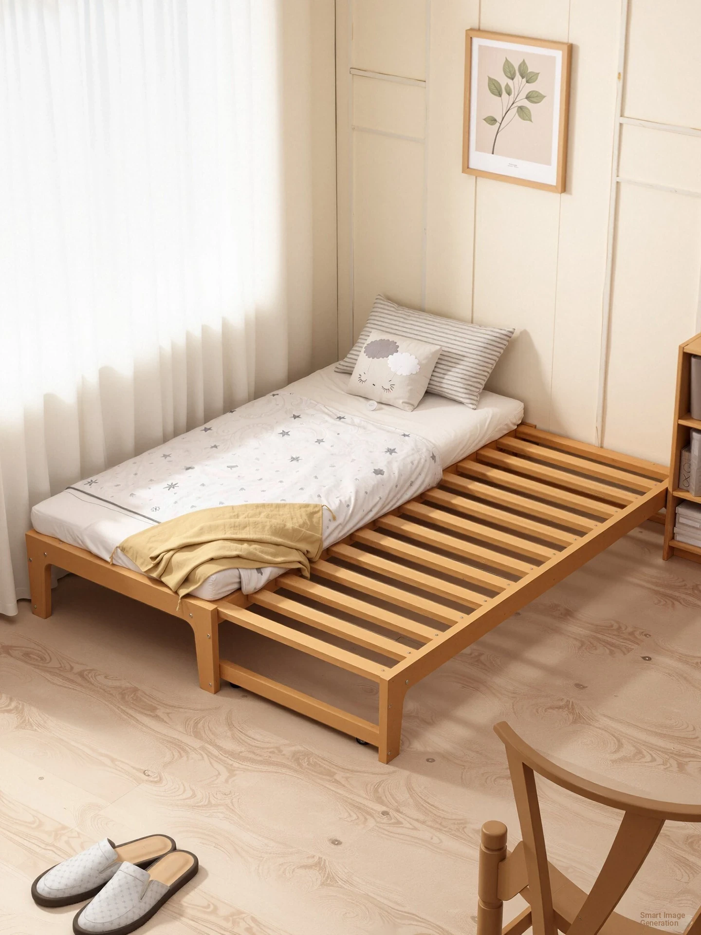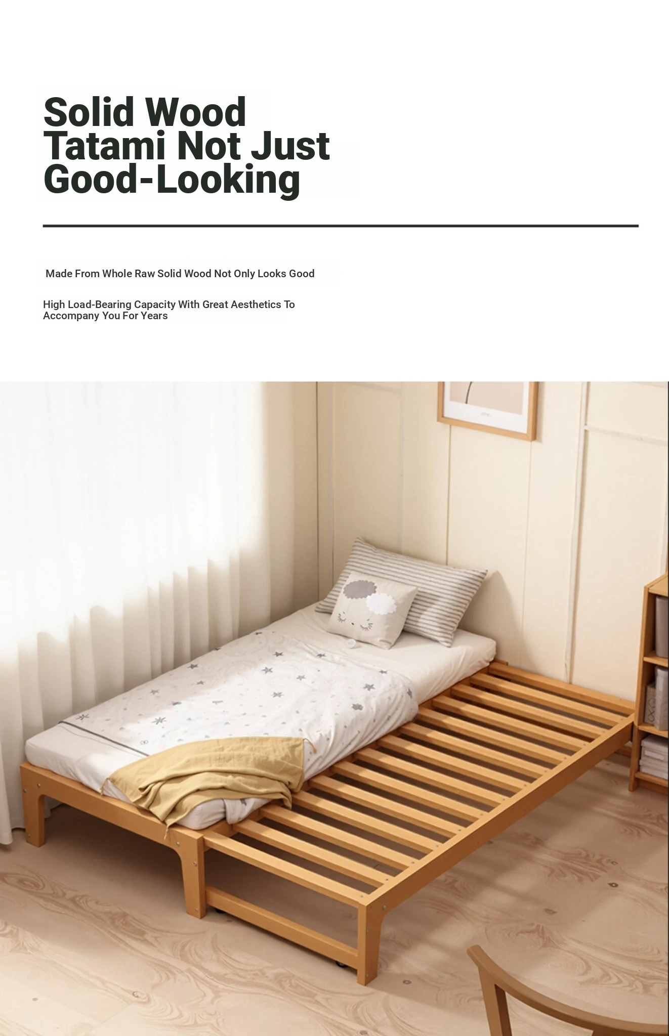 Multi-functional Solid Wood Pull-out Bed - Space-saving Expandable Sofa Bed for Small Apartments, Living Rooms, and Bedrooms, Perfect for Tatami and Foldable Design