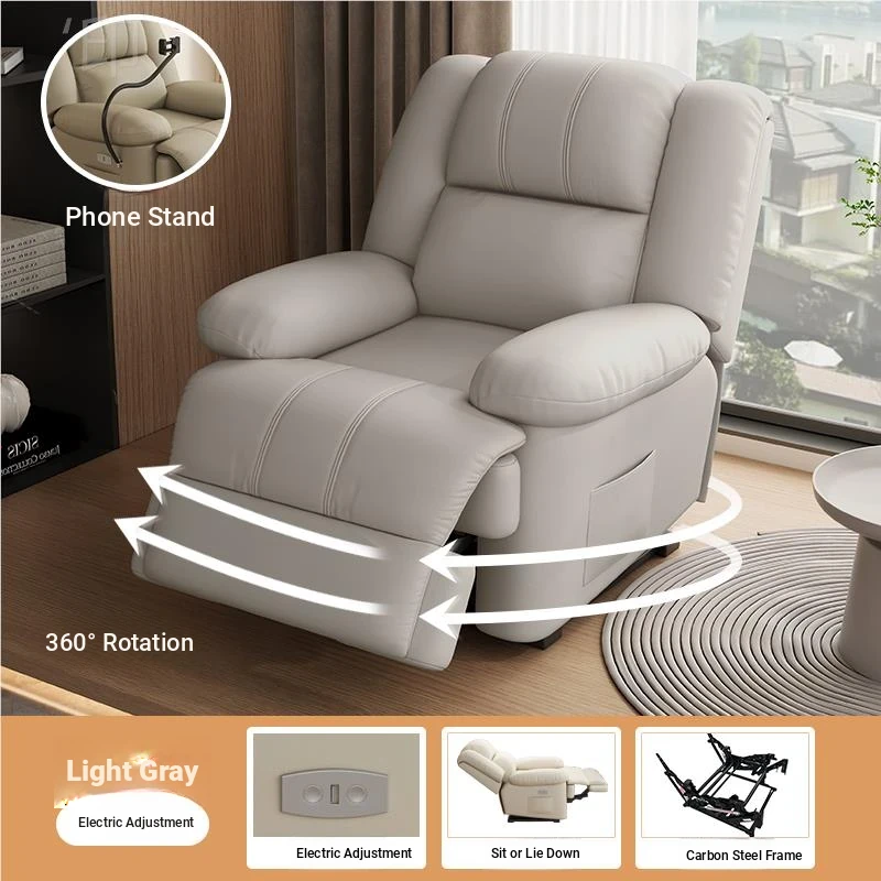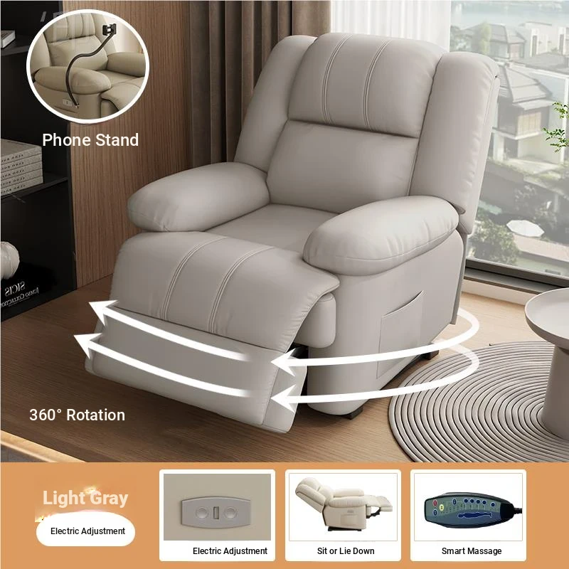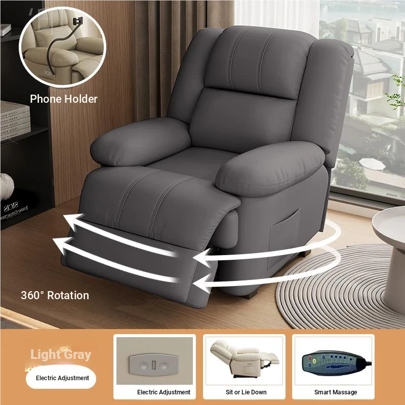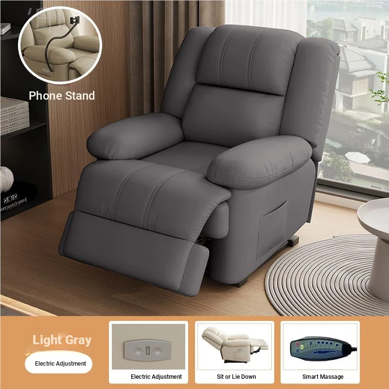Light gray electric sitting and lying USB + turn shake + massage + mobile phone bracket