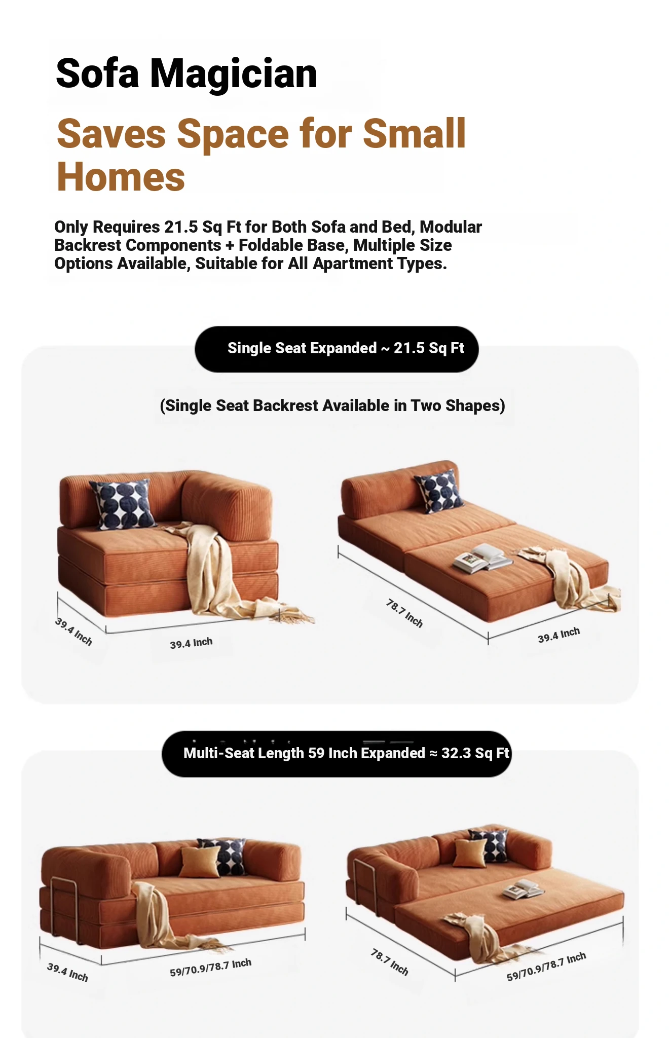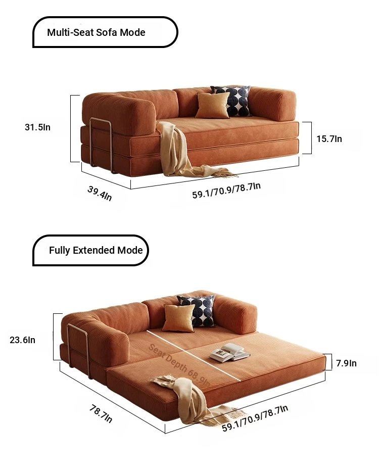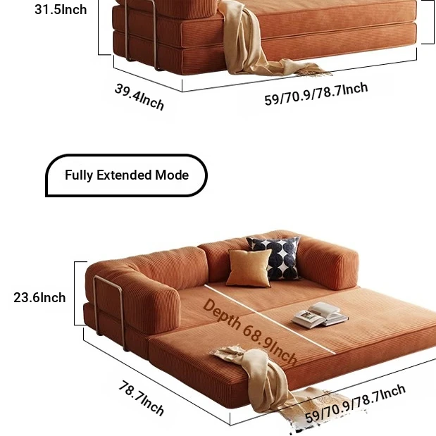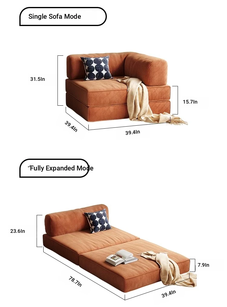 Multipurpose Foldable Sofa Bed for Small Spaces - Stylish Fabric Lazy Sofa for Living Room and Study, Perfect for Compact Living Areas