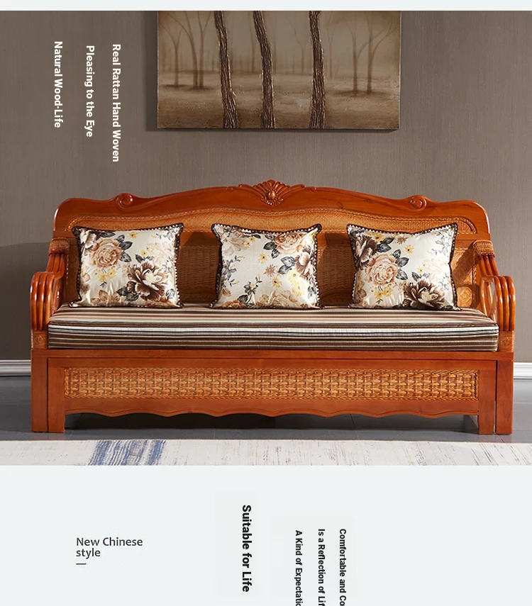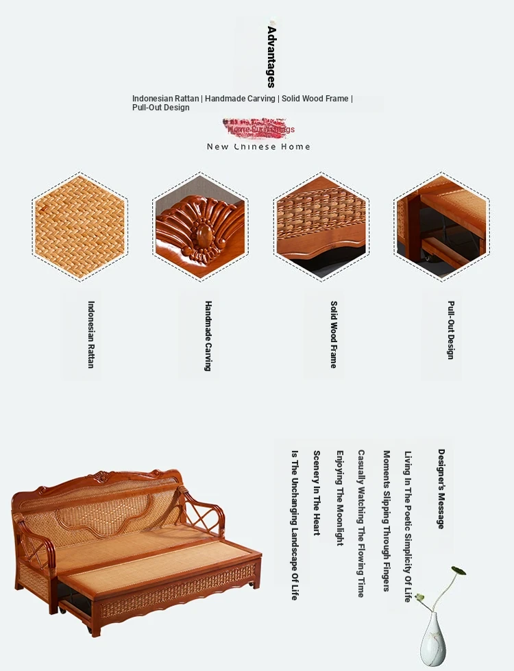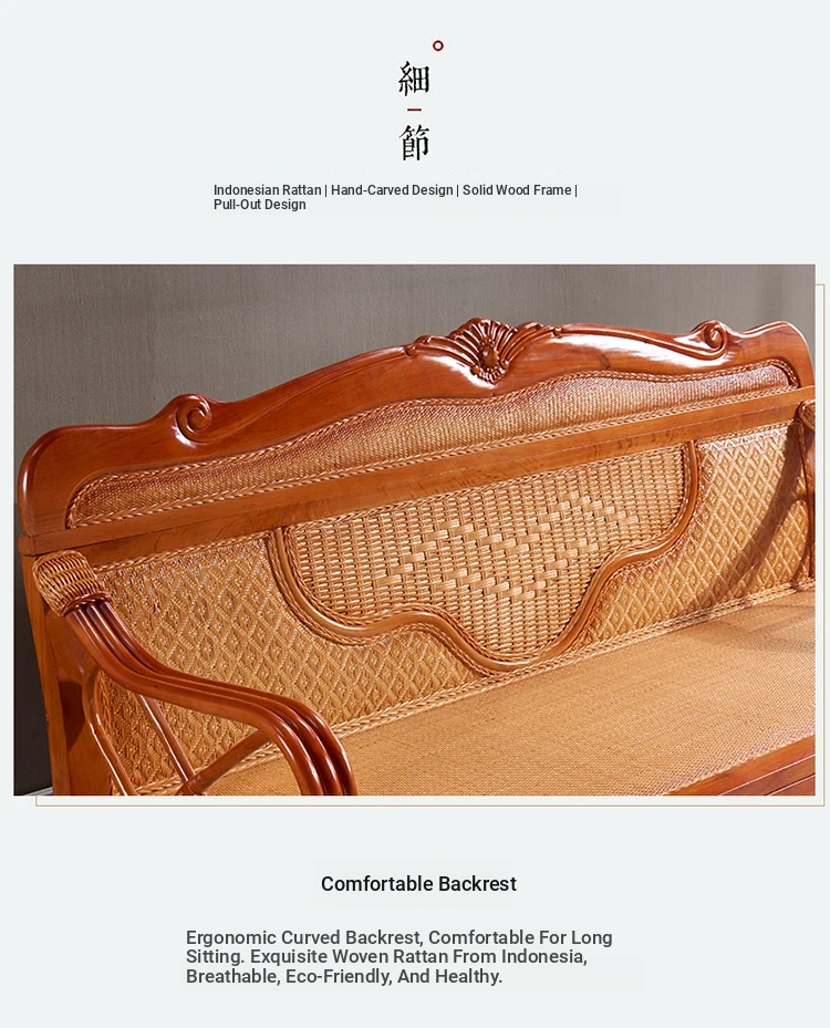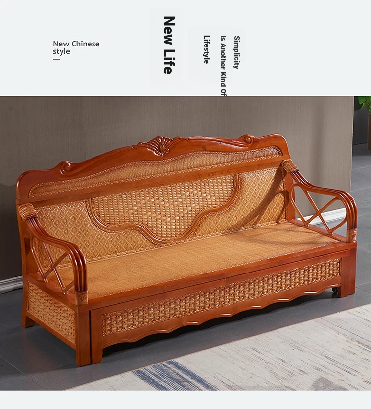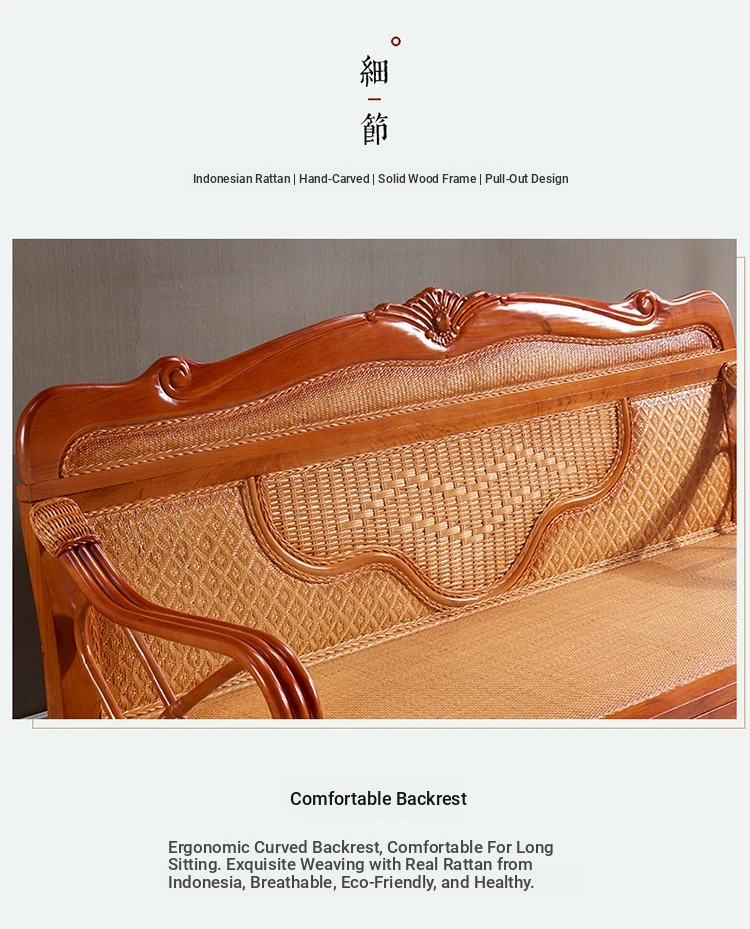 Natural Rattan Sofa Bed – Versatile Solid Wood and Rattan Furniture, Foldable 3-Seater Sofa for Comfort and Style, Perfect for Any Living Space!