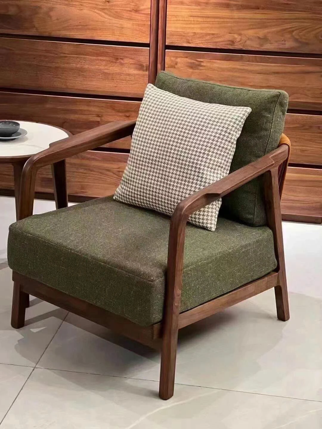 New Chinese Style North American Black Walnut Leisure Chair - Single Sofa Chair for Villas, Solid Wood Reception Chair for Tea Rooms and Meetings. Perfect for Comfortable Conversations!