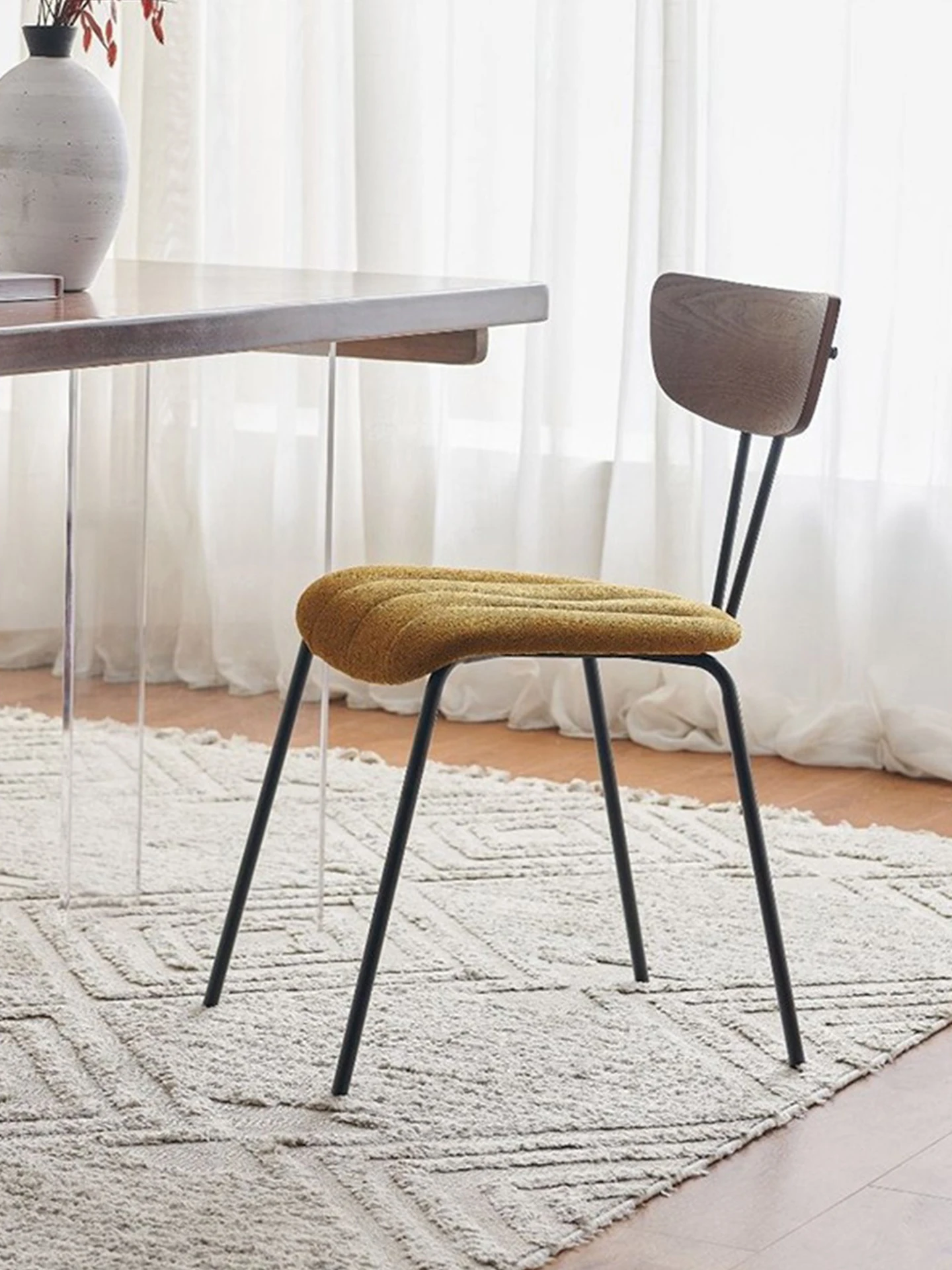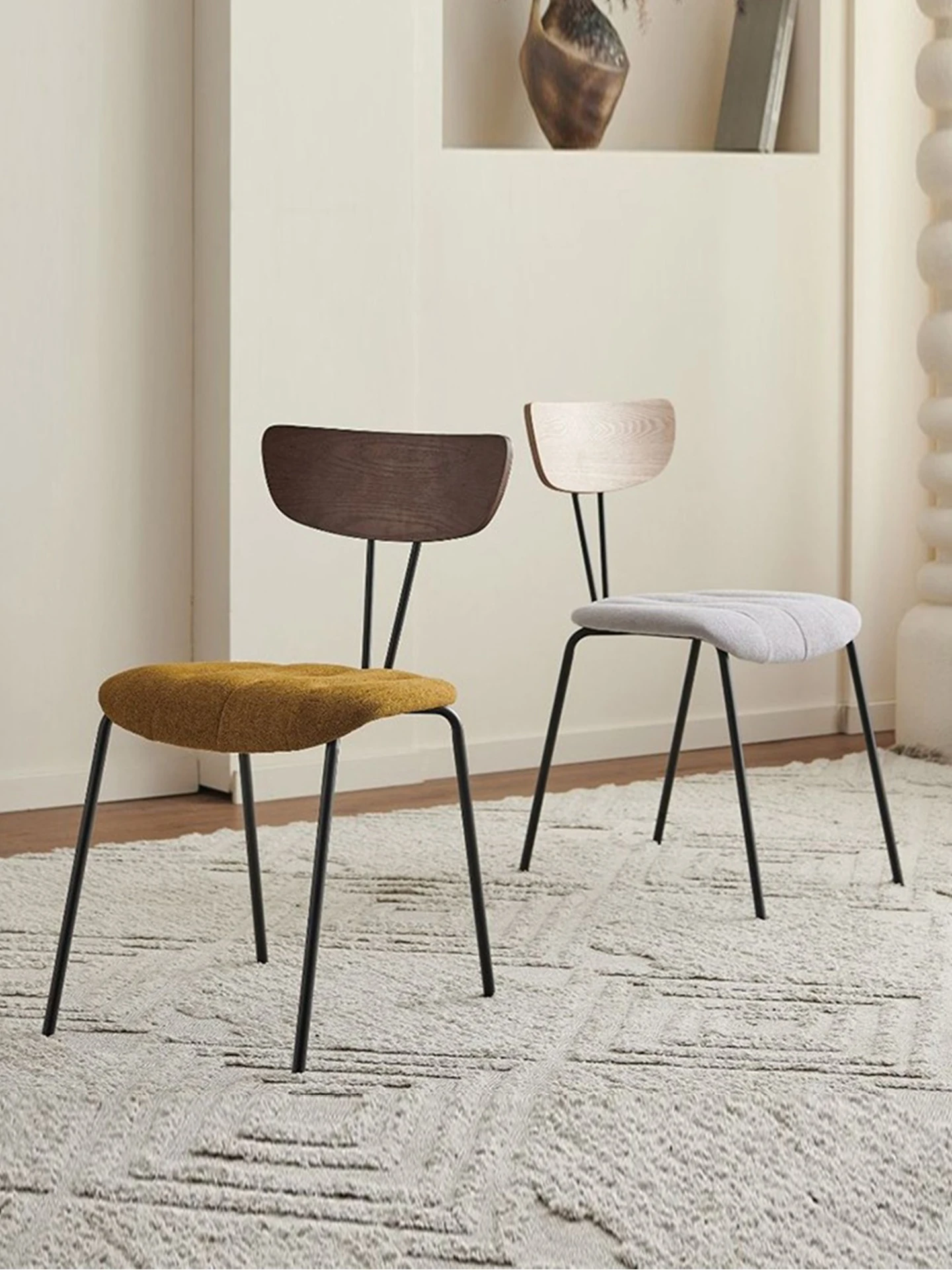 Nordic Minimalist Luxury Dining Chair - Soft Upholstered Backrest, Iron Frame, Perfect for Home, Casual Spaces, and Designer Coffee Shops
