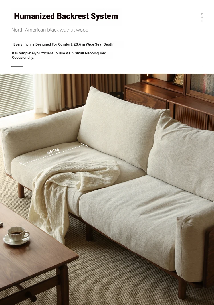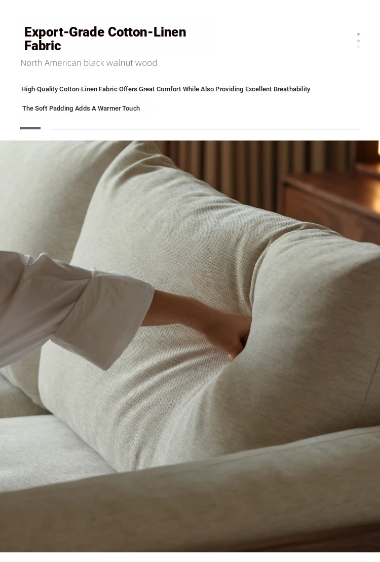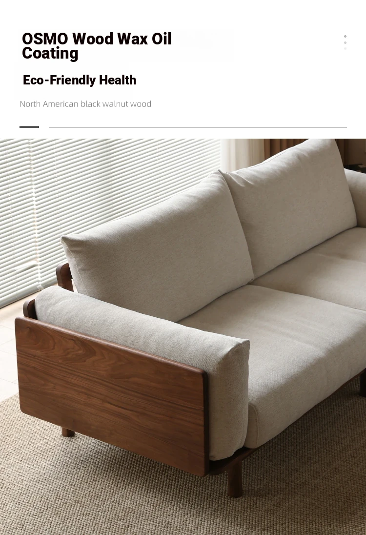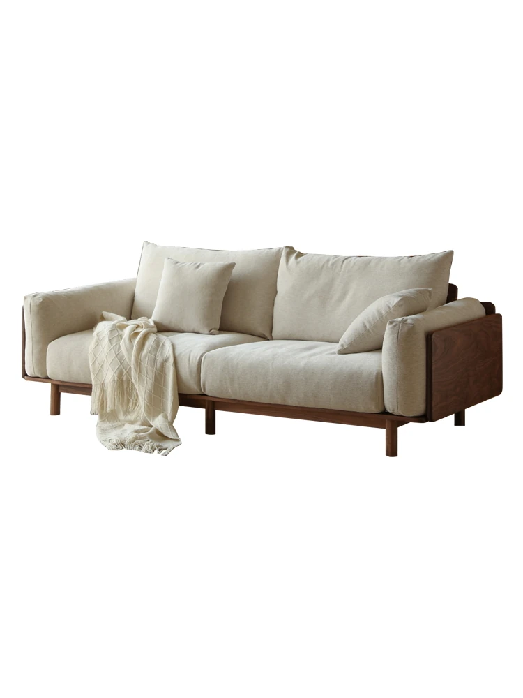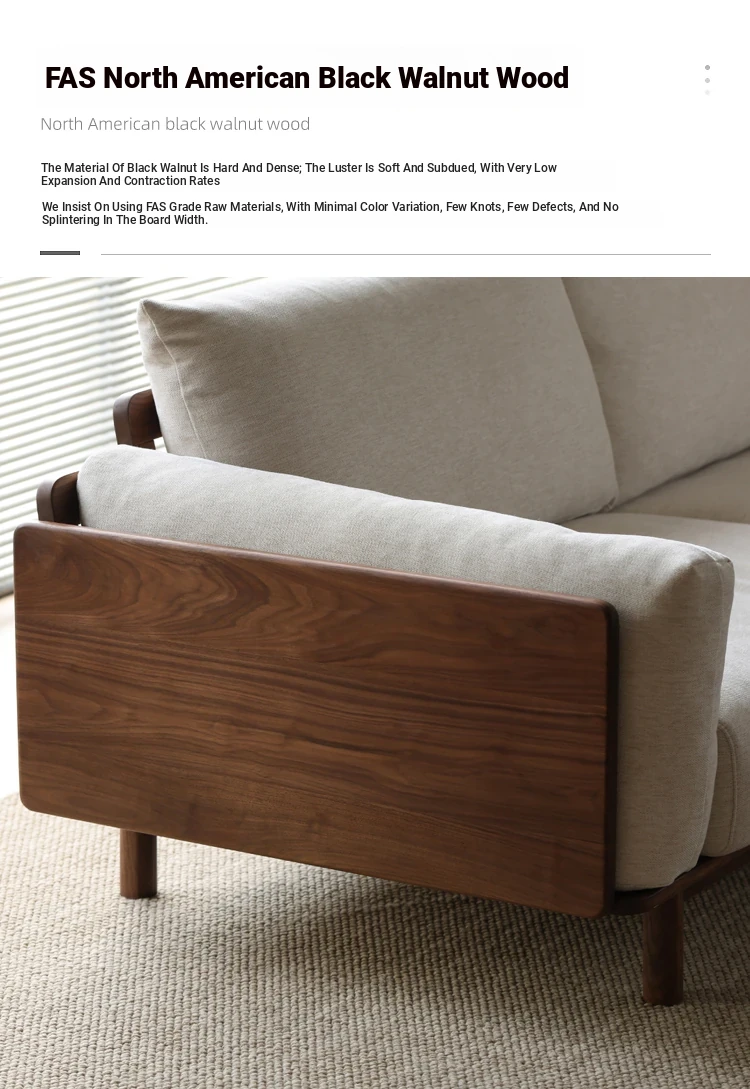 North American Black Walnut Solid Wood Sofa - Nordic Style Three-Seater Washable Fabric Sofa for Living Room