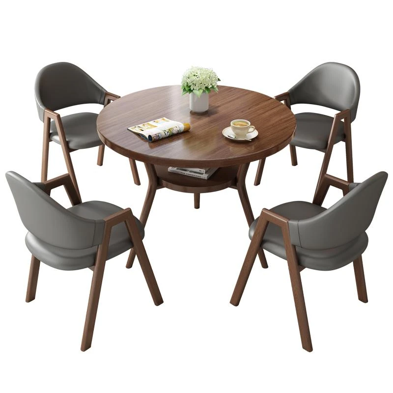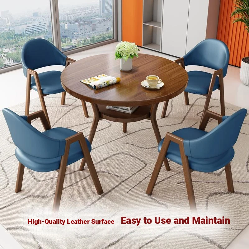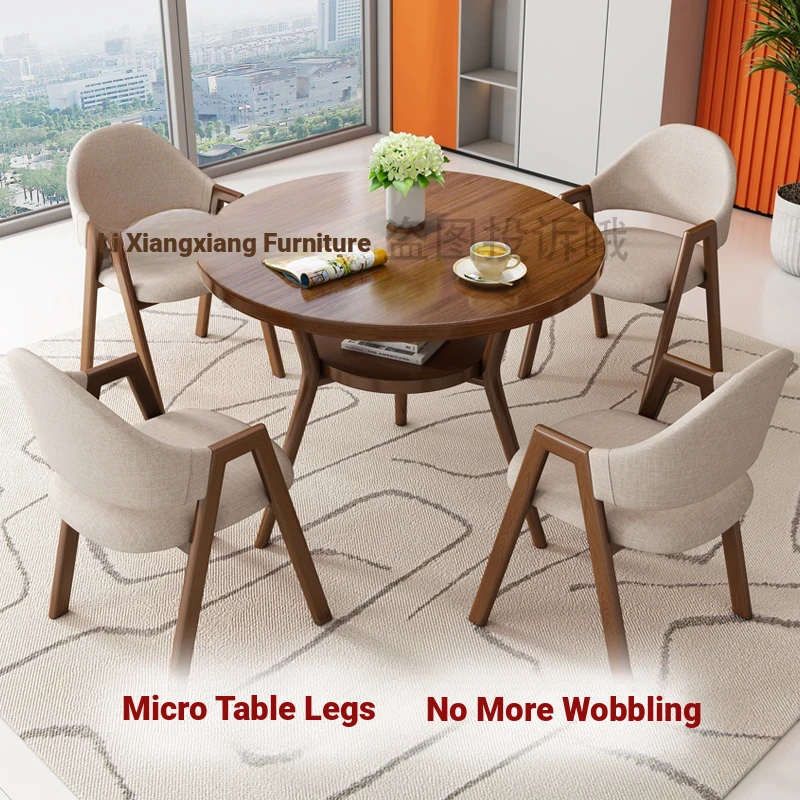Office Meeting Area: 4-Chair Negotiation Table Set with Round Reception Desk - Ideal for Discussions and Client Meetings