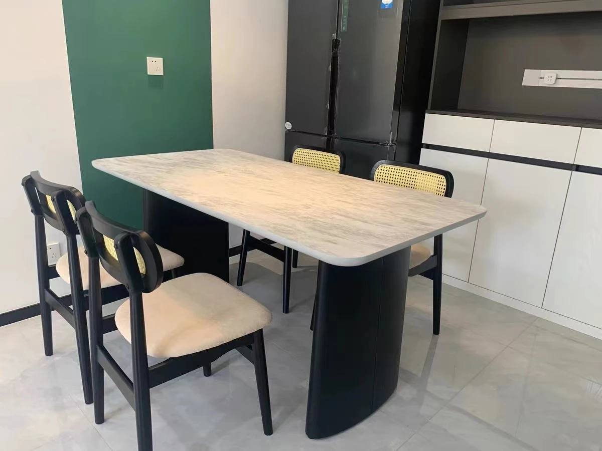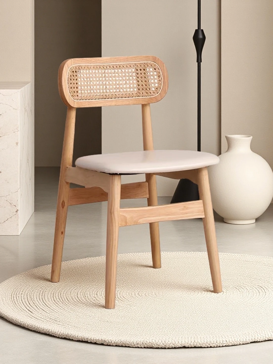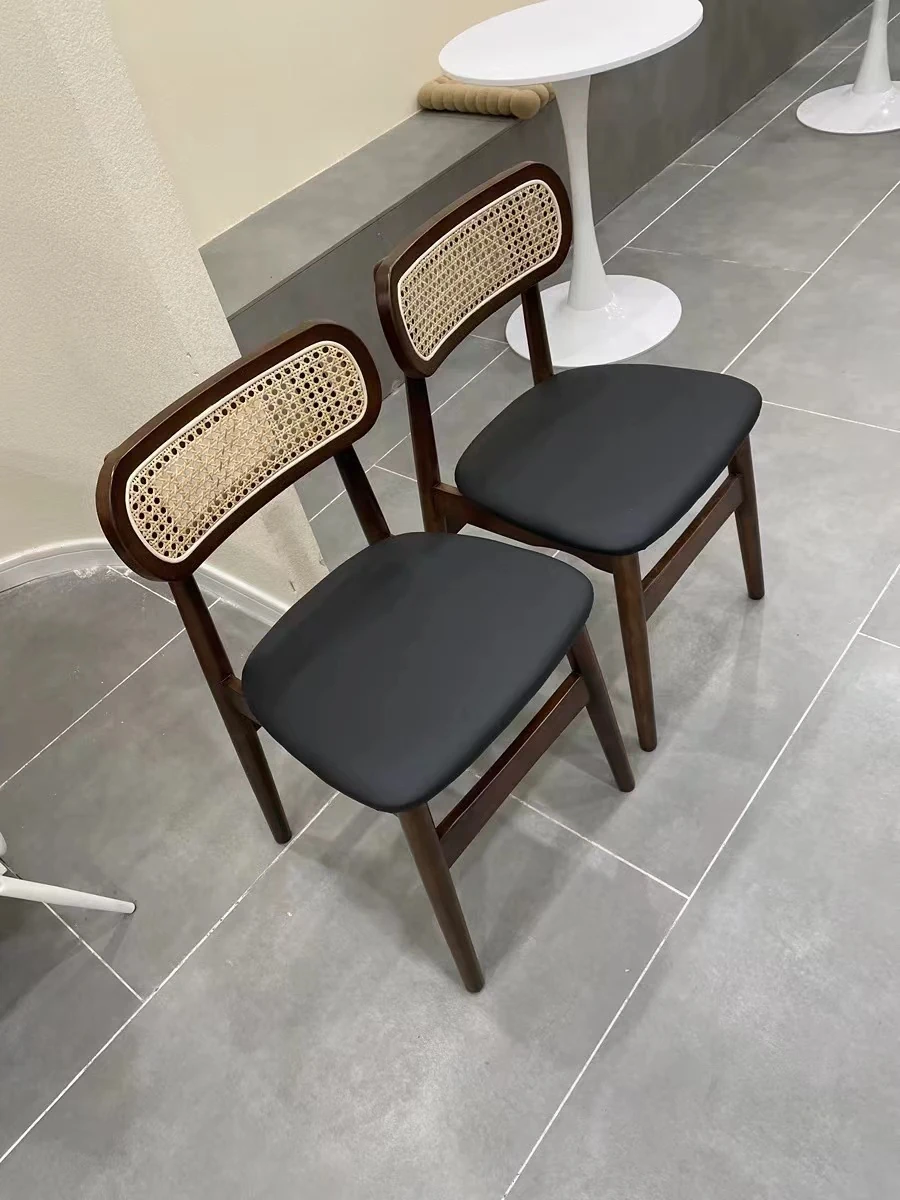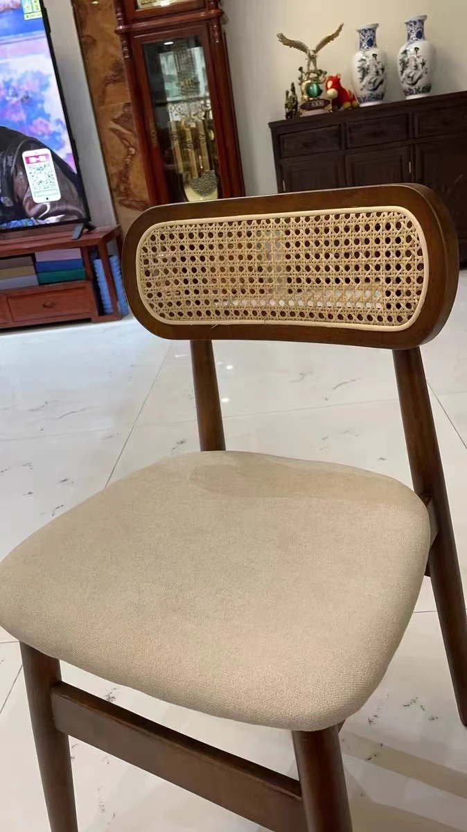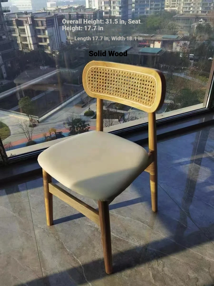 OMEAN Retro Rattan-Woven Solid Wood Designer Outdoor Dining Chair - Stylish Leather and Linen Accent for Weddings and Celebrations