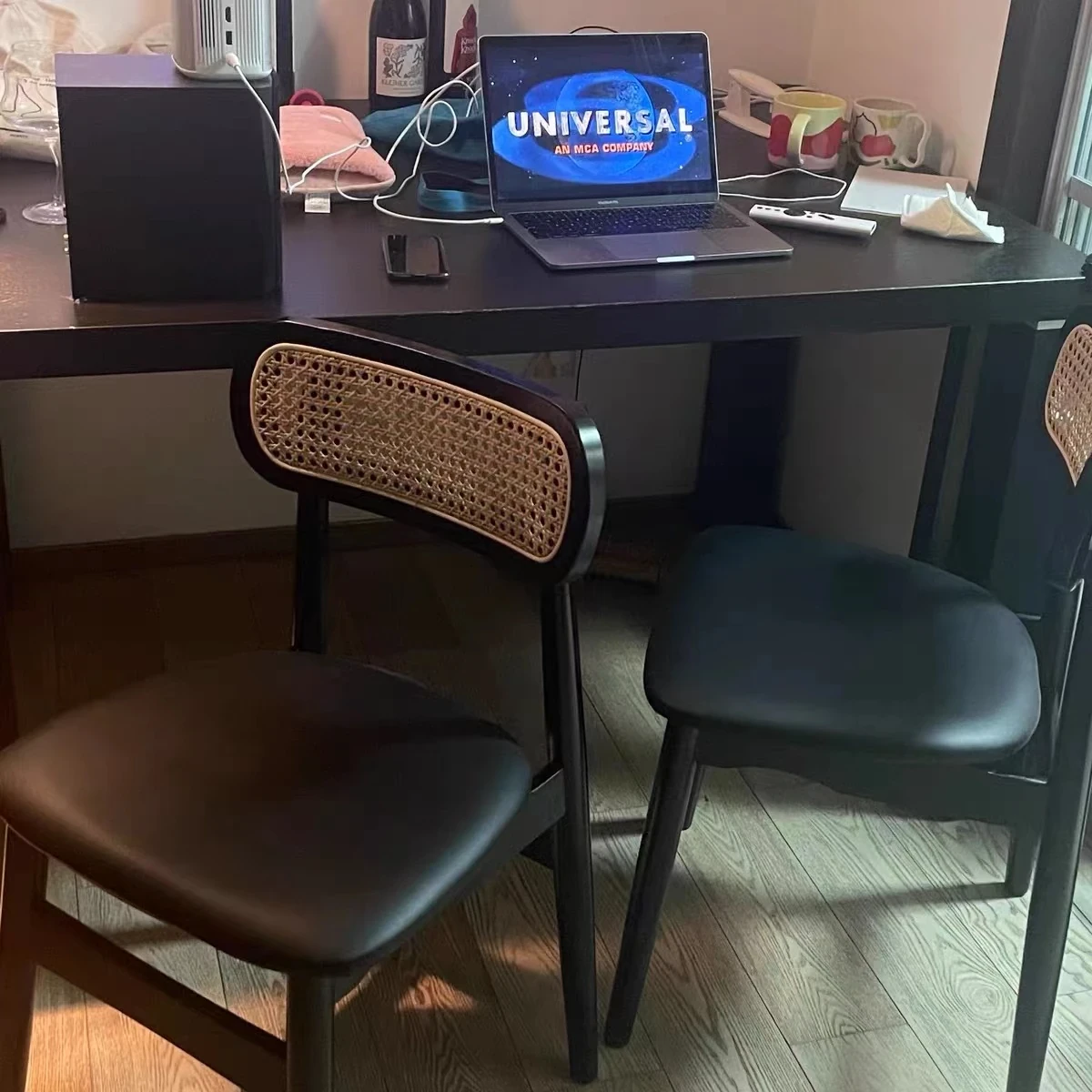 Black imitation rattan (leather cushion)