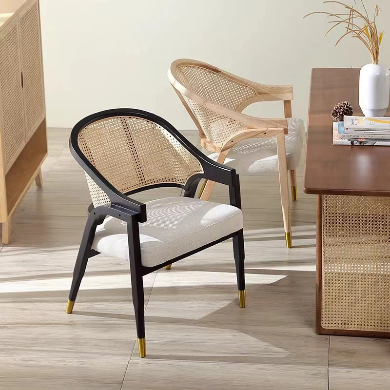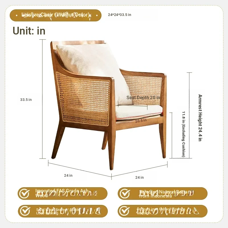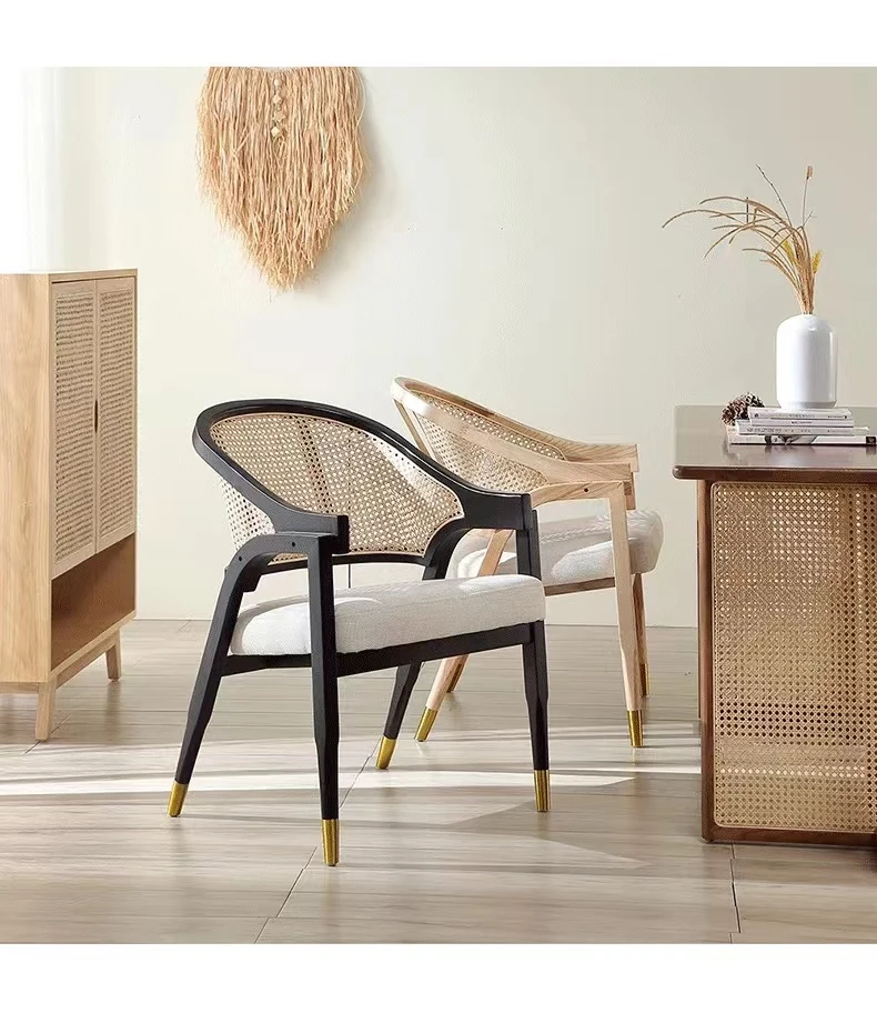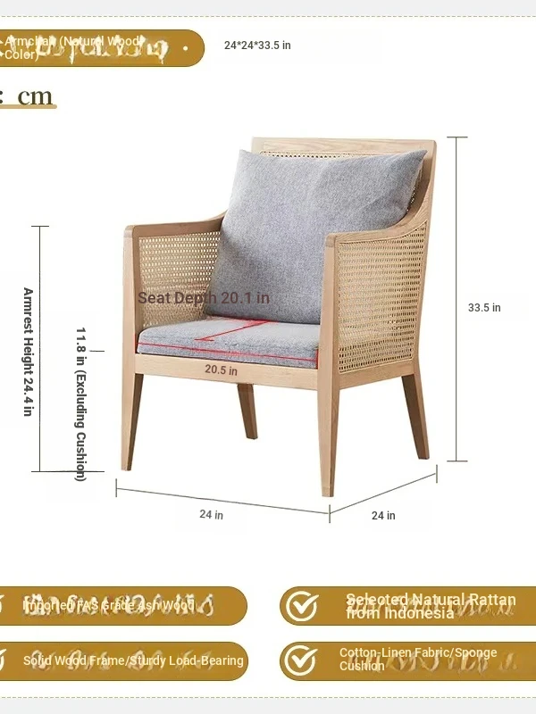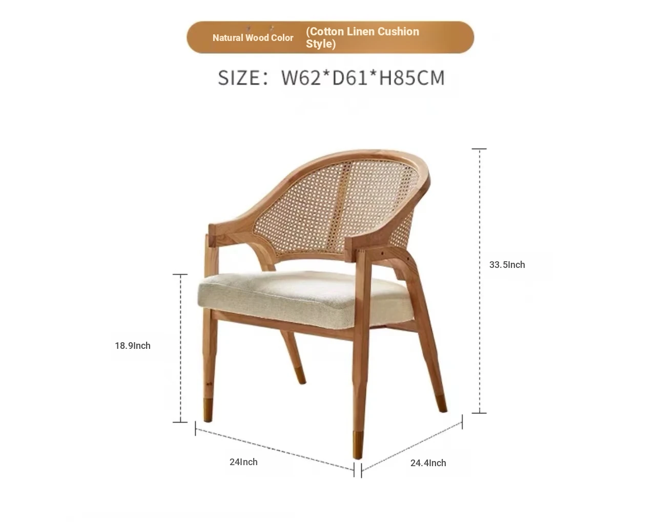OMEAN Scandinavian Retro Rattan Chair - Stylish Lounge Chair for Balcony, Café & Restaurant with Soft Cushion and Solid Wood Armrests - Designer INS Style