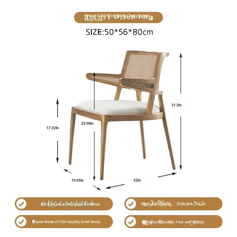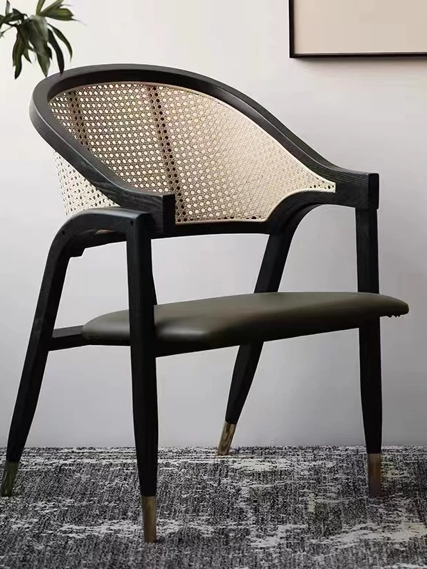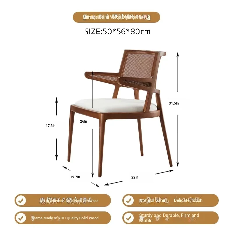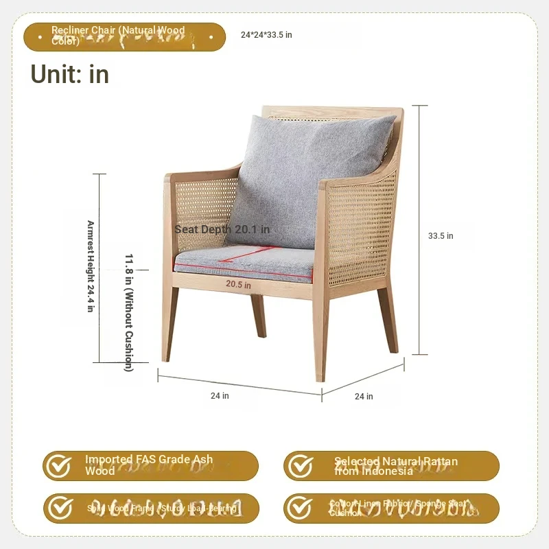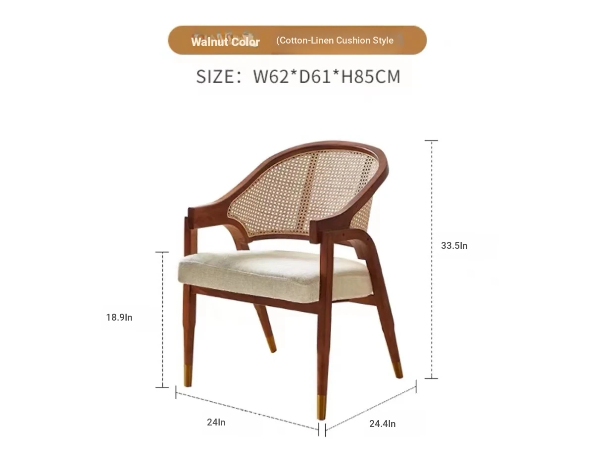 OMEAN Scandinavian Retro Rattan Chair - Stylish Lounge Chair for Balcony, Café & Restaurant with Soft Cushion and Solid Wood Armrests - Designer INS Style