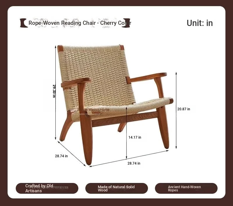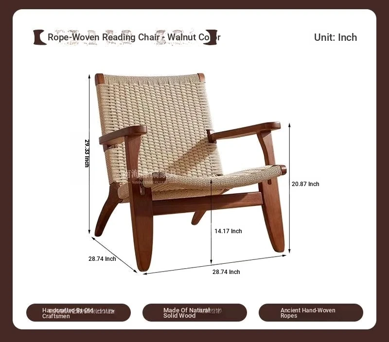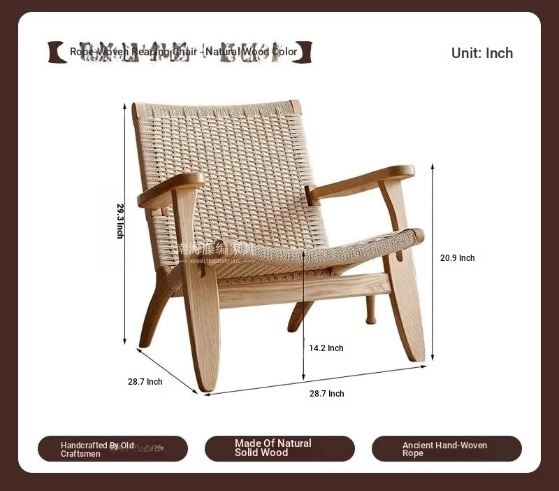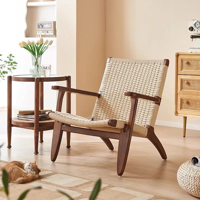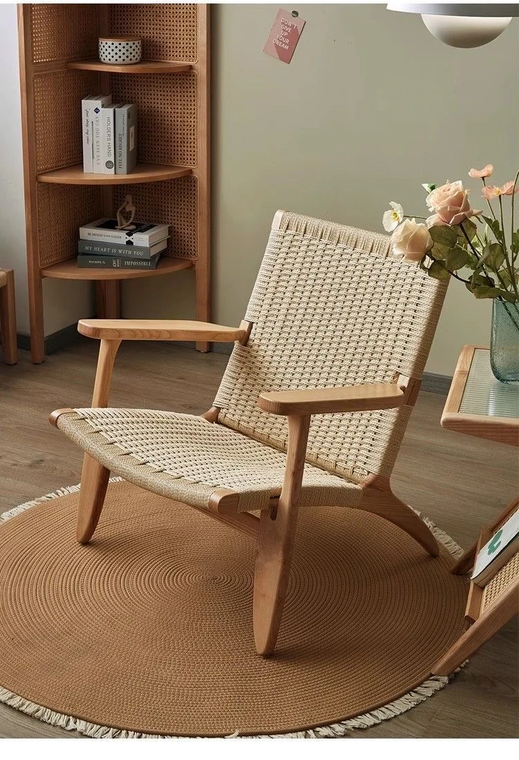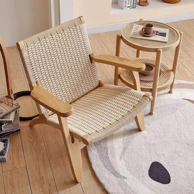 OMEAN Solid Wood Rattan Armchair - Stylish Minimalist Single Sofa Chair for Living Room and Balcony, Perfect for Relaxation and Designer Touch