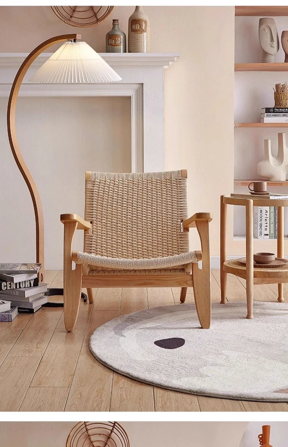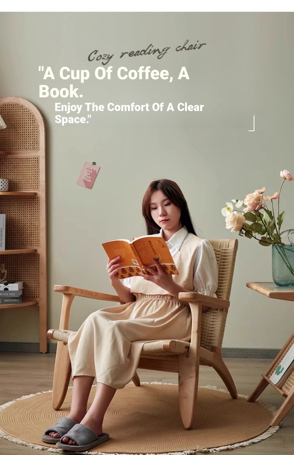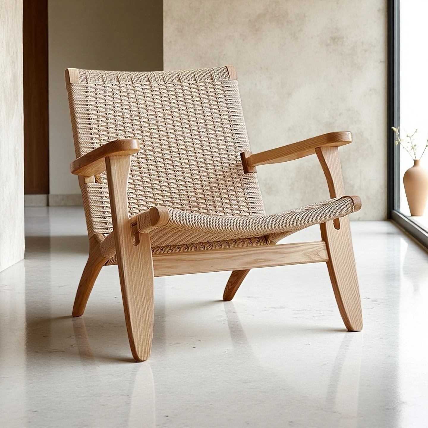 OMEAN Solid Wood Rattan Armchair - Stylish Minimalist Single Sofa Chair for Living Room and Balcony, Perfect for Relaxation and Designer Touch