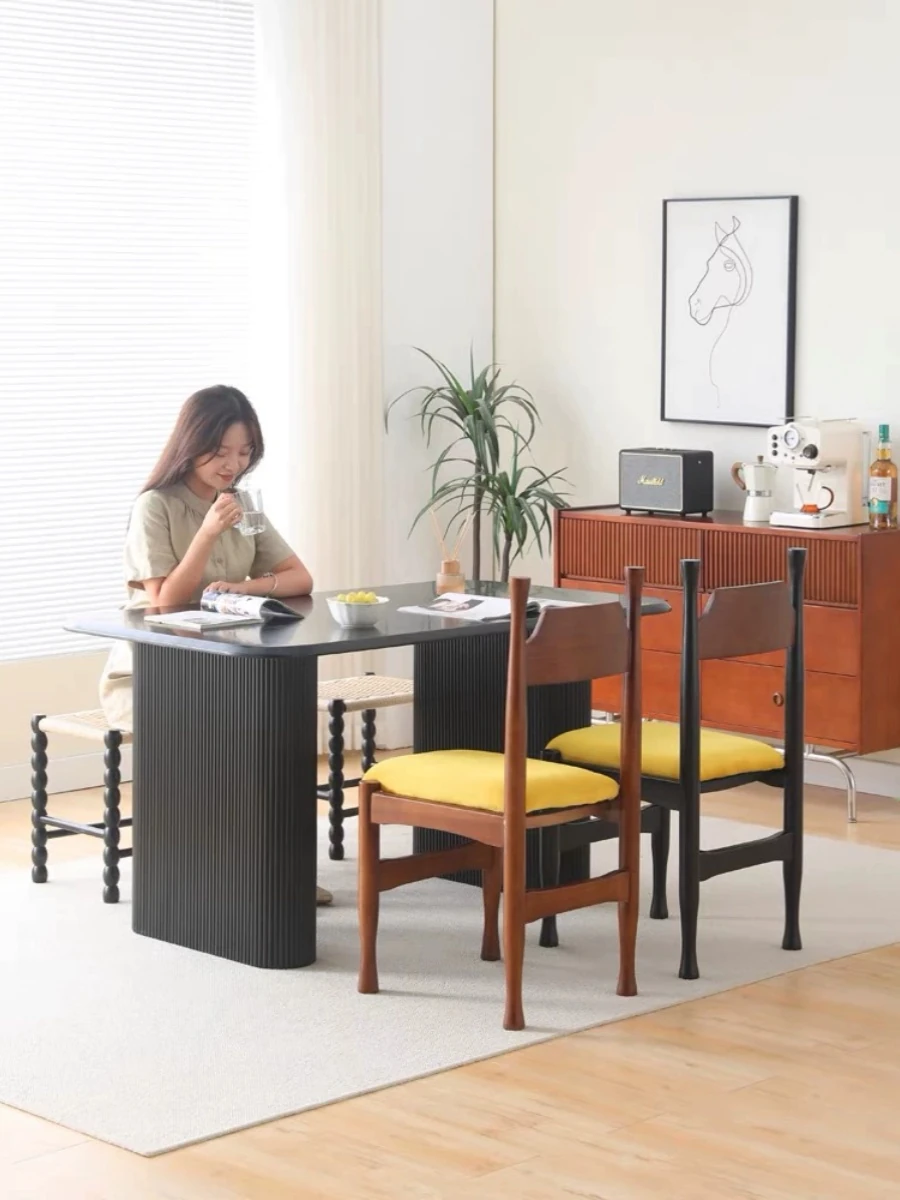 OMEAN Solid Wood Scandinavian French Style Soft Pack Minimalist Retro Creative Designer Casual Dining Table and Chairs - Embrace Wabi-Sabi Elegance in Your Home Decor!