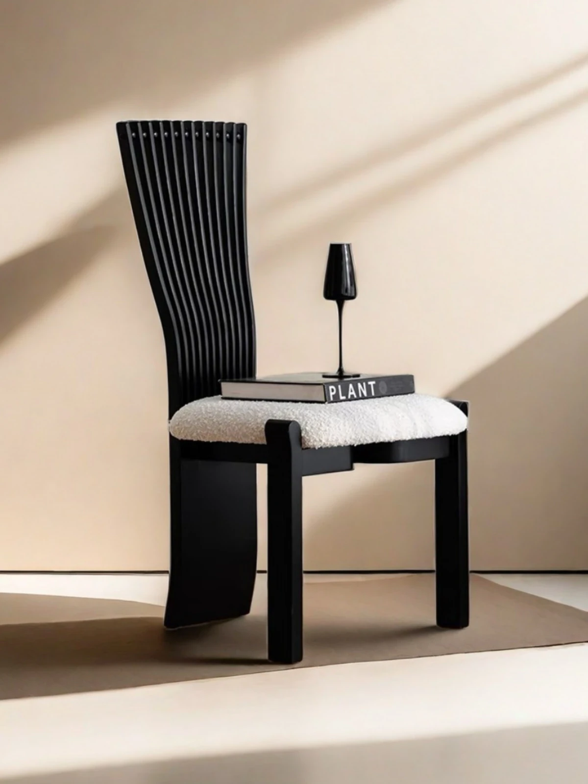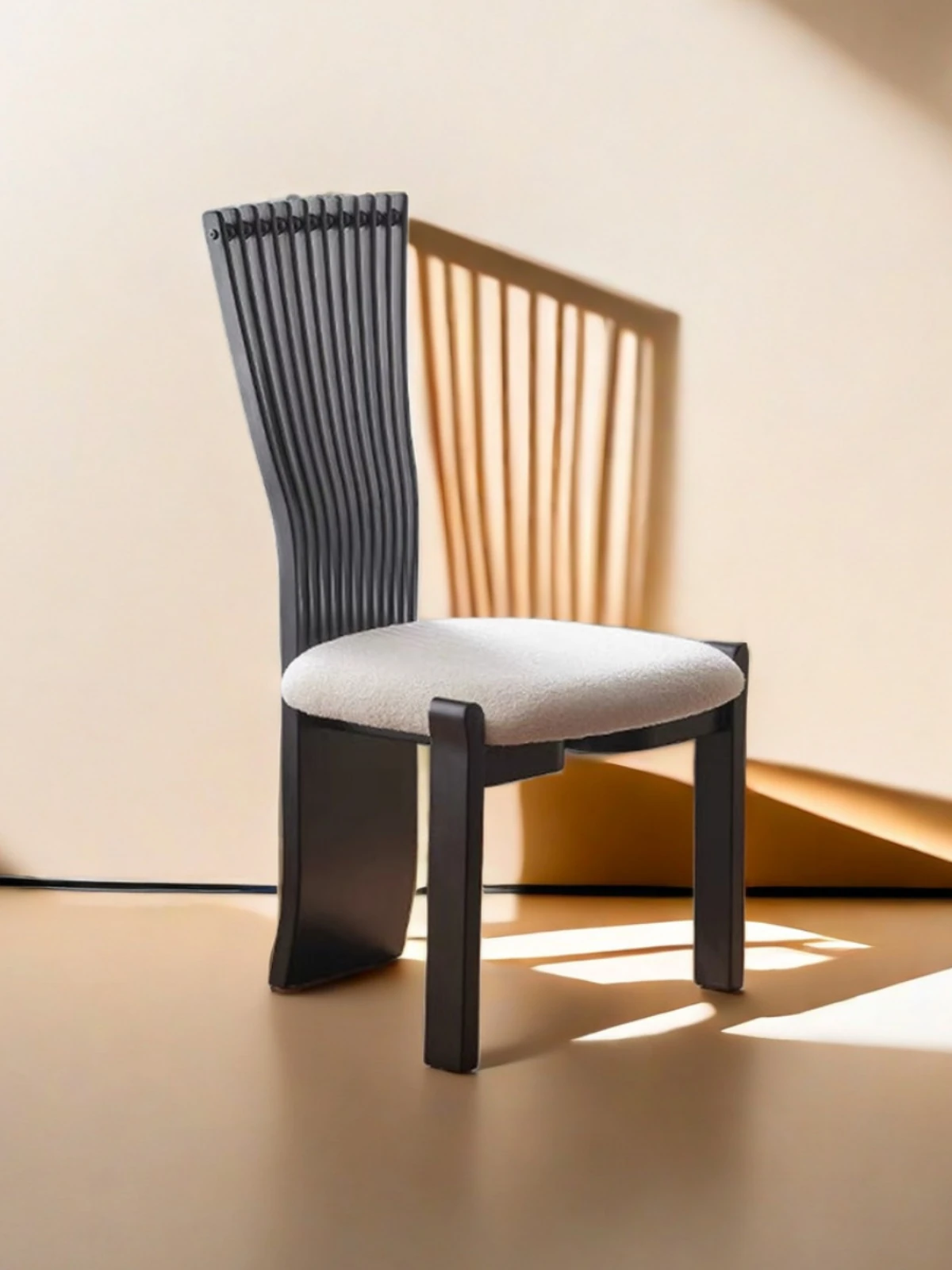 OMEAN Vintage Solid Wood Dining Chair - Designer Home Accent with Elegant Backrest, French Retro Fan Back, Perfect for Relaxation and Dining Spaces