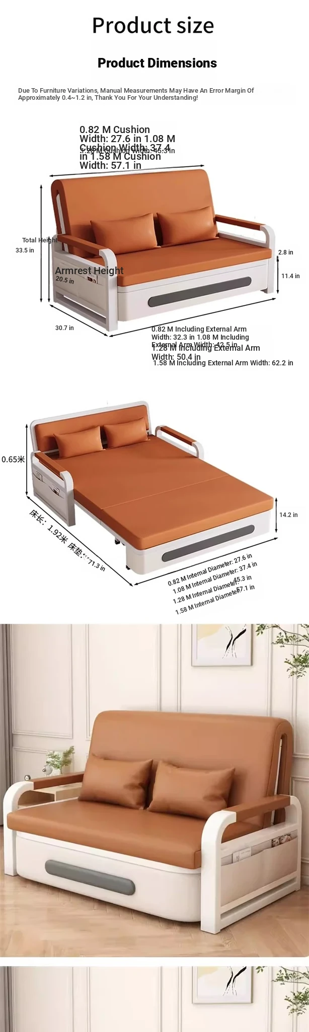 [32.28 in storage] 1.97in sponge +0.79in coconut palm (cat skin + Orange)