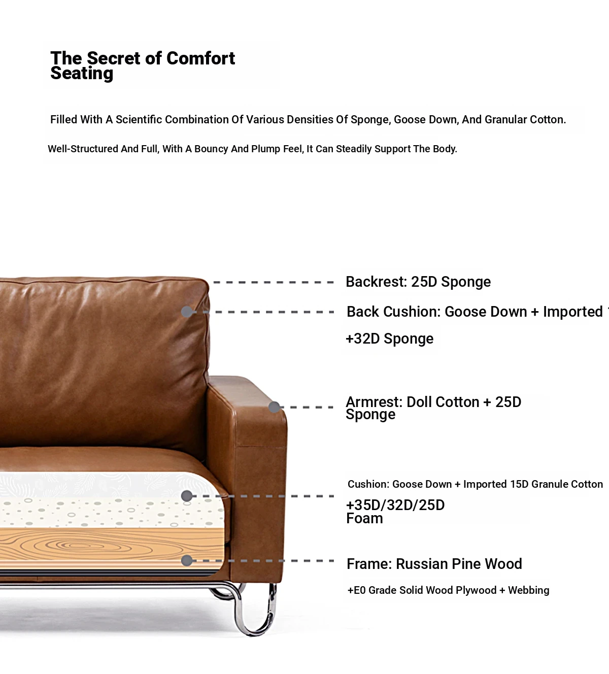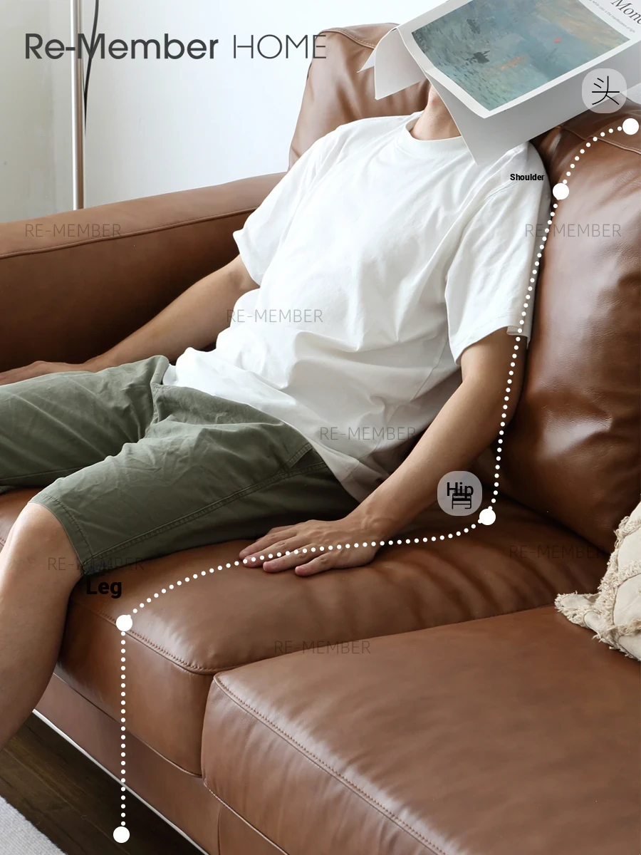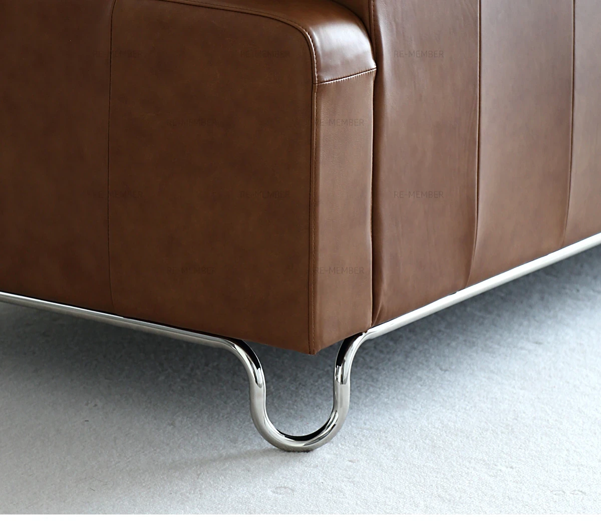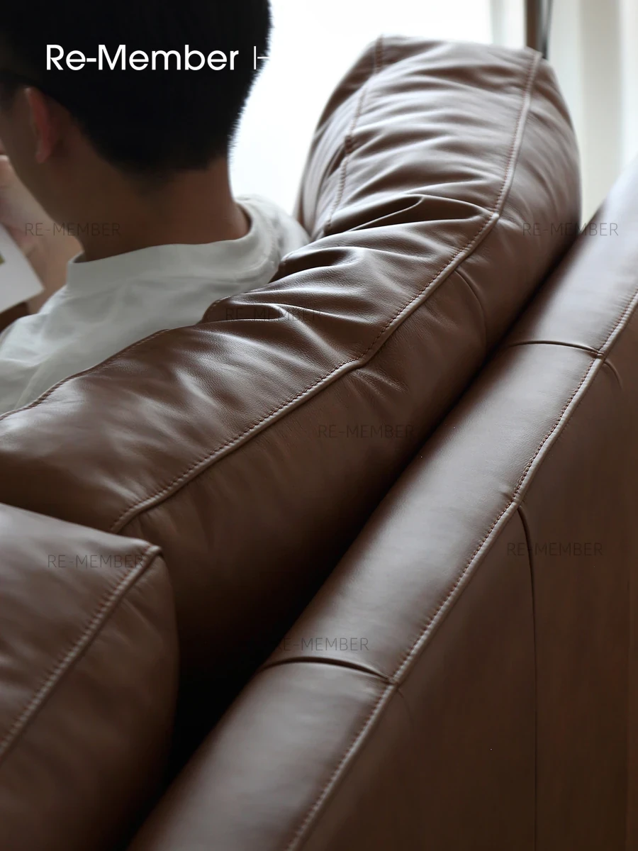 Re Nordic Vintage Bauhaus Stainless Steel Retro Top Grain Leather Caramel Black Down Waxed Leather YOU Sofa