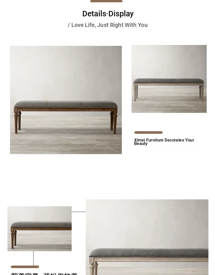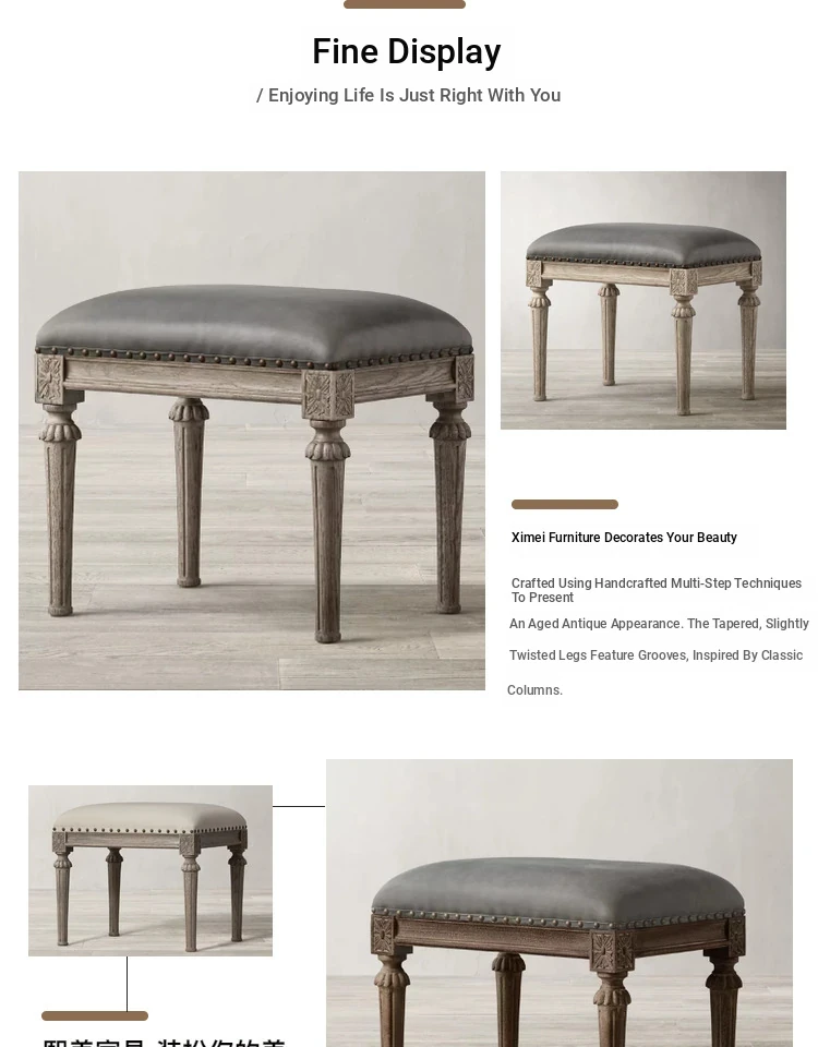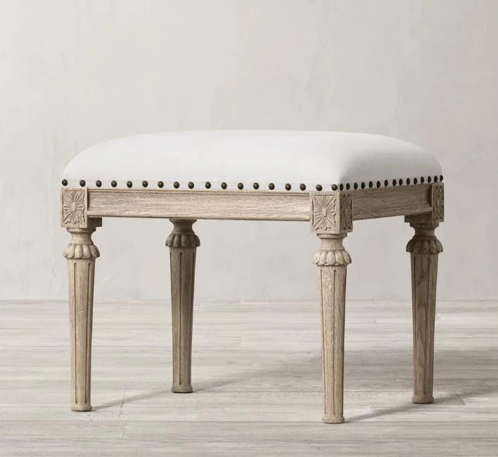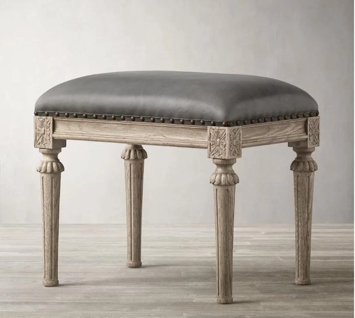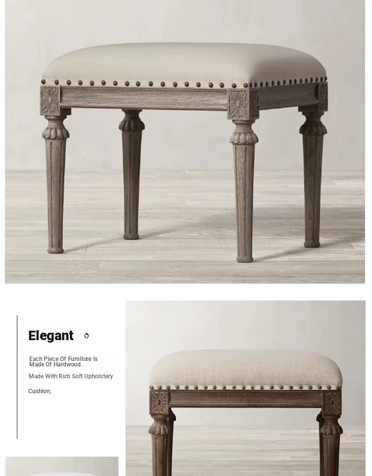 R/H Faux Leather Bedroom Bench – Elegant Makeup Stool & Shoe Bench – Stylish French Minimalist Design with Solid Wood Accents – Perfect for Your Bedroom Décor!
