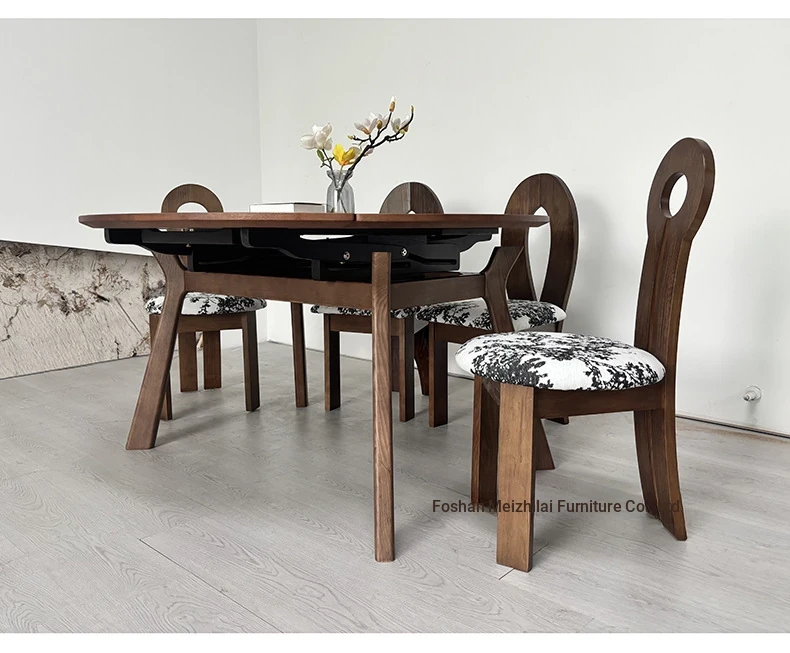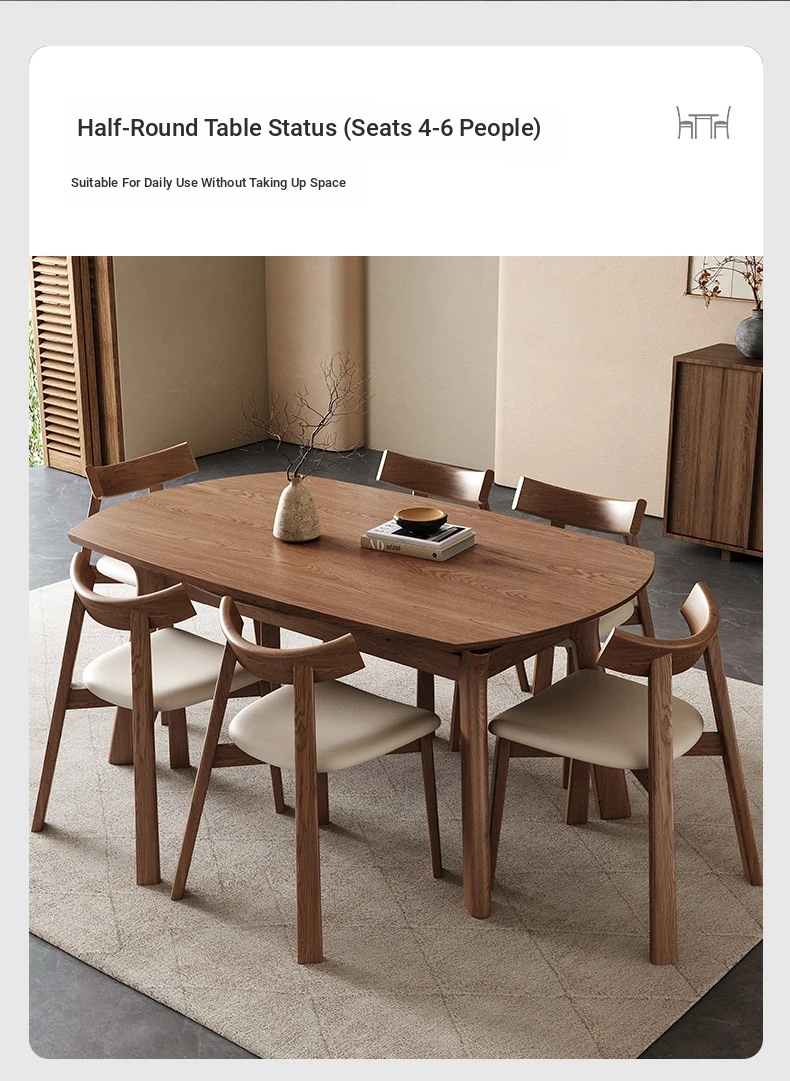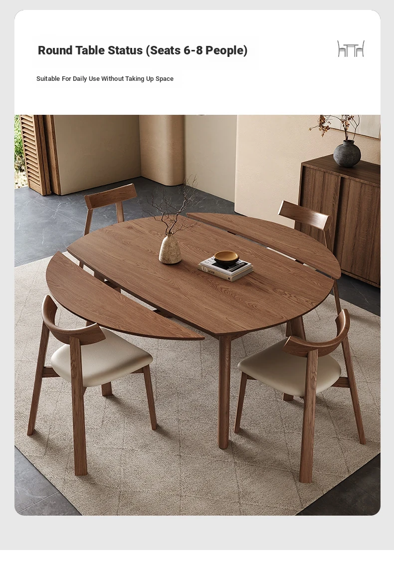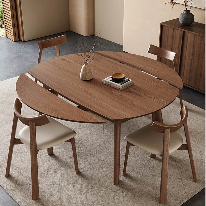 Solid Wood Expandable Dining Table - Versatile Round Folding Table for Small Living Spaces, Made of Ash Wood, Perfect for Home Use