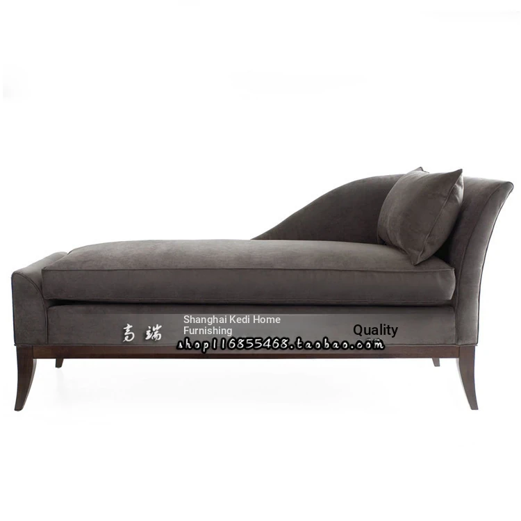 Special Offer: American and European Style Minimalist Brown Wooden Chaise Lounge Sofa with Linen Fabric - Perfect for Bedrooms and Relaxation!