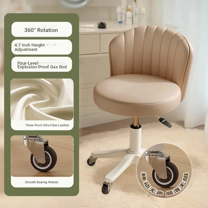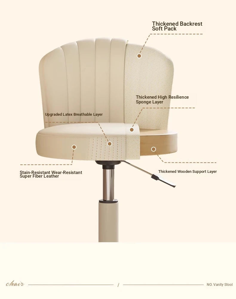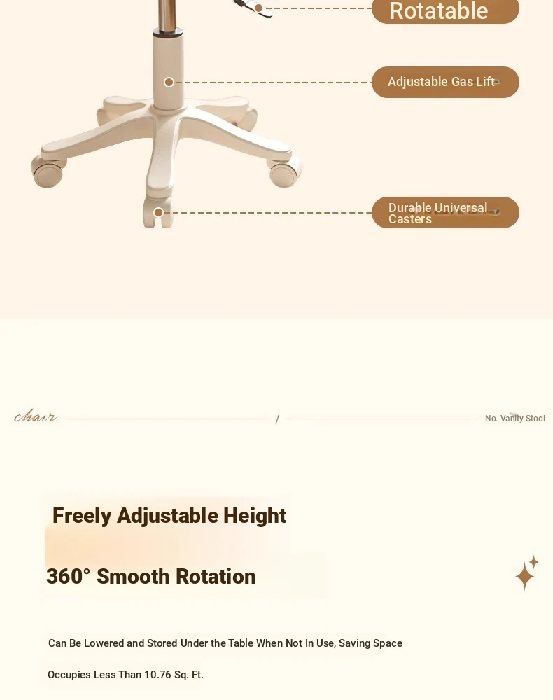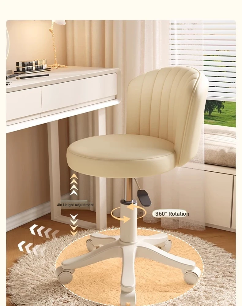 SREZ Yttrium Makeup Chair - Stylish Rotating Vanity Stool for Girls' Bedroom, Chic Creamy Design, Perfect for Influencers and Elegant Makeovers.