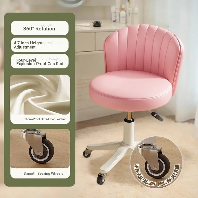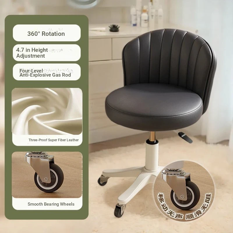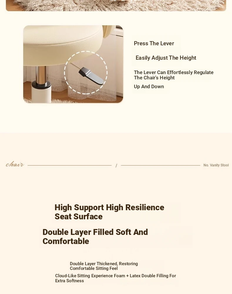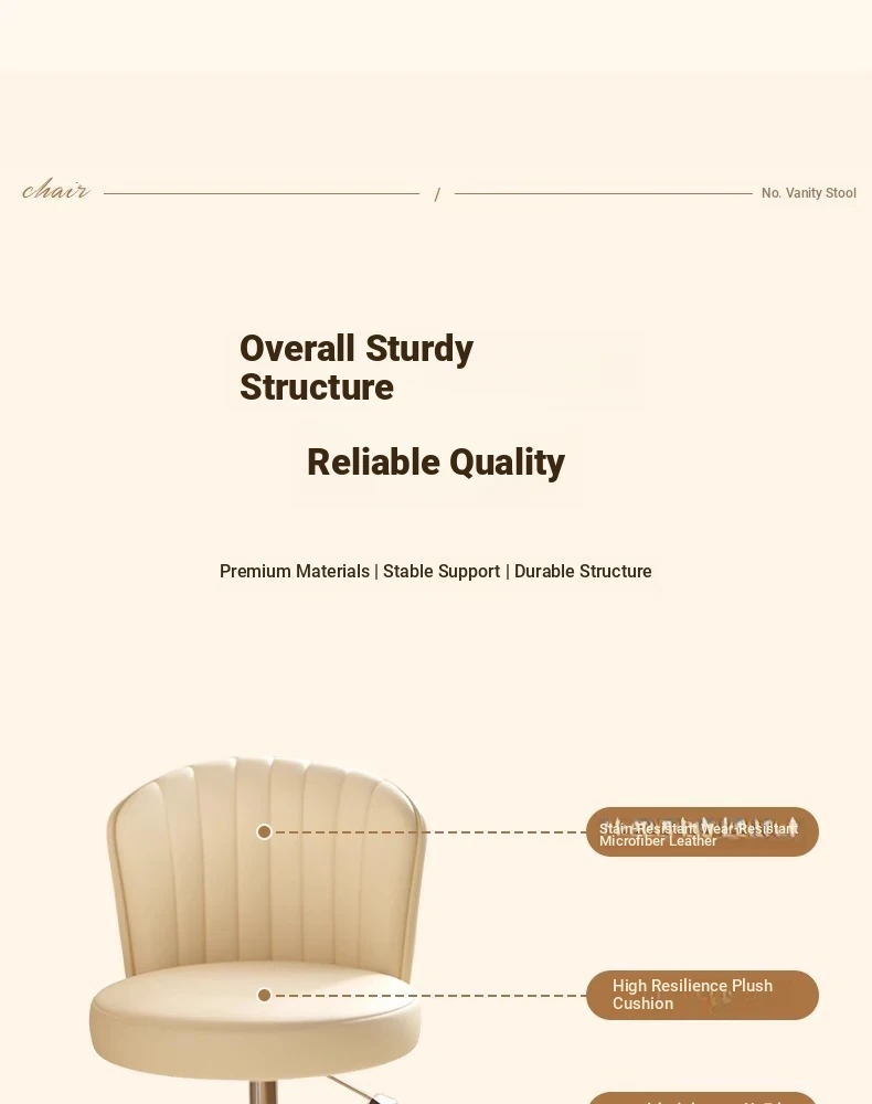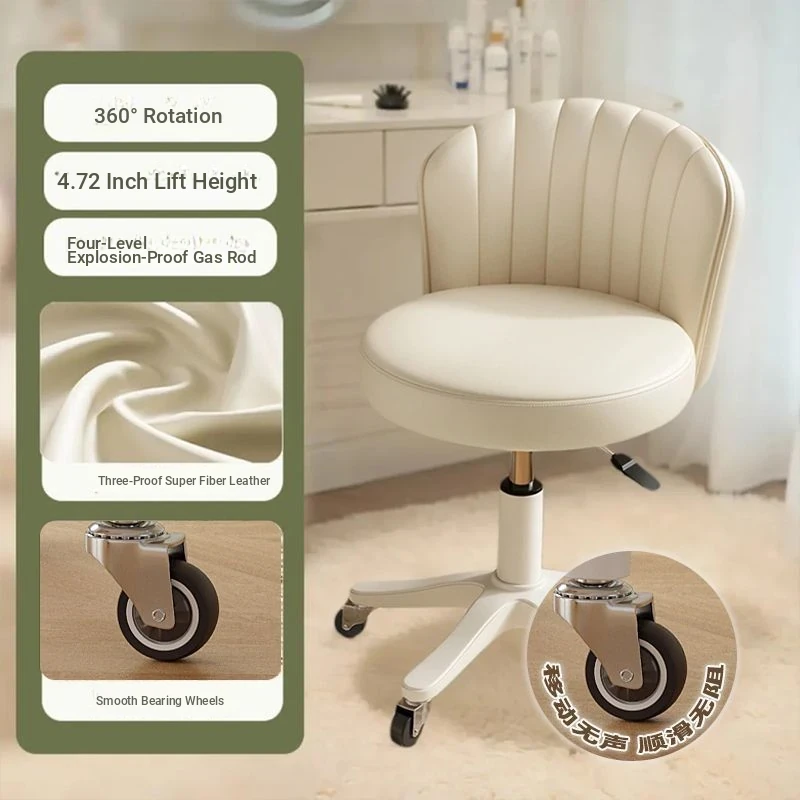 SREZ Yttrium Makeup Chair - Stylish Rotating Vanity Stool for Girls' Bedroom, Chic Creamy Design, Perfect for Influencers and Elegant Makeovers.