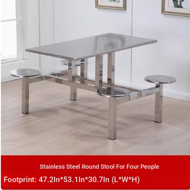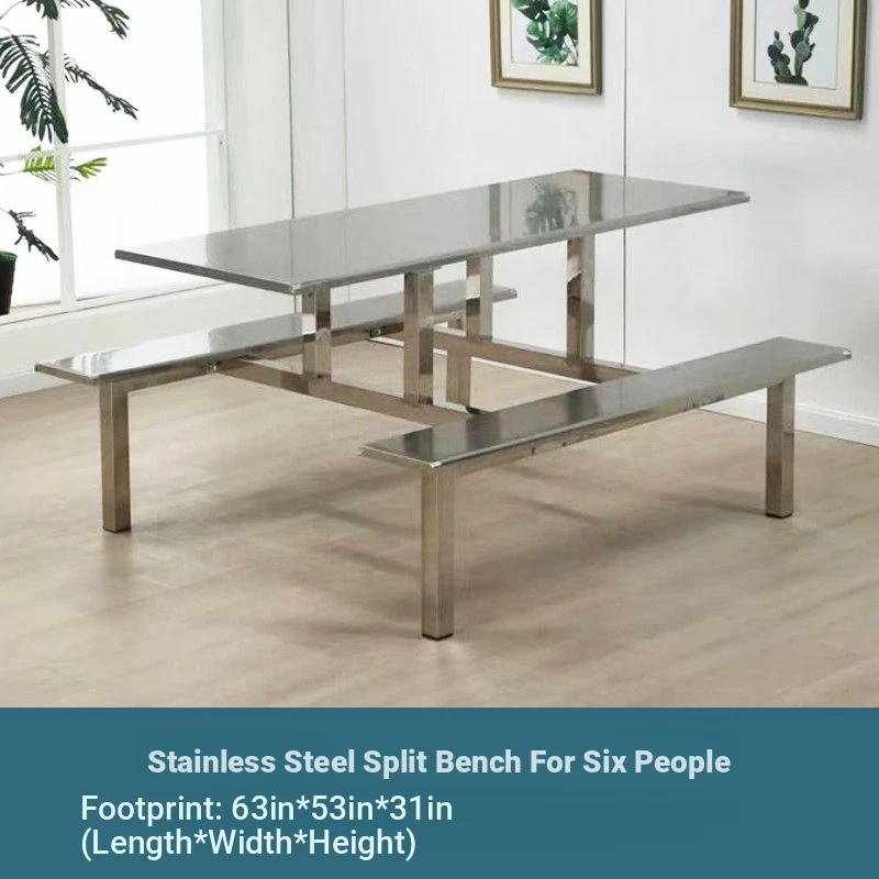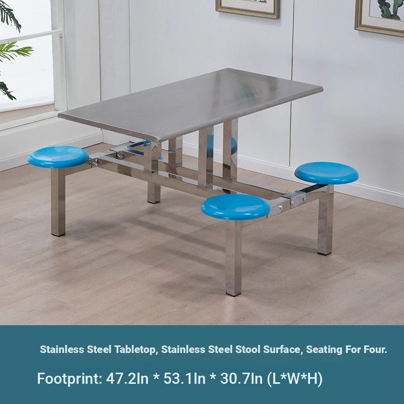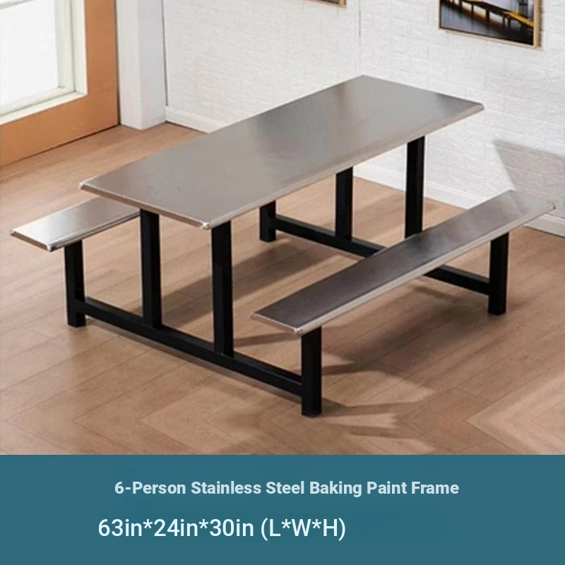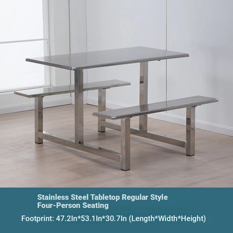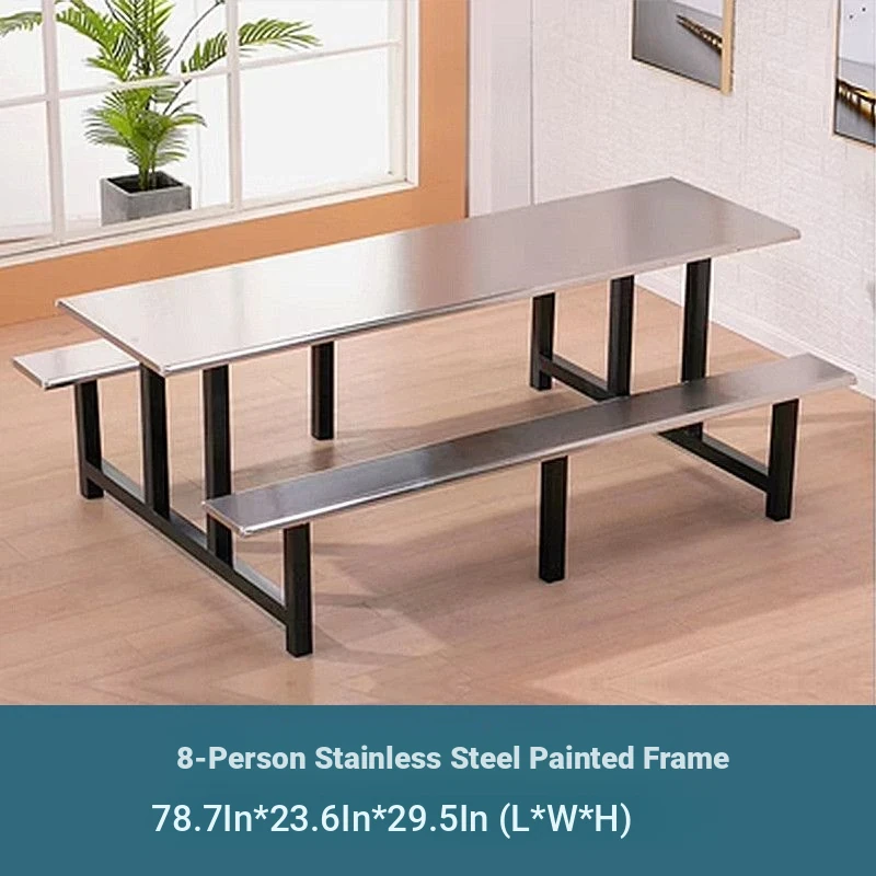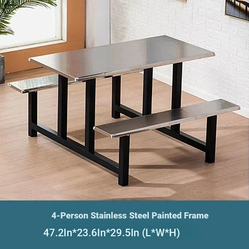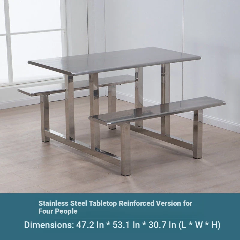 Stainless Steel Canteen Dining Table Set for 4, 6, or 8 People - Ideal for Schools, Students, and Employee Cafeterias - Durable, Space-Saving Fast Food Table and Chair Combination