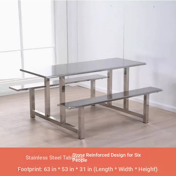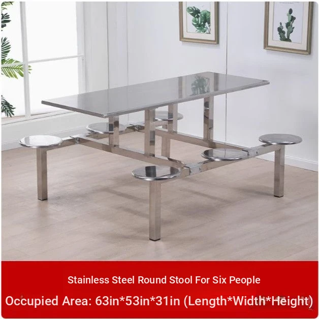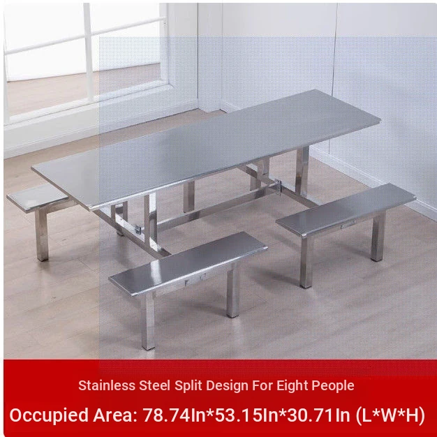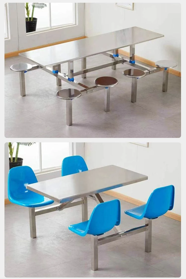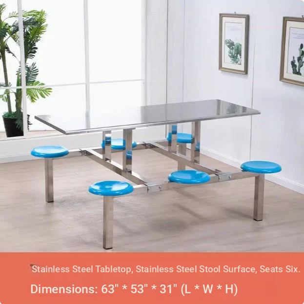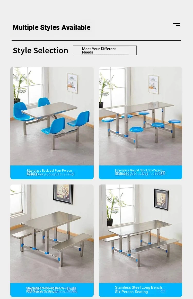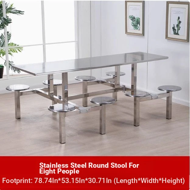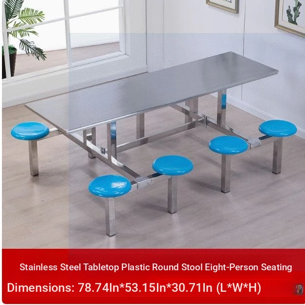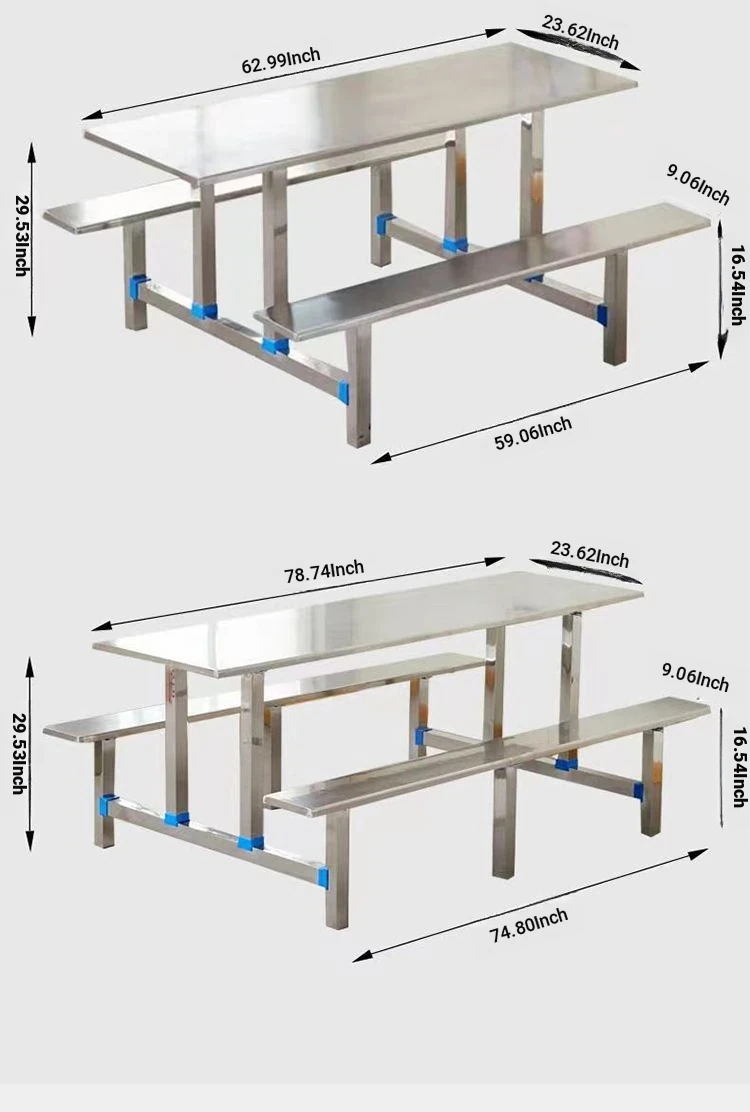 Stainless Steel Canteen Dining Table Set for 4, 6, or 8 People - Ideal for Schools, Students, and Employee Cafeterias - Durable, Space-Saving Fast Food Table and Chair Combination