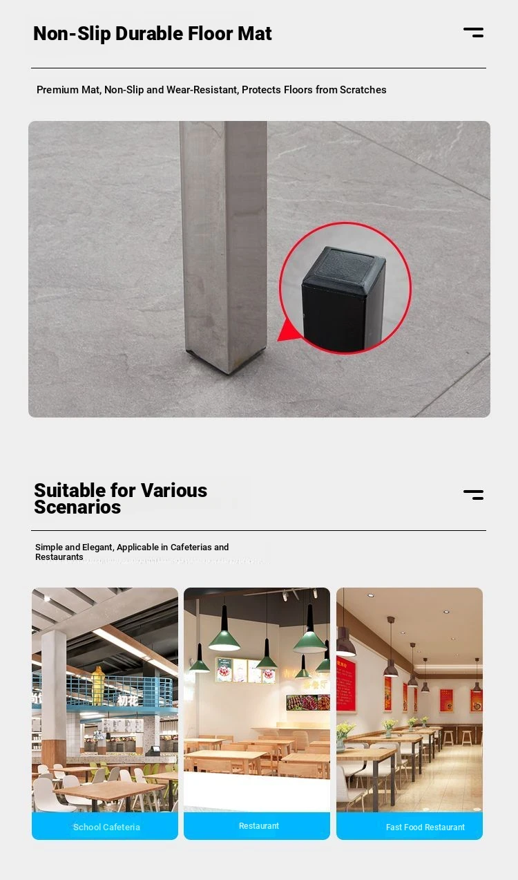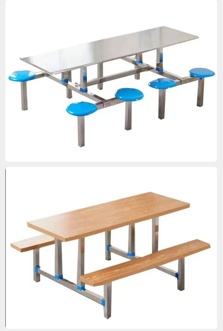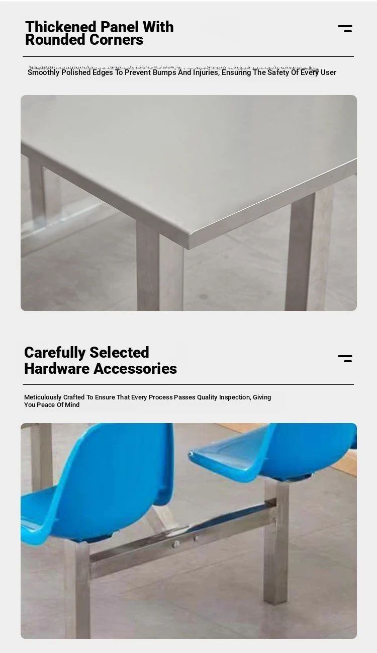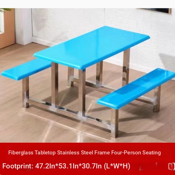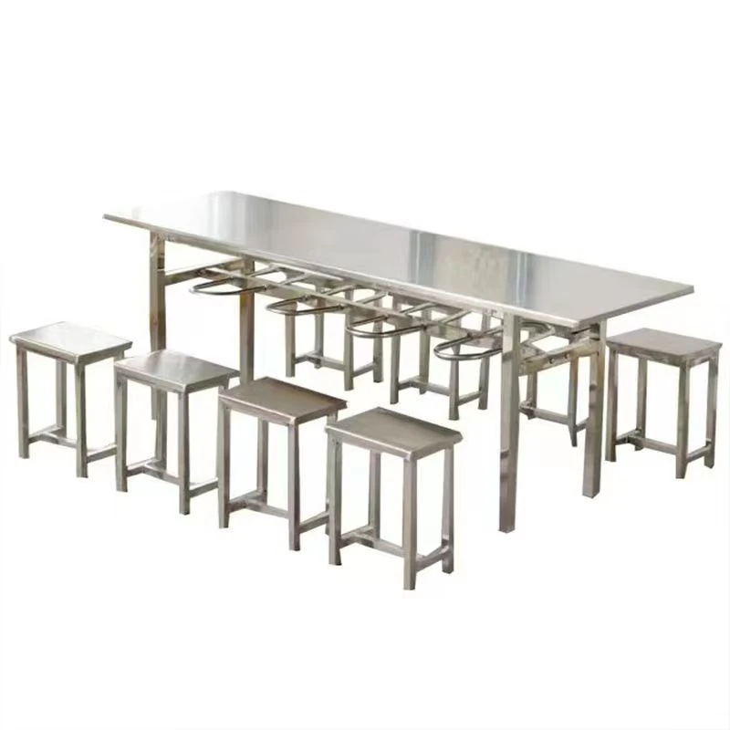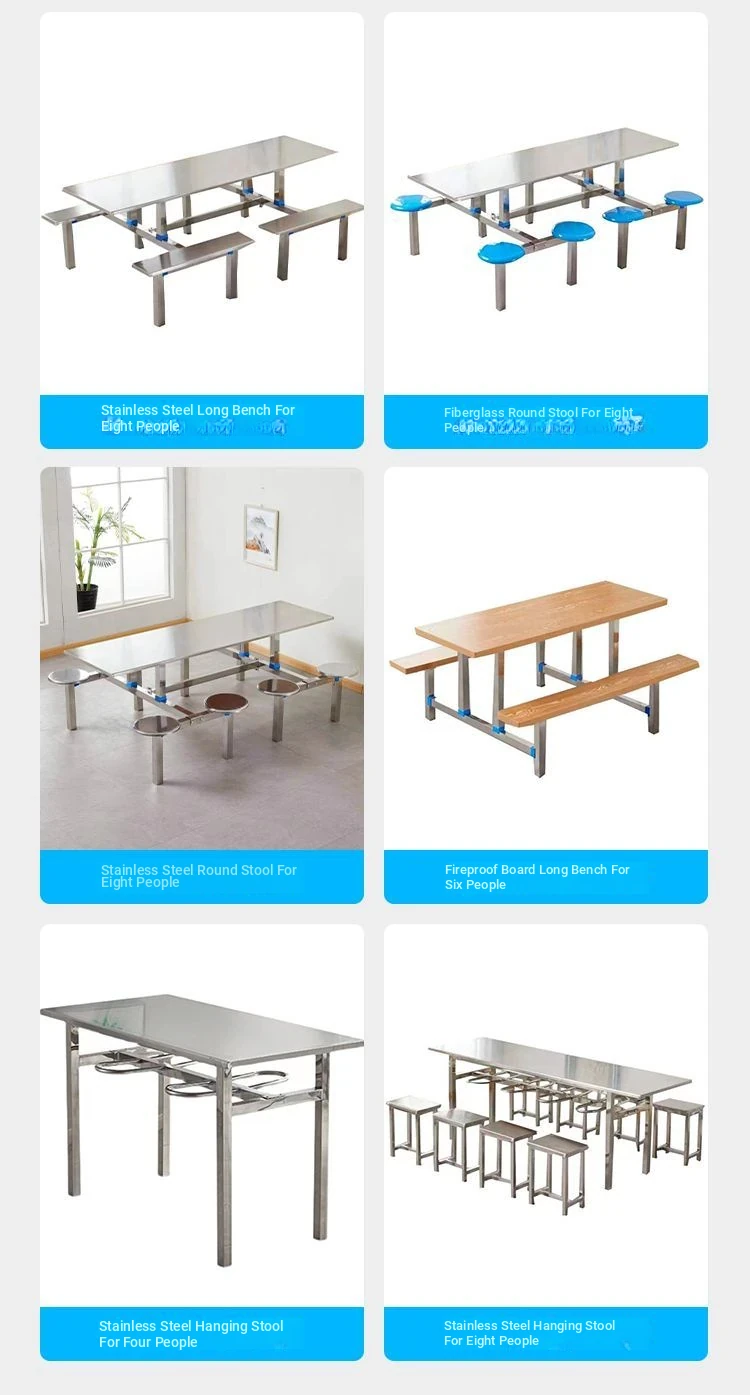 Stainless Steel Canteen Dining Table Set for 4, 6, or 8 People - Ideal for Schools, Students, and Employee Cafeterias - Durable, Space-Saving Fast Food Table and Chair Combination