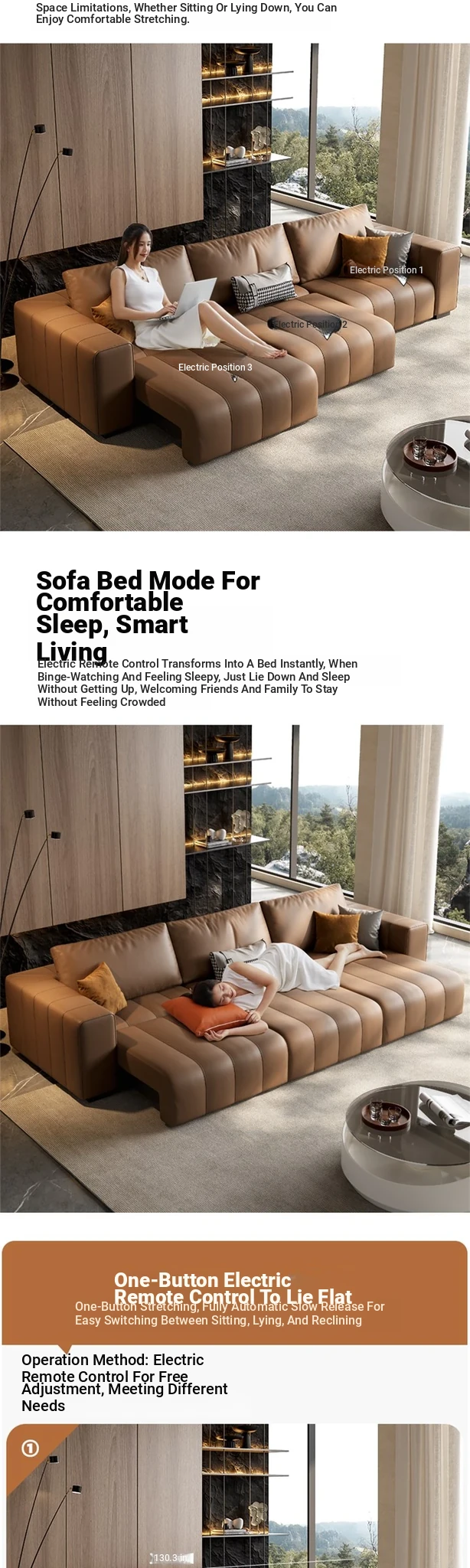 55.12 in Double Armrest Single Full Leather Electric Sofa