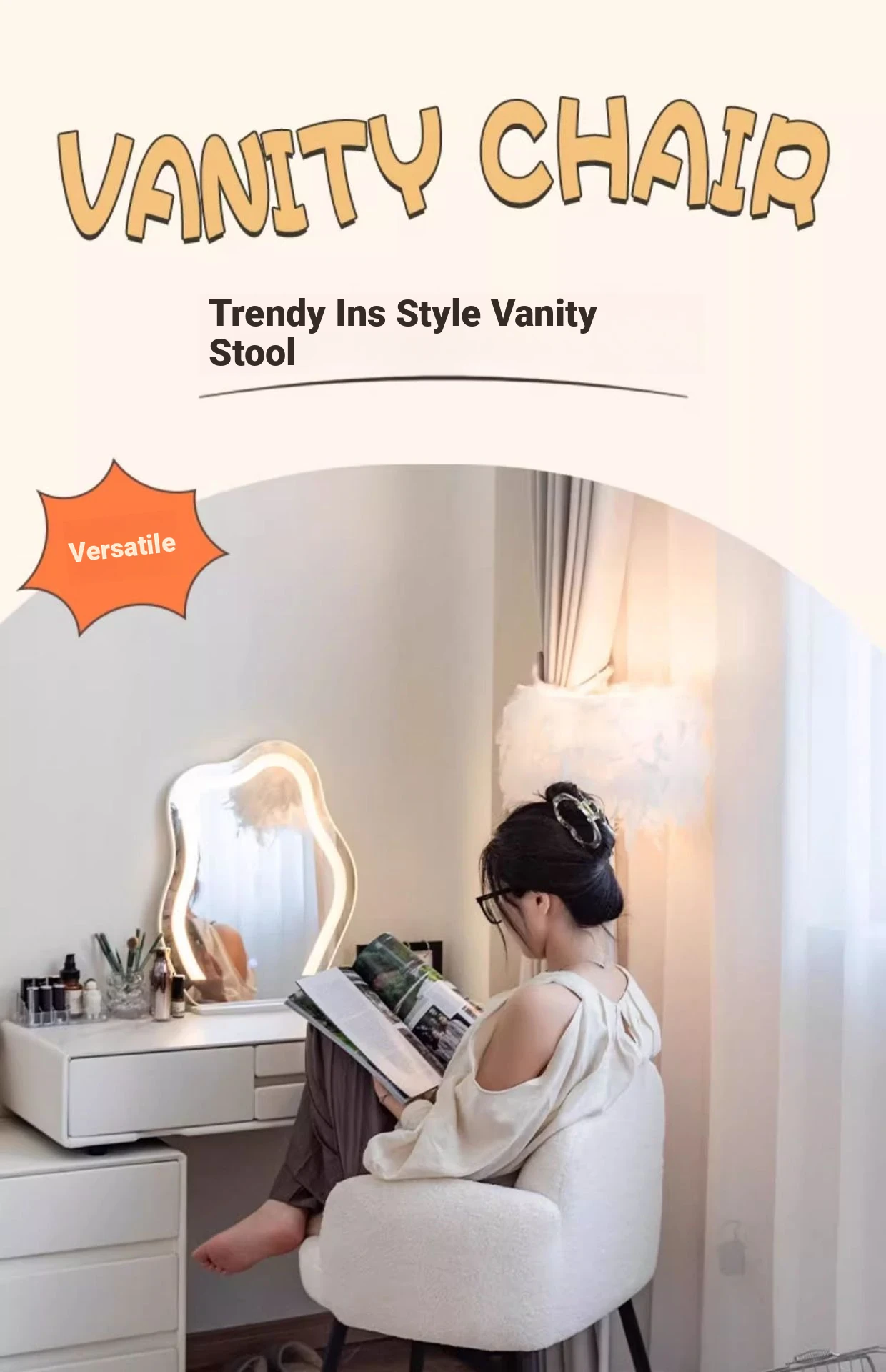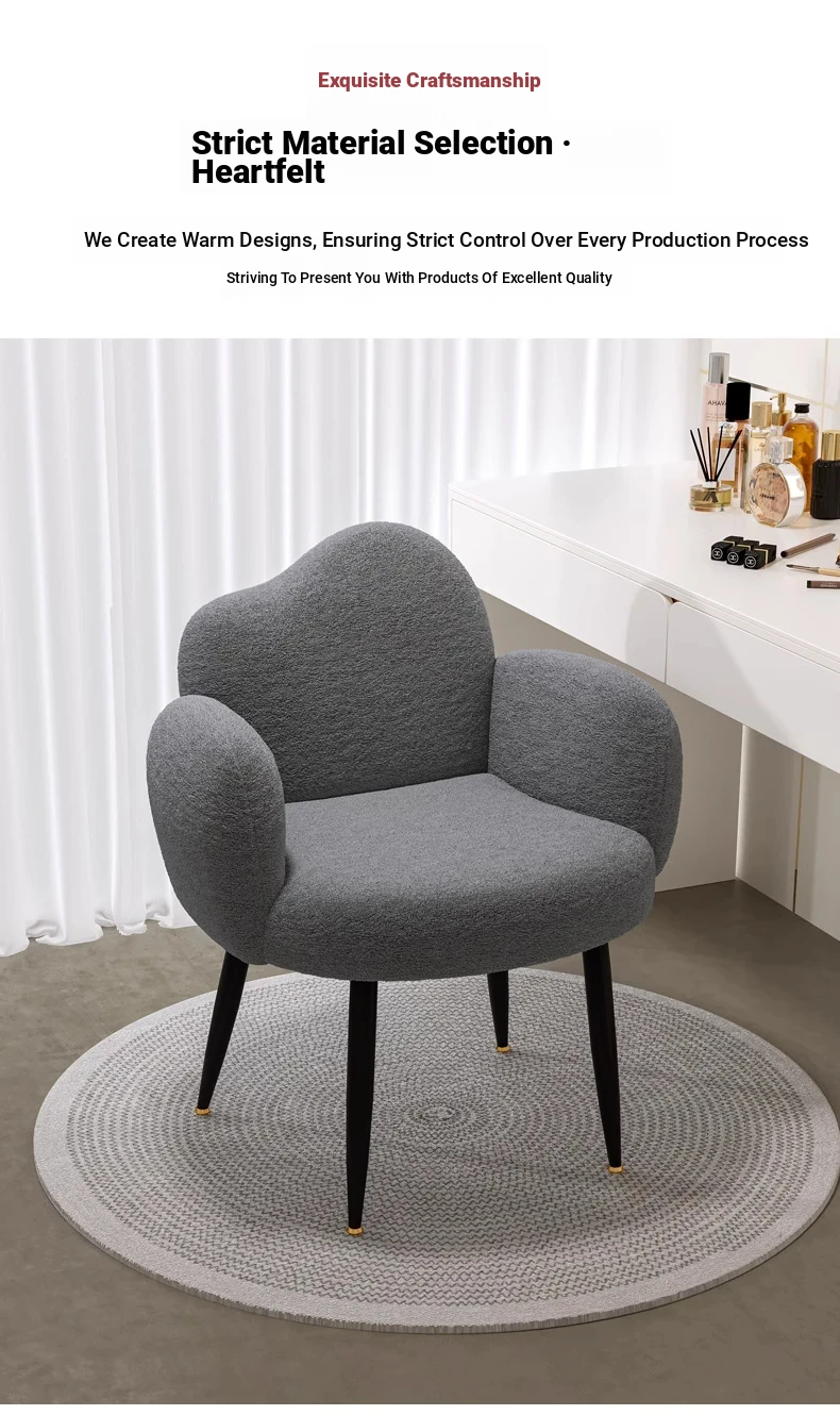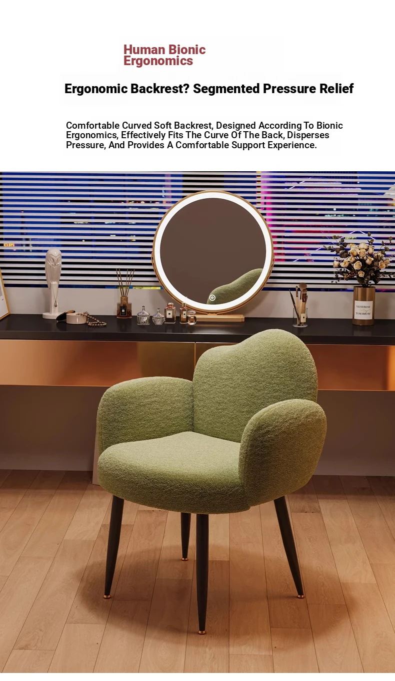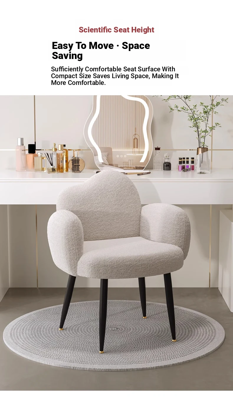 Stylish Makeup Chair for Small Spaces – Creamy INS-Style Vanity Stool with Backrest, Perfect for Bedrooms and Beauty Corners!