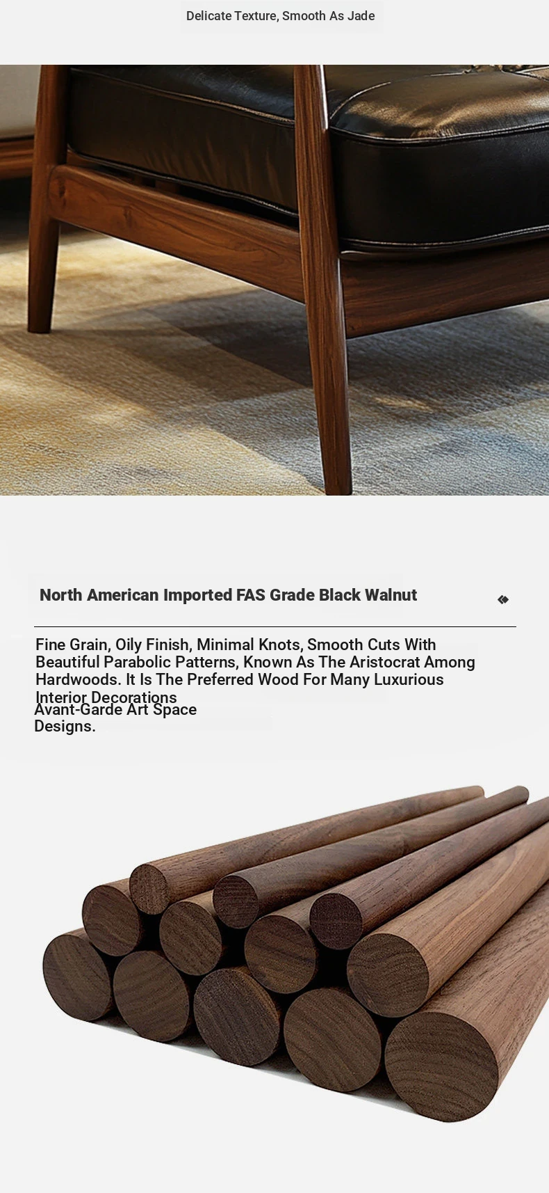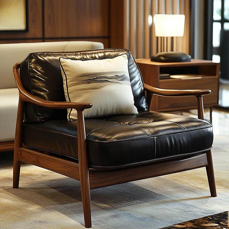 Stylish New Chinese North American Black Walnut Single Sofa Chair - Premium Solid Wood Luxury Living Room Furniture, 2025 New Arrival