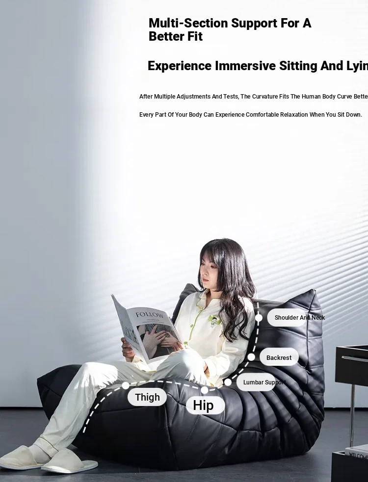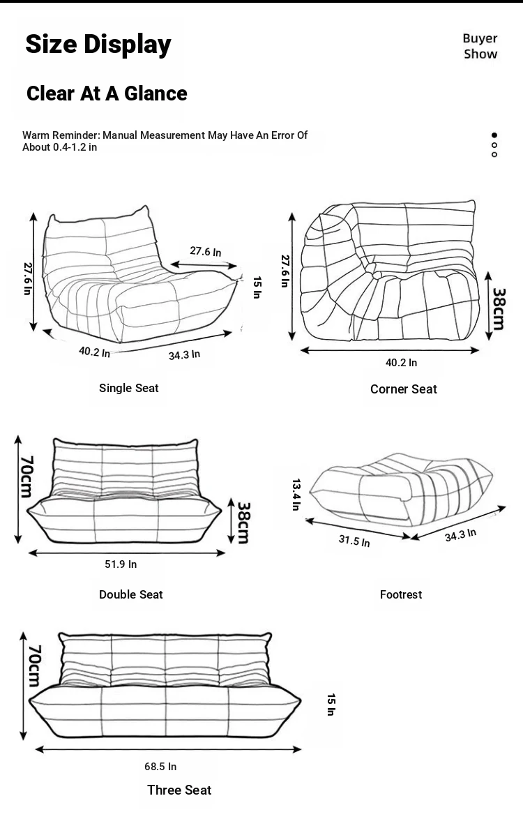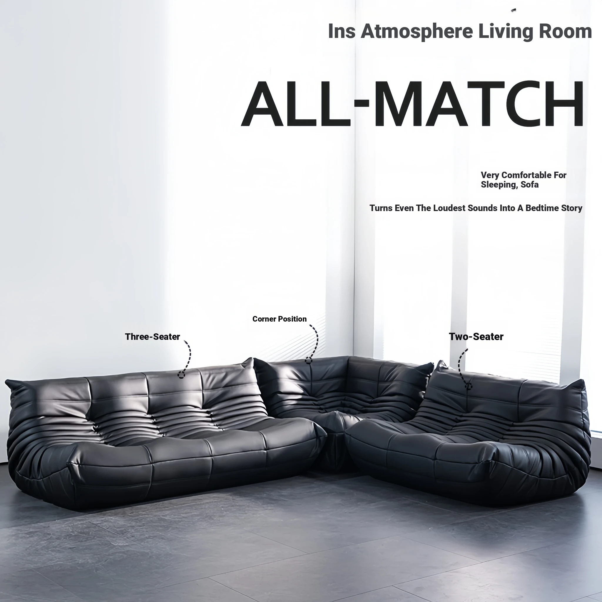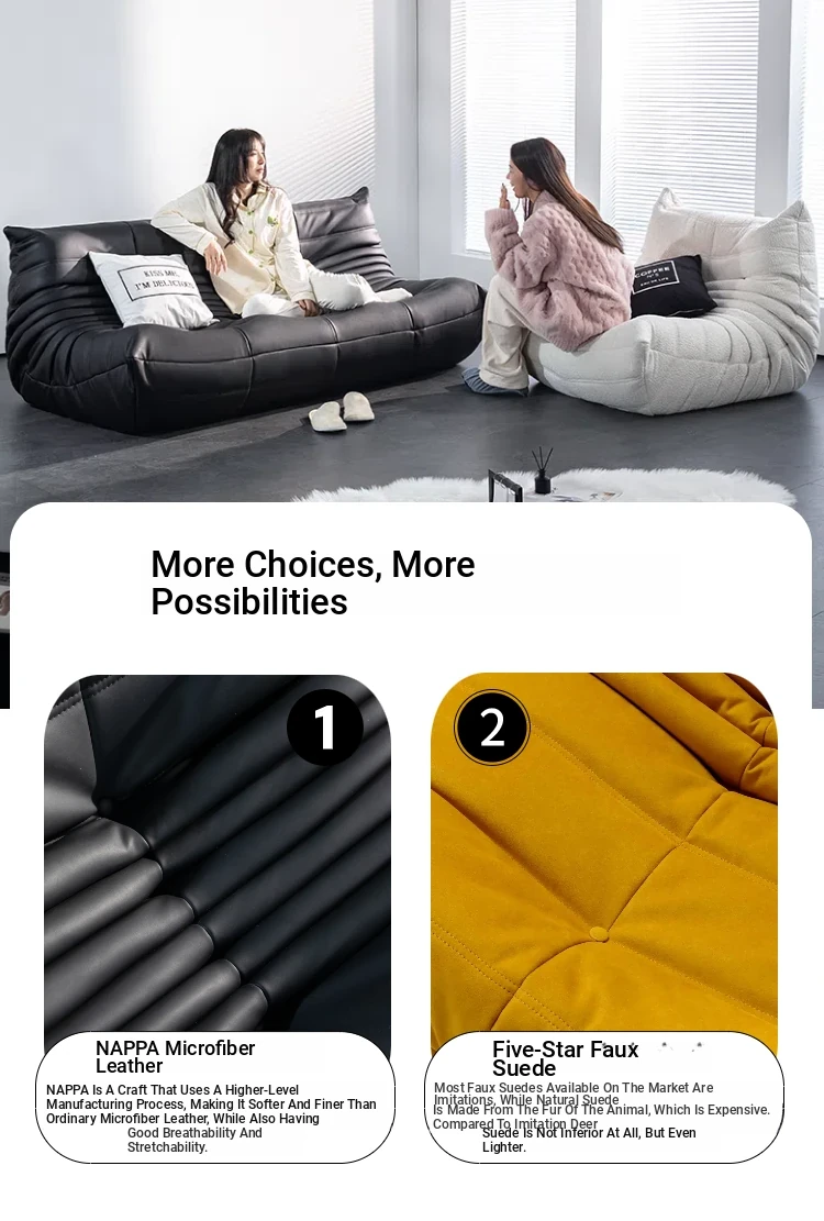 Togo Caterpillar Sofa - Creamy Single Lounge Chair for Balcony, Bedroom, and Living Room, Perfect for Relaxing and Napping, Versatile and Stylish Lazy Sofa