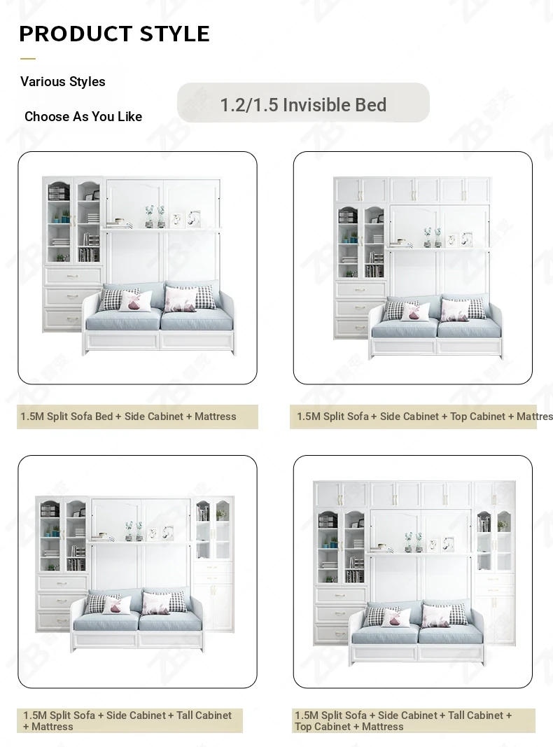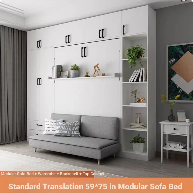 59.06 in sofa invisible bed + vertical cabinet + wardrobe + top Cabinet