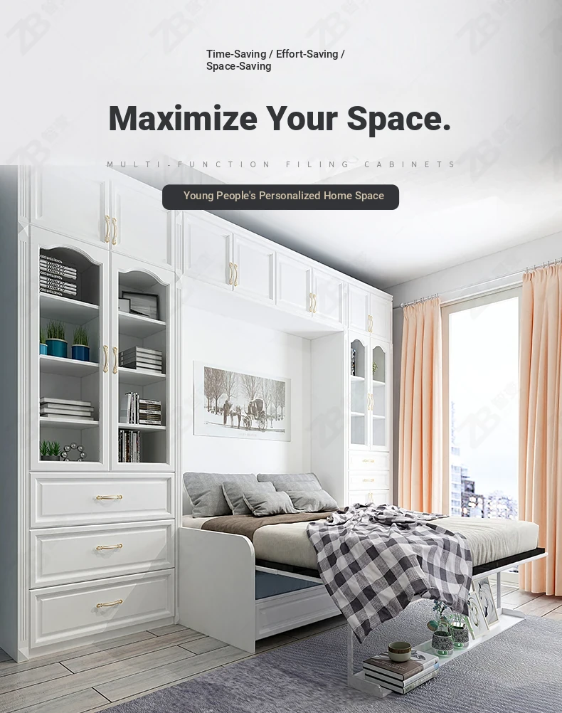59.06 in Invisible Bed + Vertical Cabinet + Wardrobe