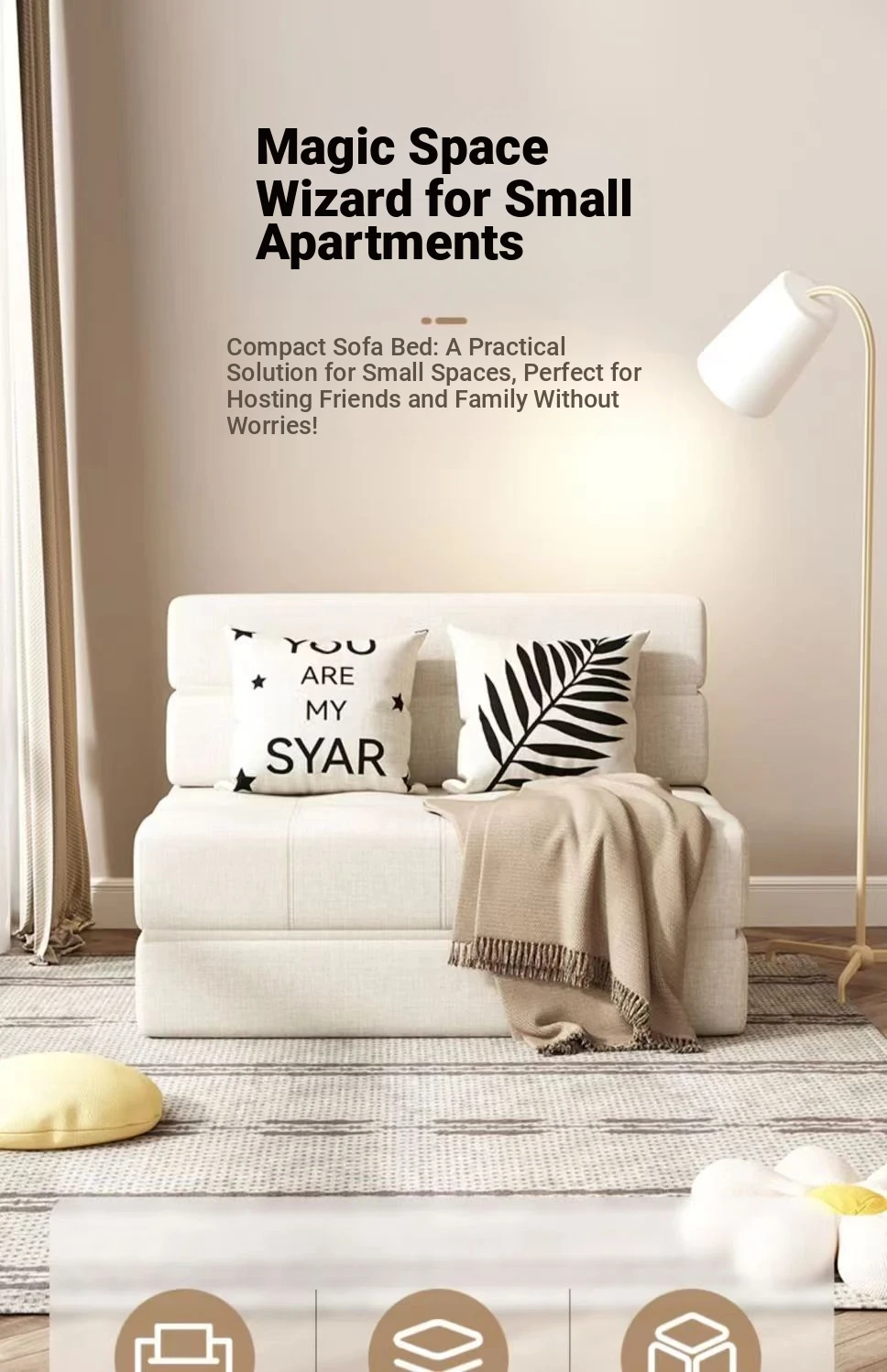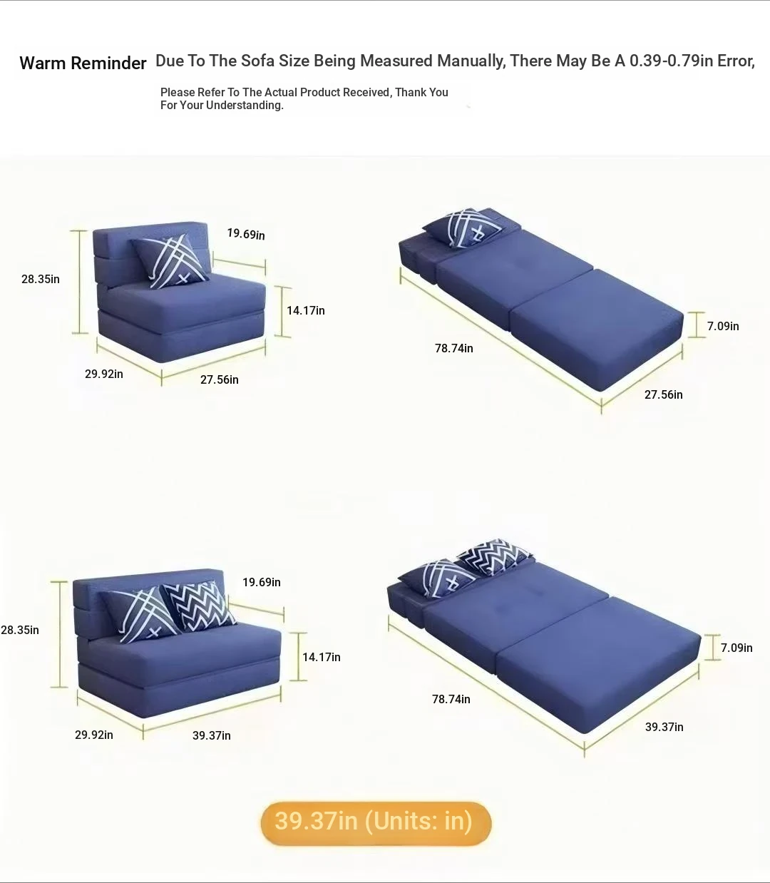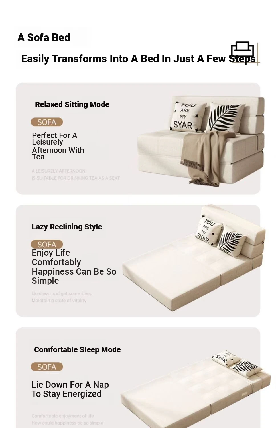 Versatile Folding Sofa Bed for Small Spaces - Single Bed, Easy to Clean, Ideal for Balconies, Thickened Foam for Comfort, Perfect for Couples and Compact Living!