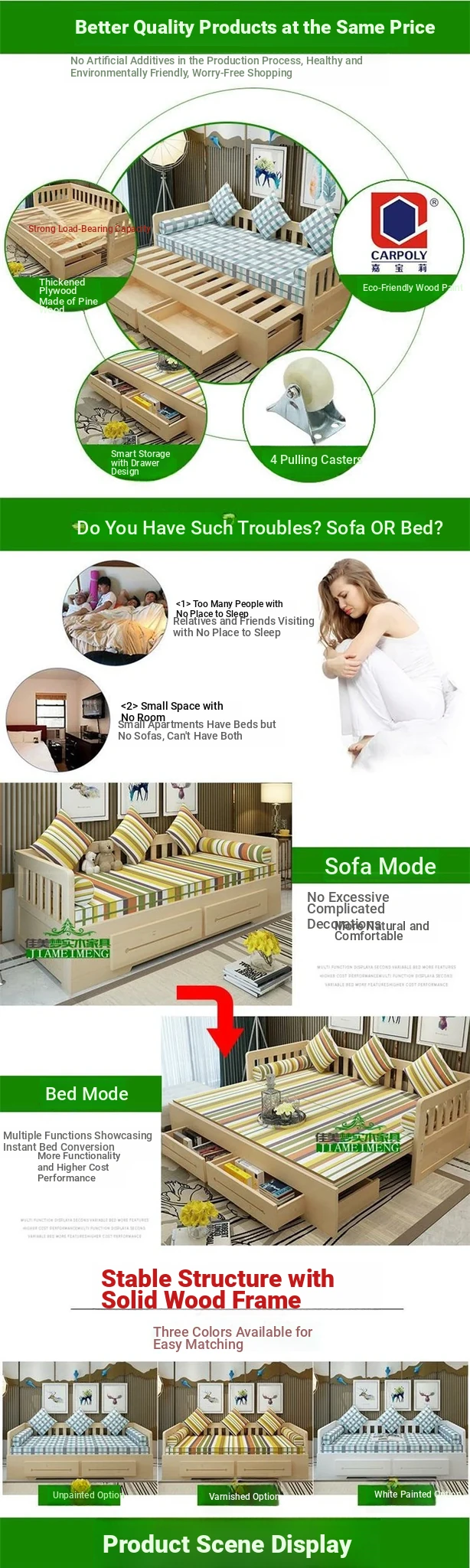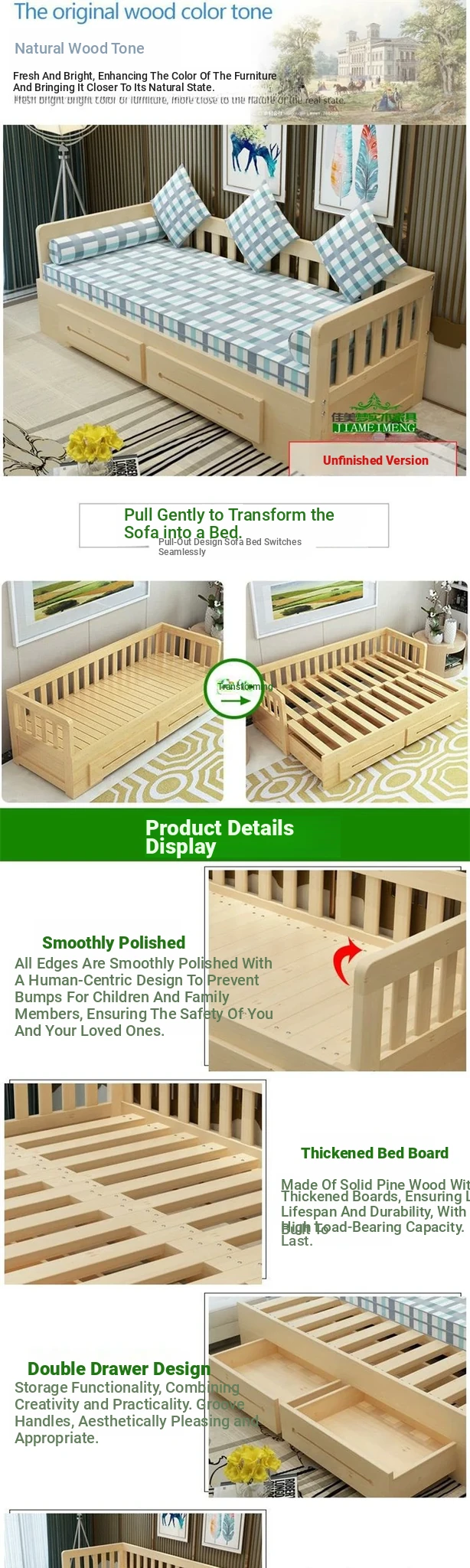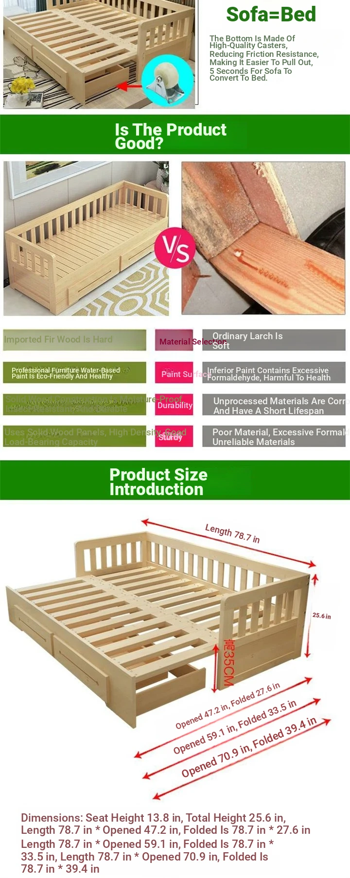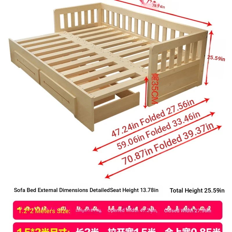 Versatile Folding Solid Wood Sofa Bed - Perfect for Small Spaces! 1.5m & 1.8m Options for Single & Double Use in Living Rooms - Stylish and Functional Design!