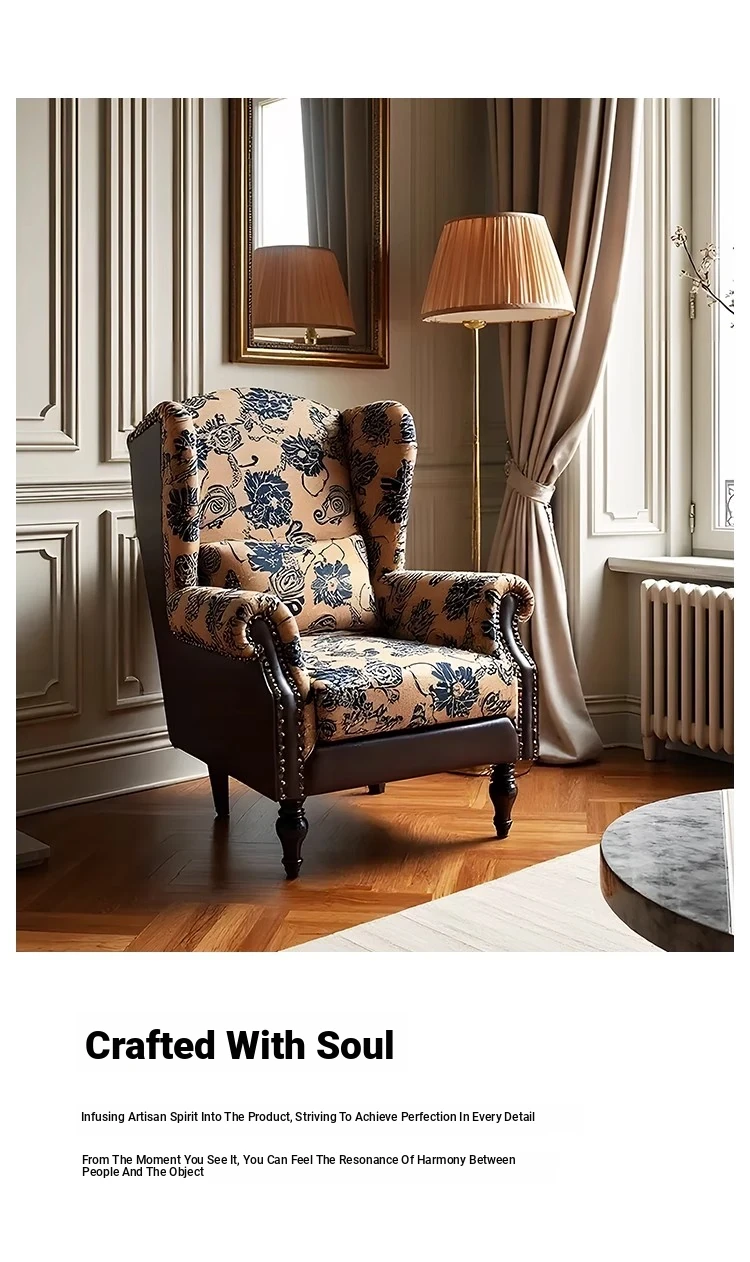 Vintage American Tiger Chair - Single Leisure Chair for Home, Living Room, Bedroom, Hotel, and Airbnb - Cozy Lazy Sofa with Classic Style