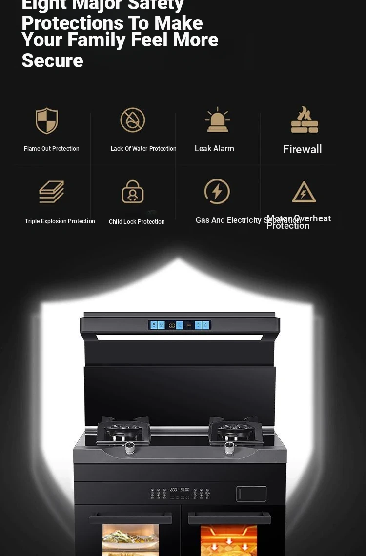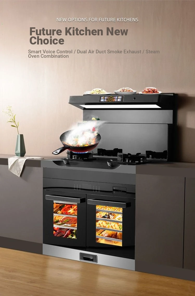 Xinfly Integrated Kitchen Appliance: Side-Suction Automatic Cleaning Range Hood, Gas Stove, and Disinfection Cabinet All-in-One Solution for a Spotless Kitchen Experience!