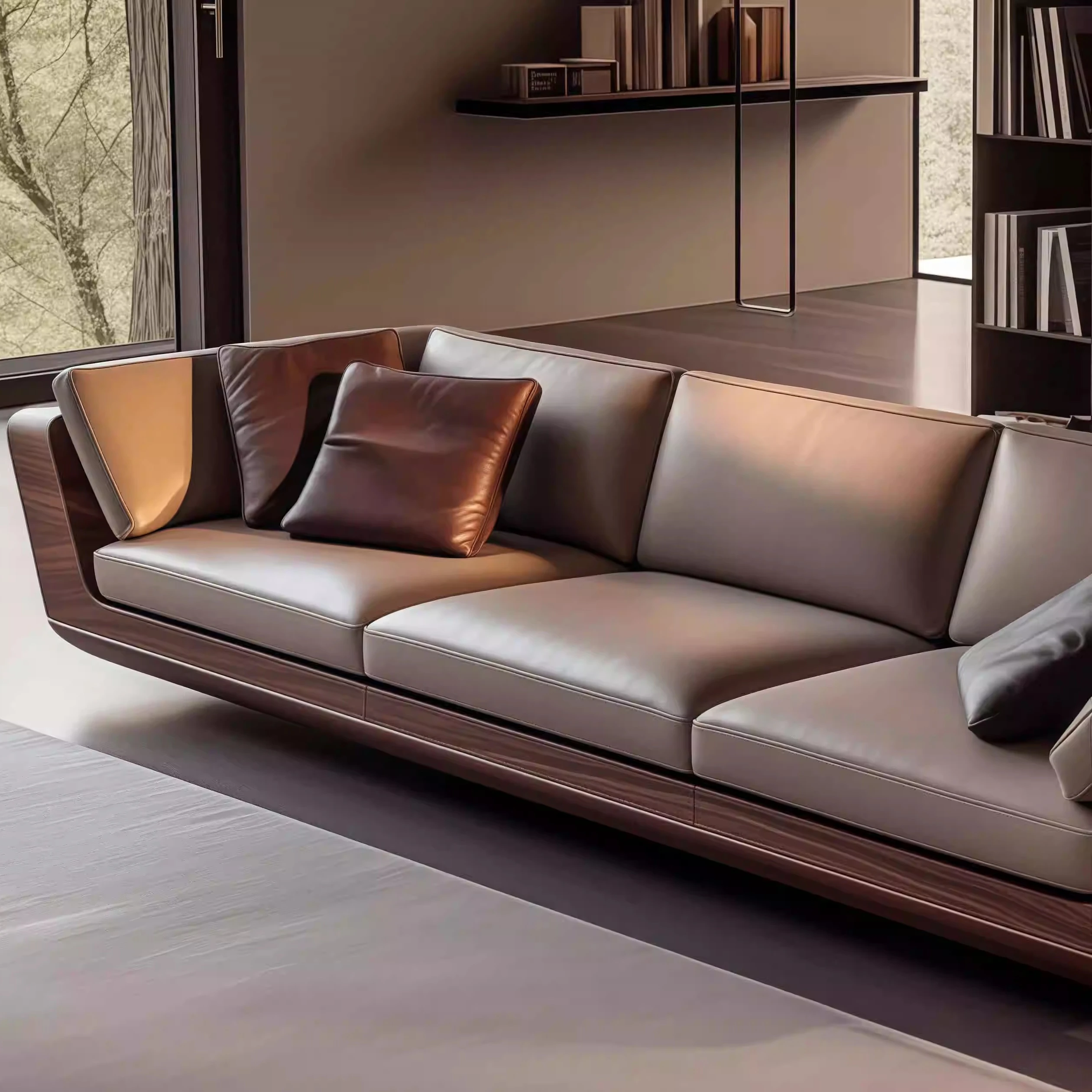 新中式デザインの高級無垢材ソファ|2025年新作!小型リビングに最適な布張りダブルソファ|スタイリッシュなブラックウォールナット使用!快適さと美しさを兼ね備えた、あなたのリビングにぴったり!