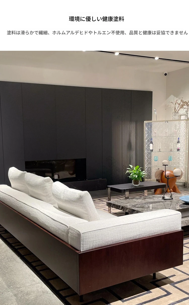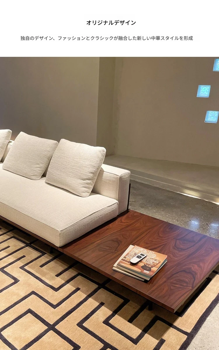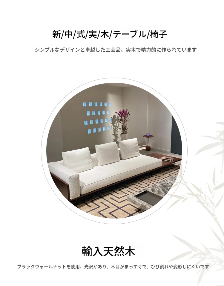 2025年新作!高級感溢れる中式デザインの無垢材ソファ - ブラックウォールナットの贅沢な布製直置きソファ、リビングルームに最適なスタイリッシュな家具!