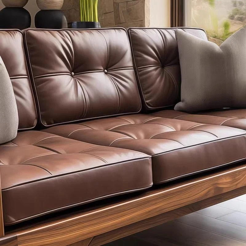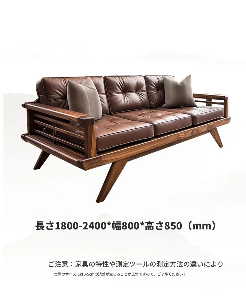 2025年新作!新中式直排実木ソファー - モダンでシンプル、小型リビングに最適な皮革仕上げの北米産ブラックウォルナット製。快適さとスタイルを兼ね備えた一品!