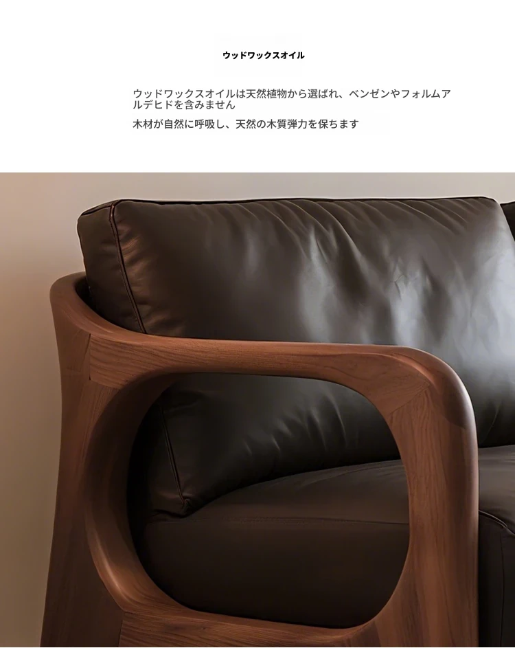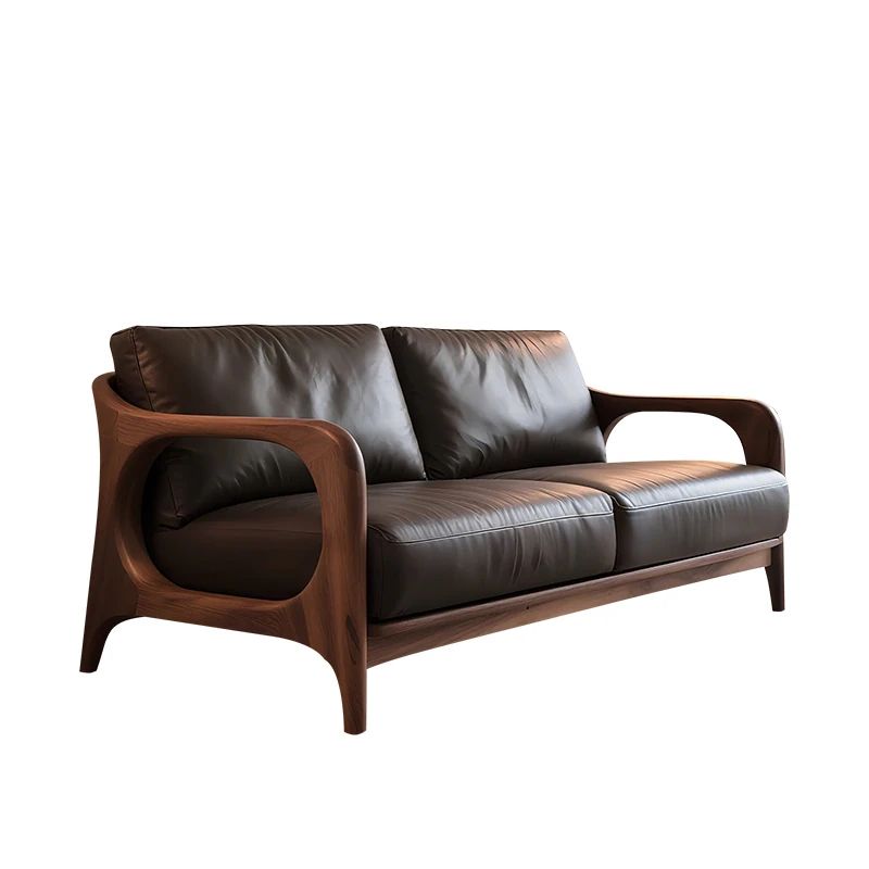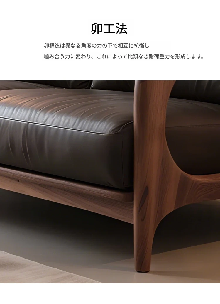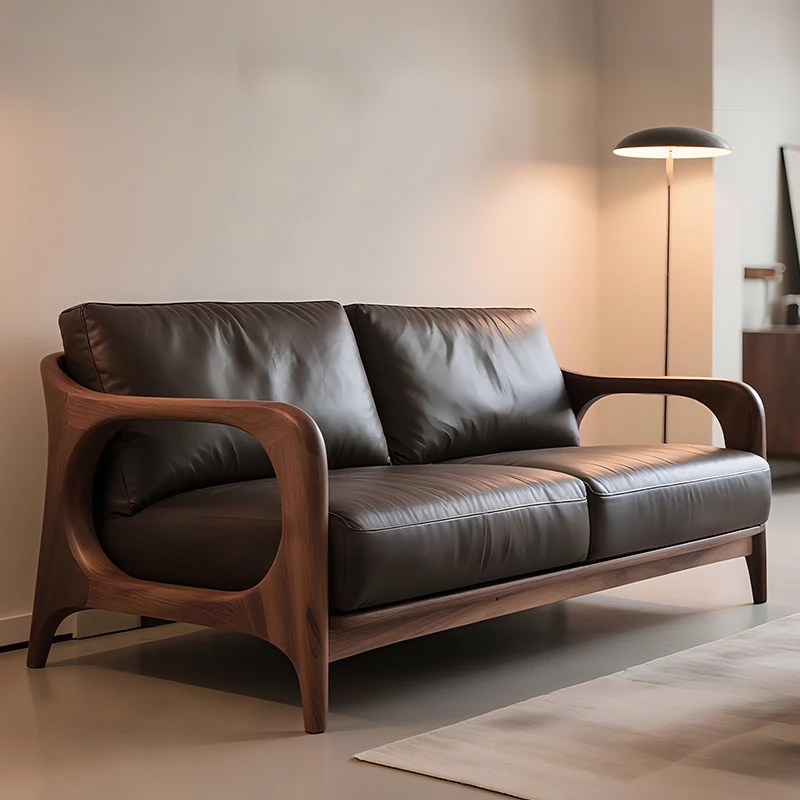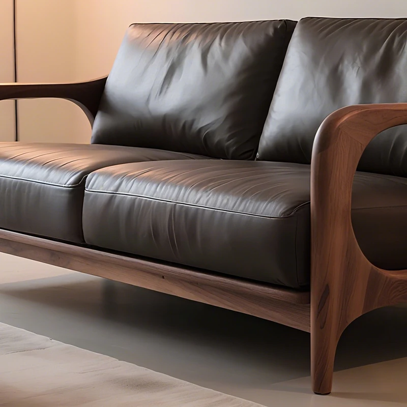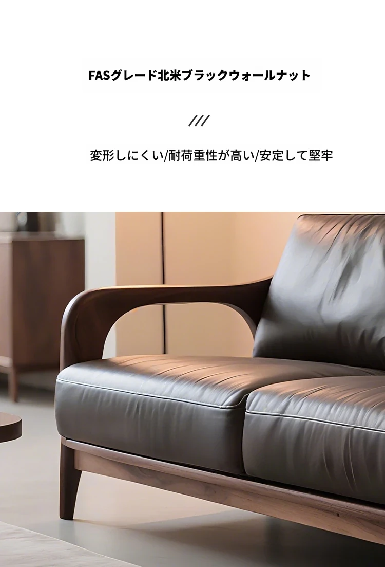 2025年新款!新中式実木製ソファー - 小型リビングにぴったりなダブルタイプ!モダンでシンプルなデザイン、真皮と胡桃木の贅沢なコンビネーション!快適な座り心地を提供します。あなたの空間を優雅に彩る一品です!