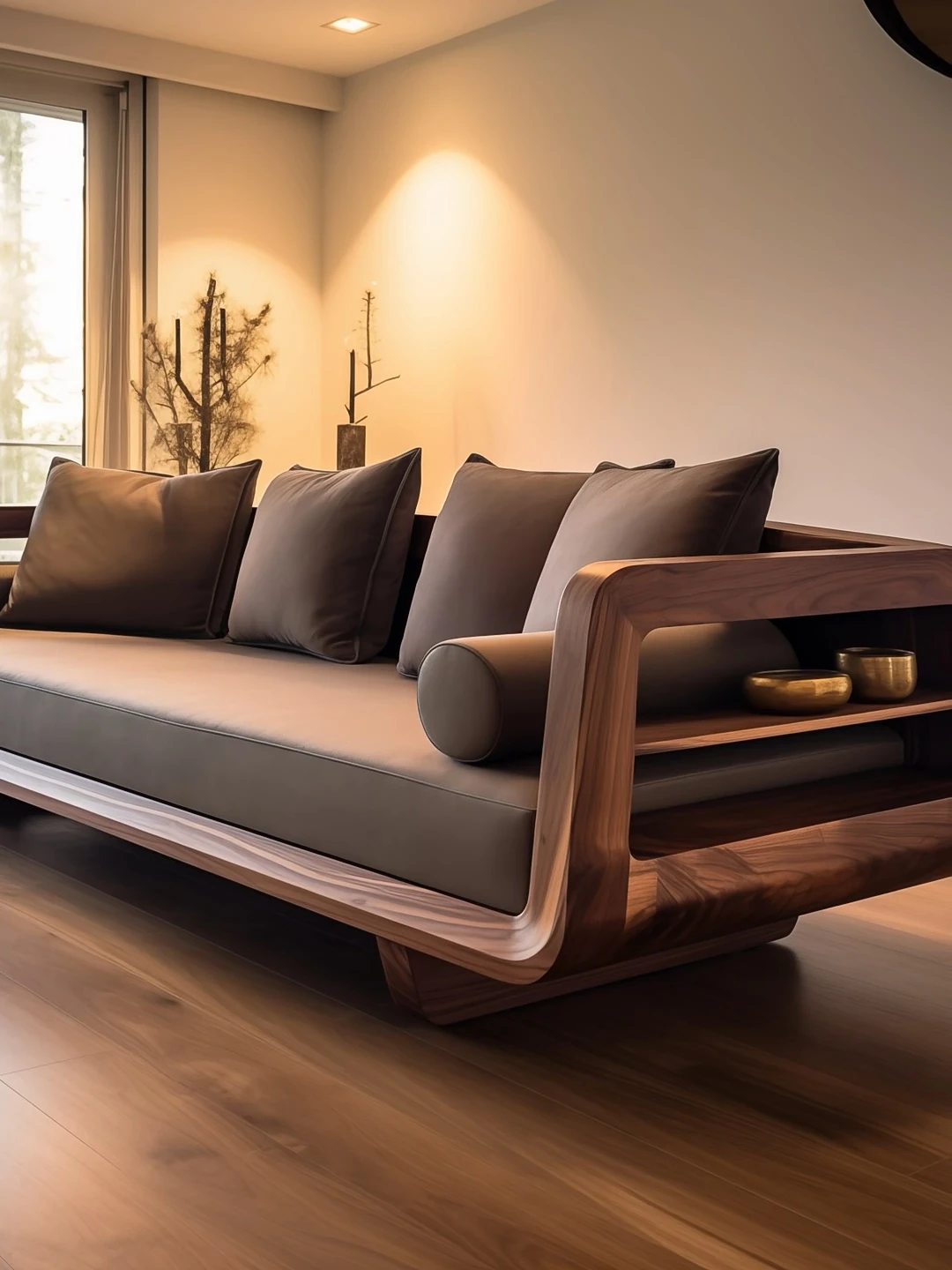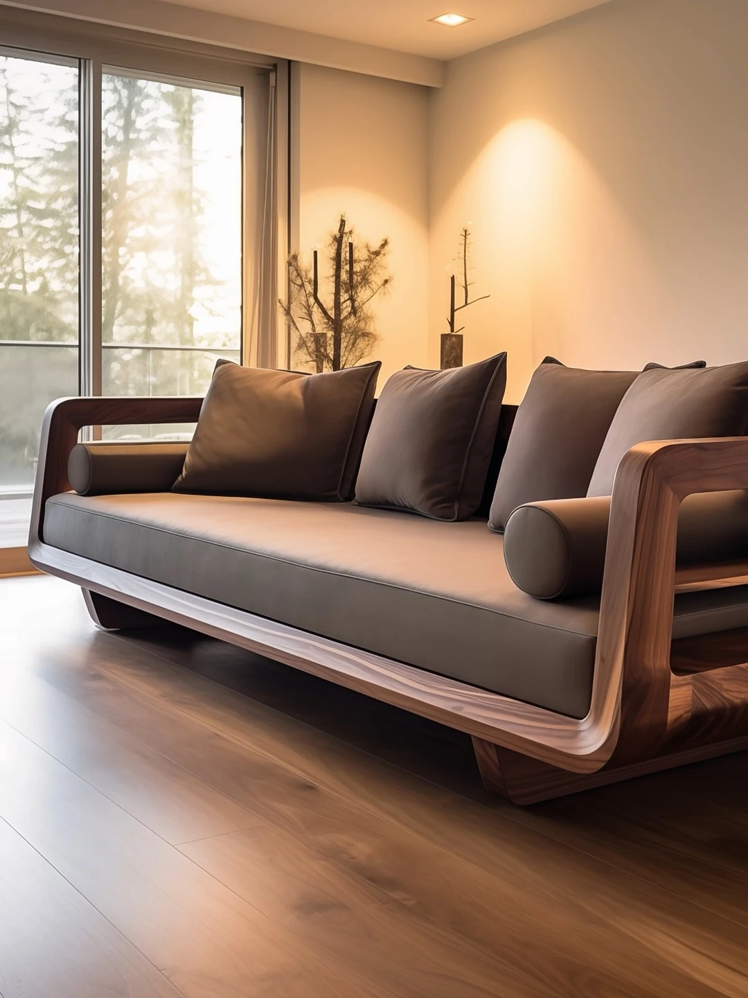 2025年新款!新中式スタイルの本革ダブル&トリプルソファ - 北米産ブラックウォールナット使用の高級実木リビングソファ。快適さと洗練されたデザインで、あなたのリビングを格上げ!