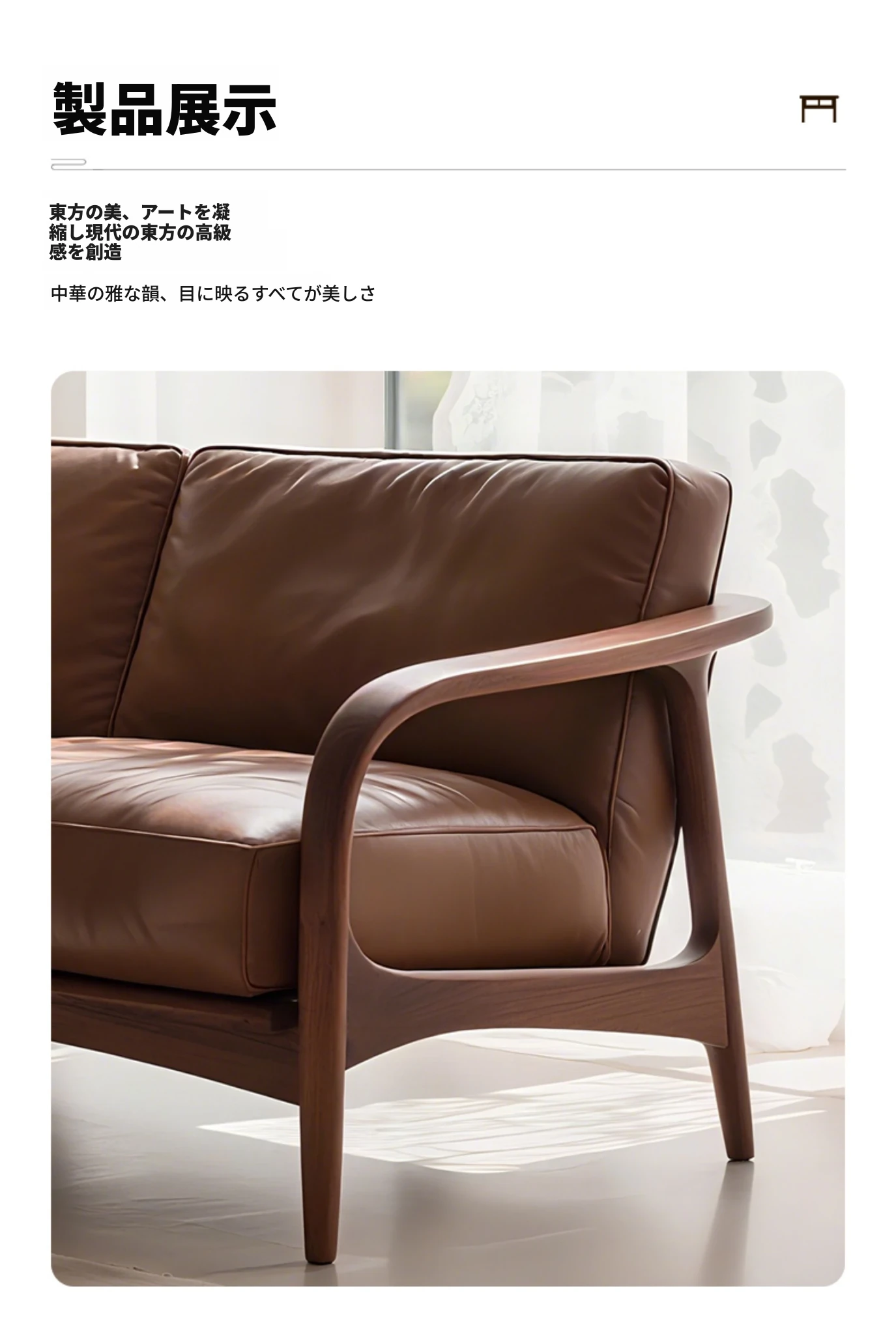 新しい中式デザインの無垢材ソファ2025年モデル!モダンでシンプルな家庭用ストレートソファ。高級ウォールナット材を使用した洗練されたデザインで、リラックスしたひとときを提供します。