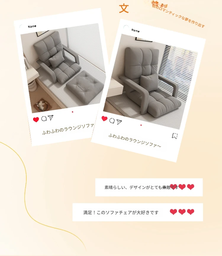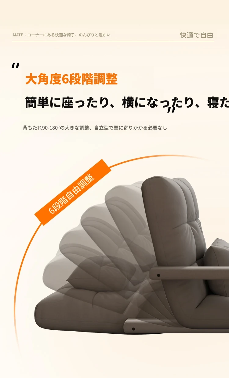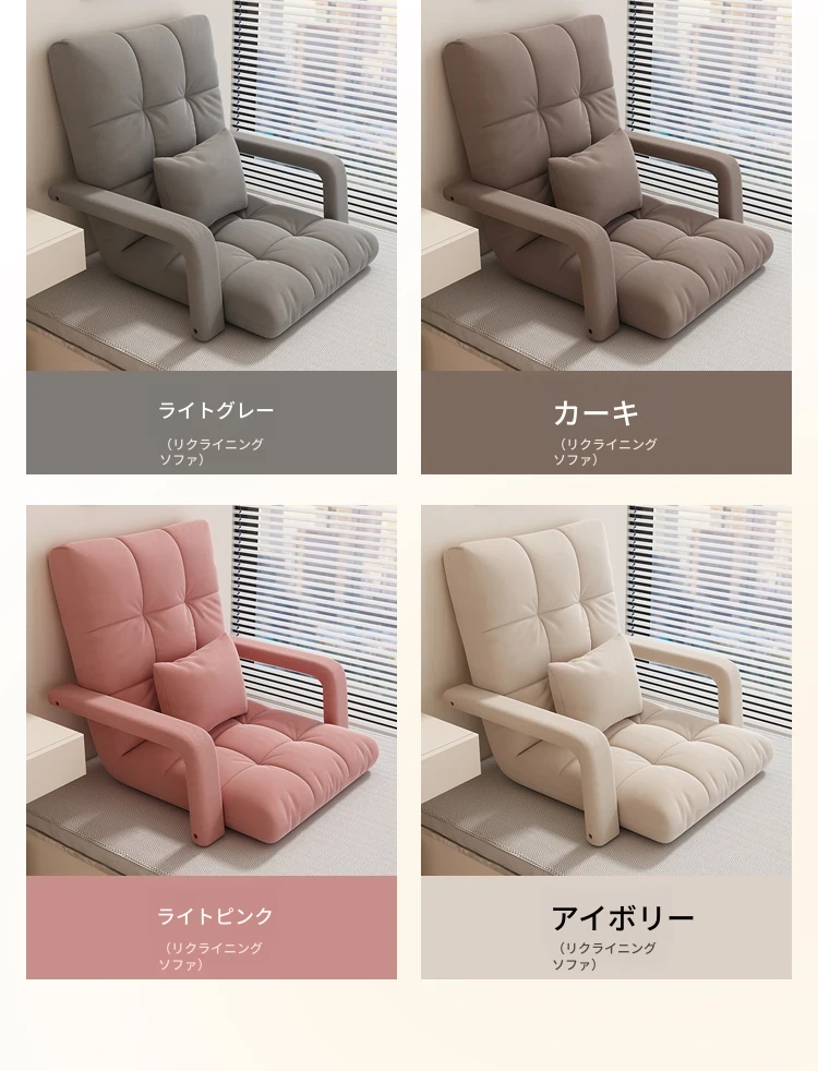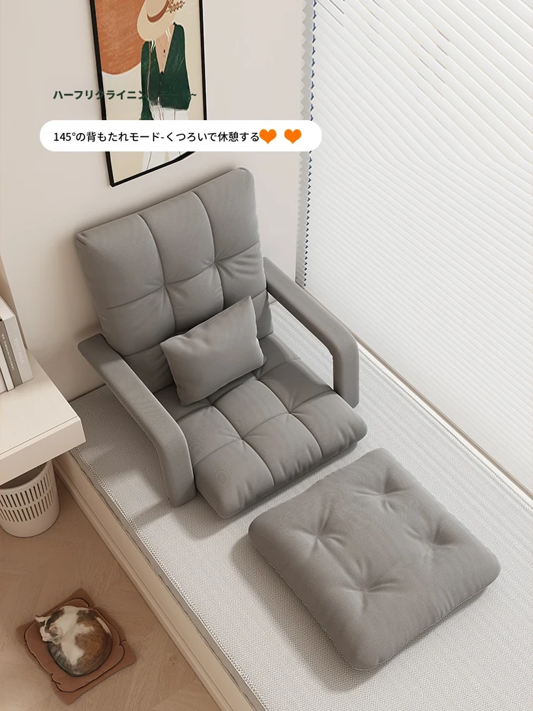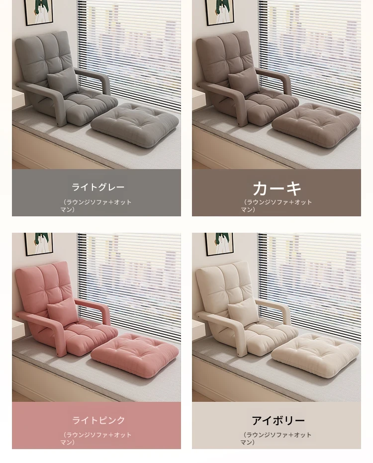 リラックスできる背もたれ付きのソファチェア - フットレストと肘掛け付きで、床にぴったりフィット!寝そべって快適にくつろげる、畳や窓辺にも最適な一人用ソファ。あなたのリラックスタイムを贅沢に演出します!