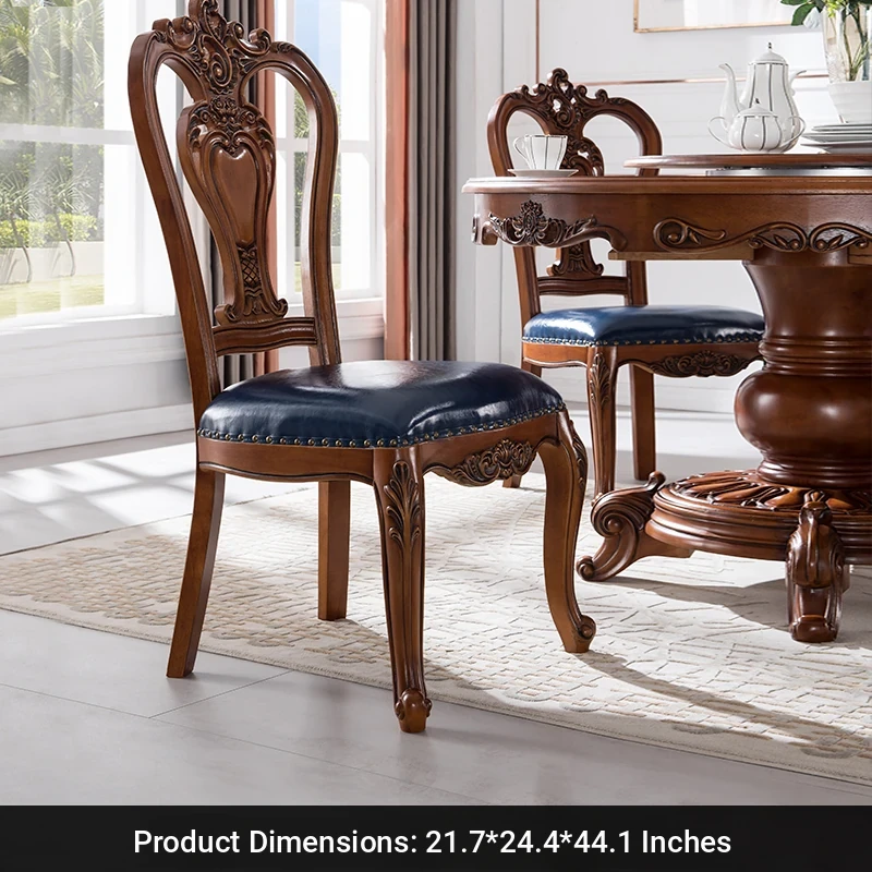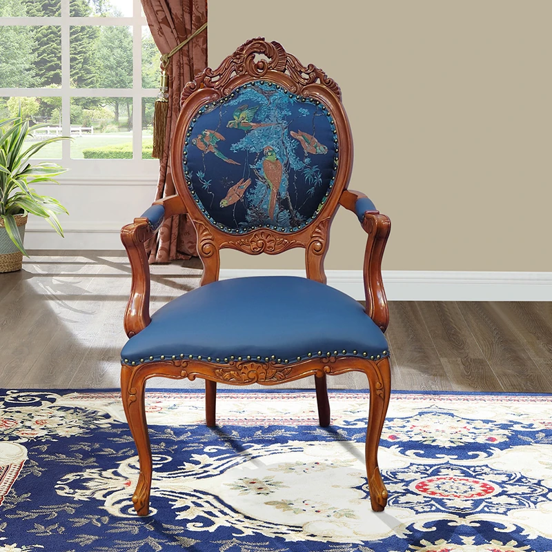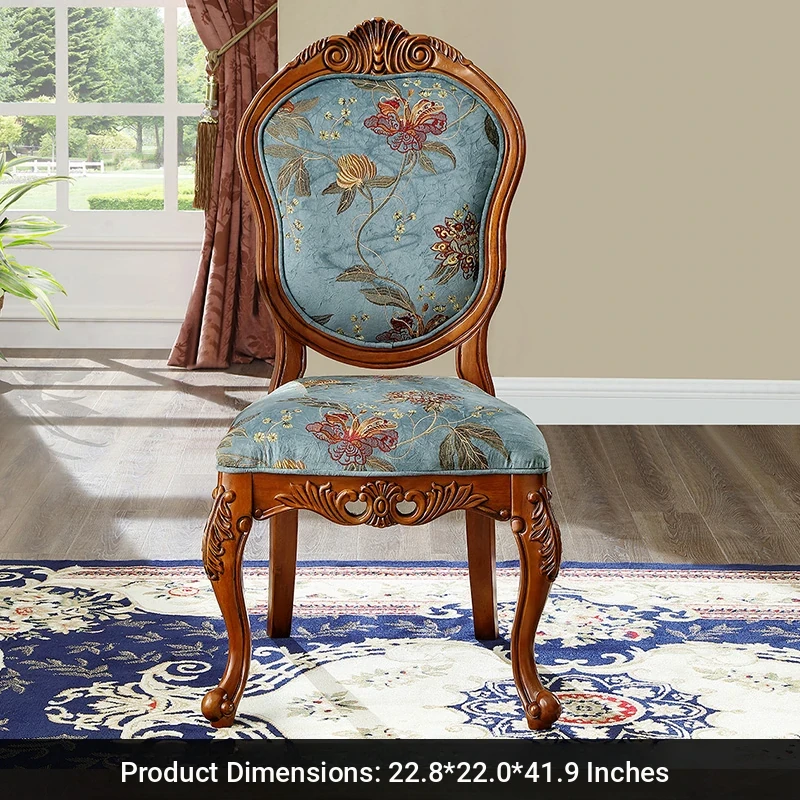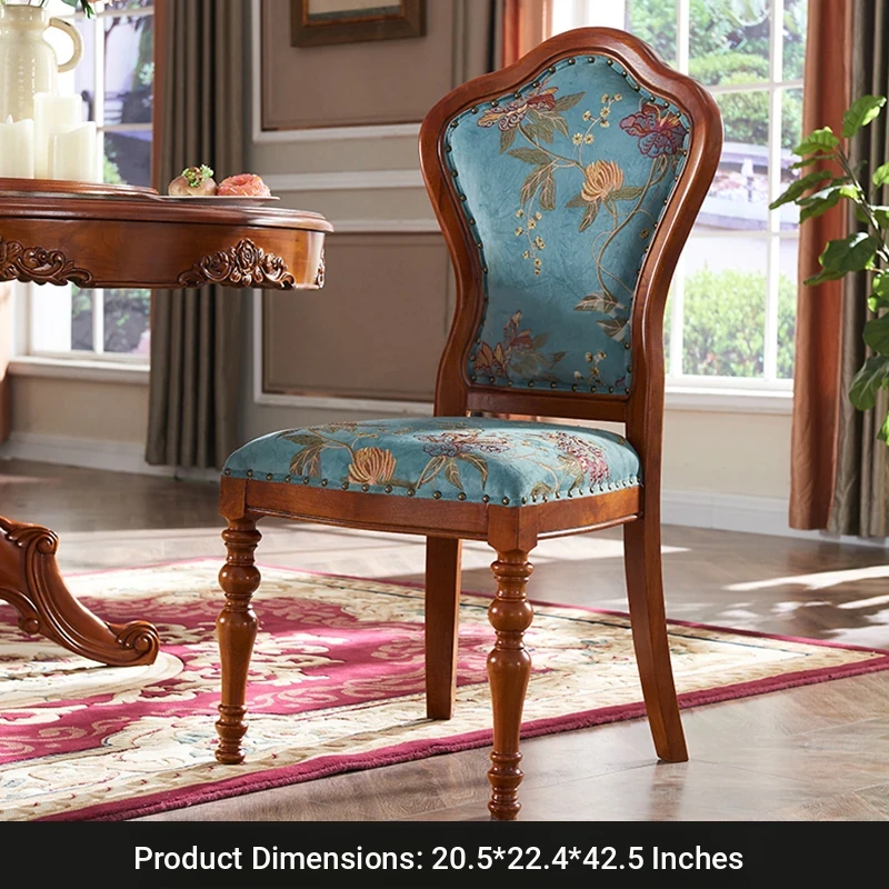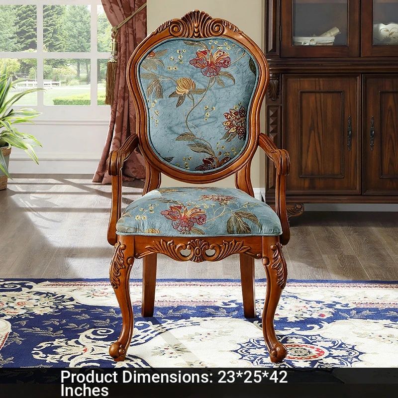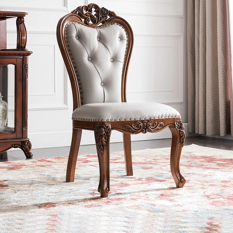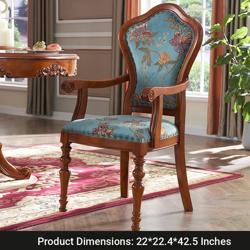 American Solid Wood Dining Chair - Upholstered Leisure Chair with Backrest, Elegant European Style Computer Chair for Home Office, Comfortable Armchair for Study Room