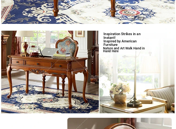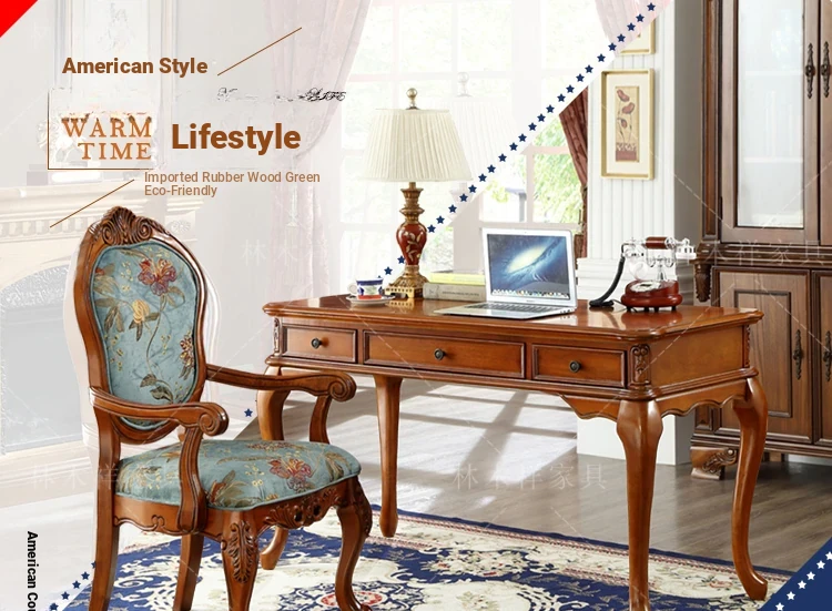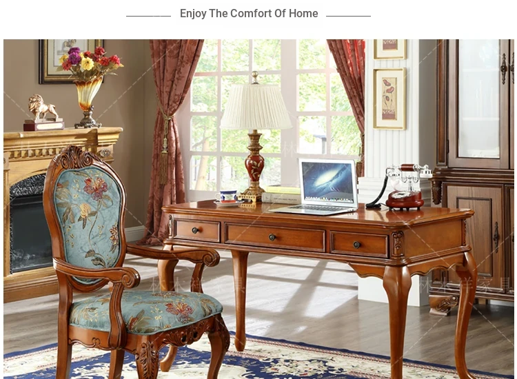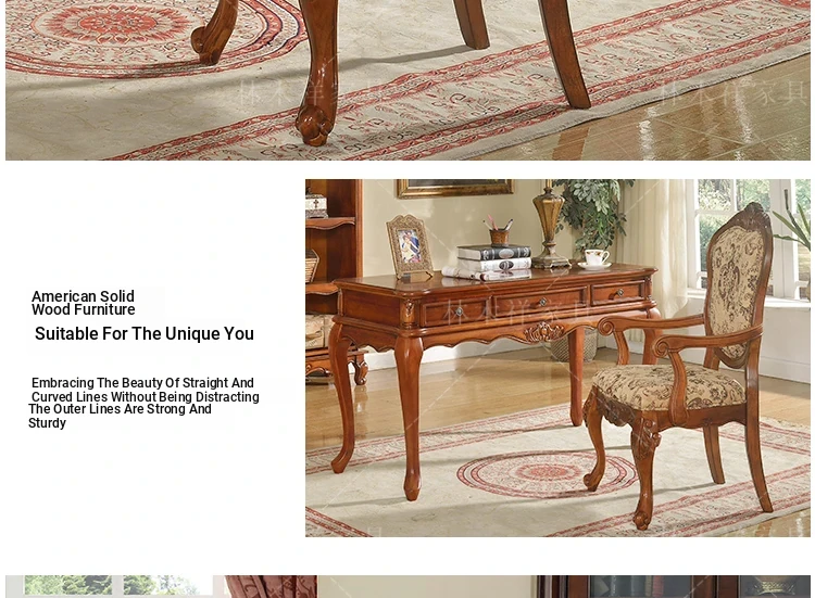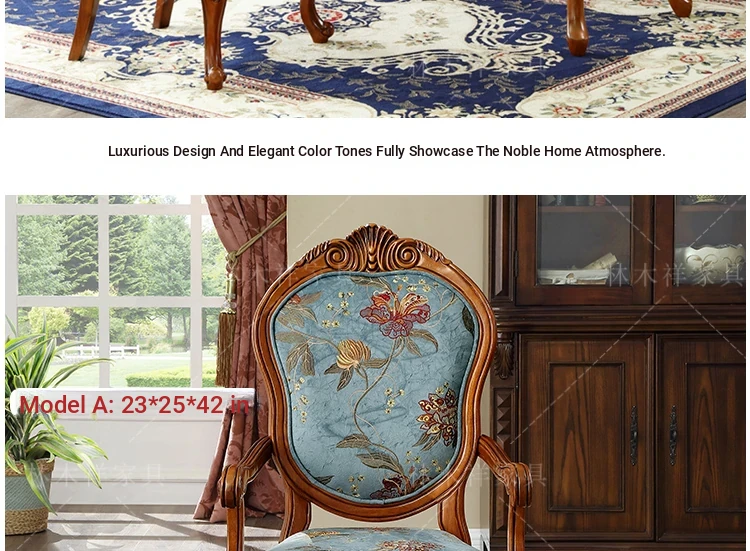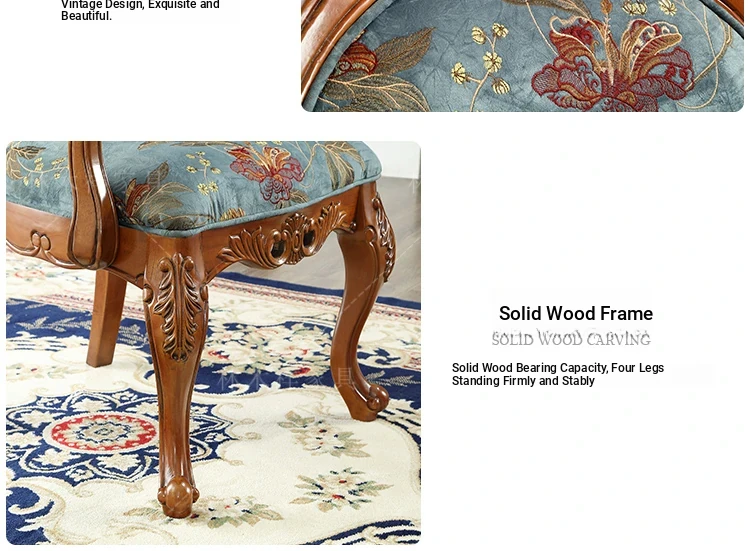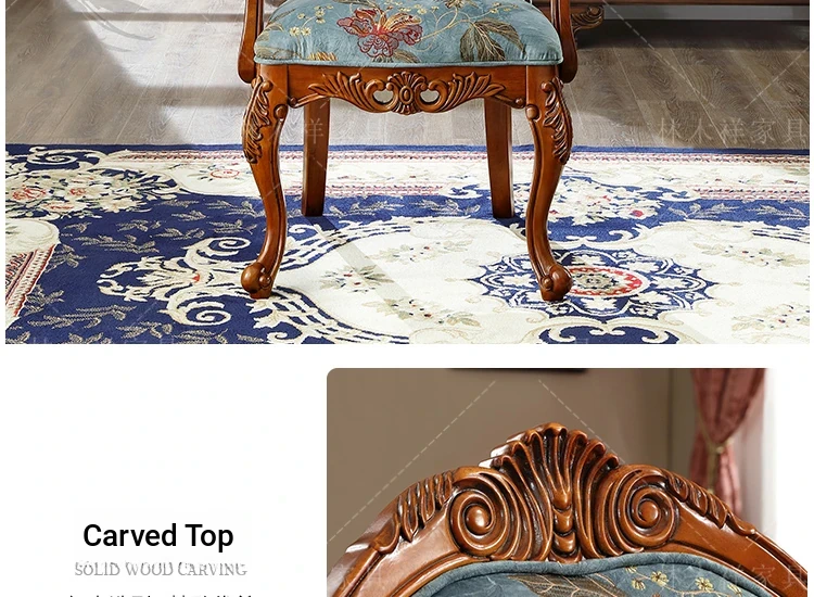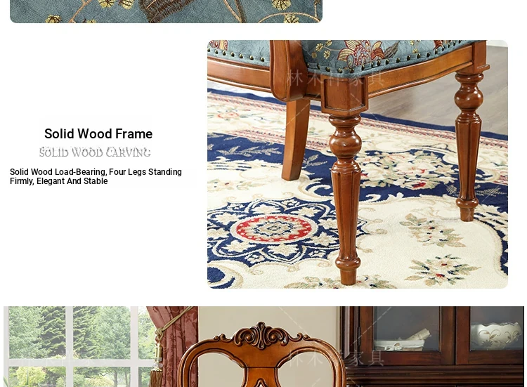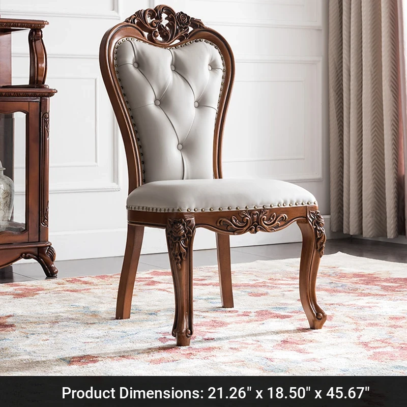 American Solid Wood Dining Chair - Upholstered Leisure Chair with Backrest, Elegant European Style Computer Chair for Home Office, Comfortable Armchair for Study Room