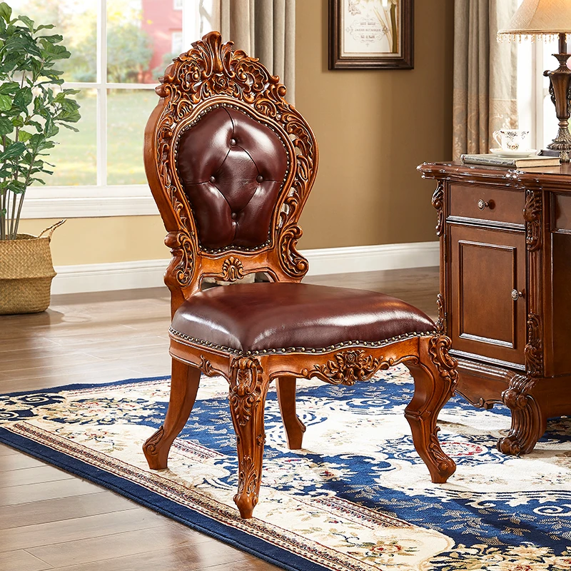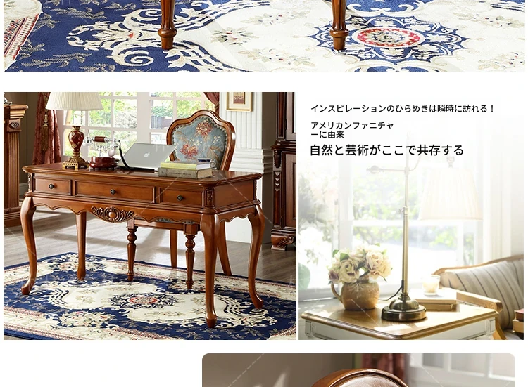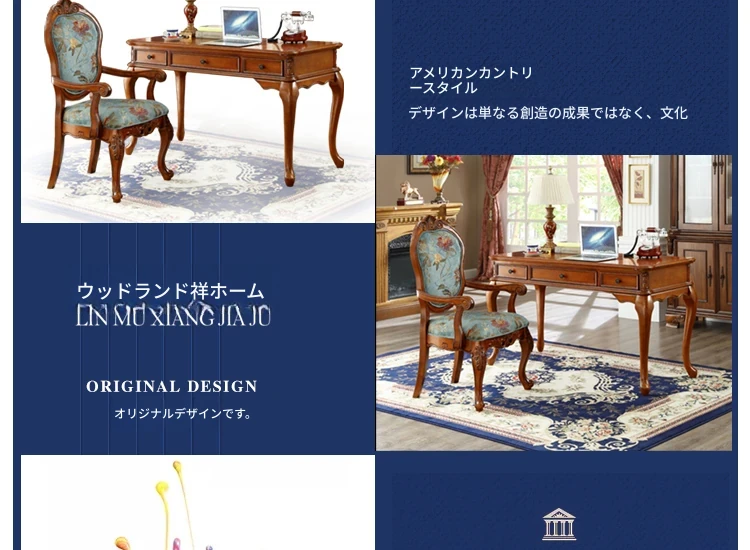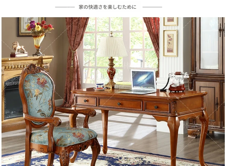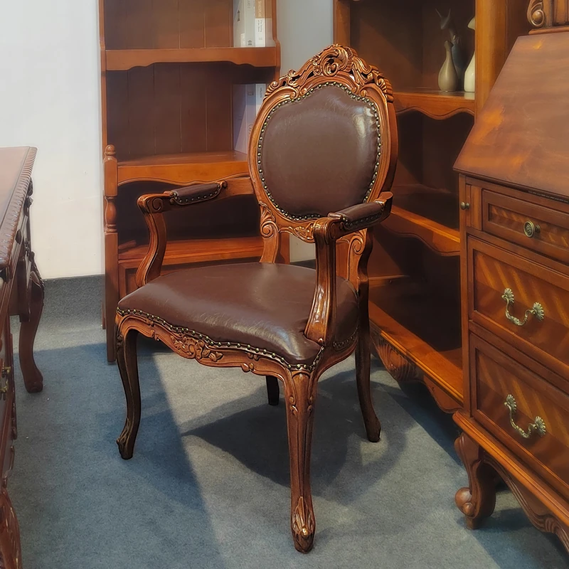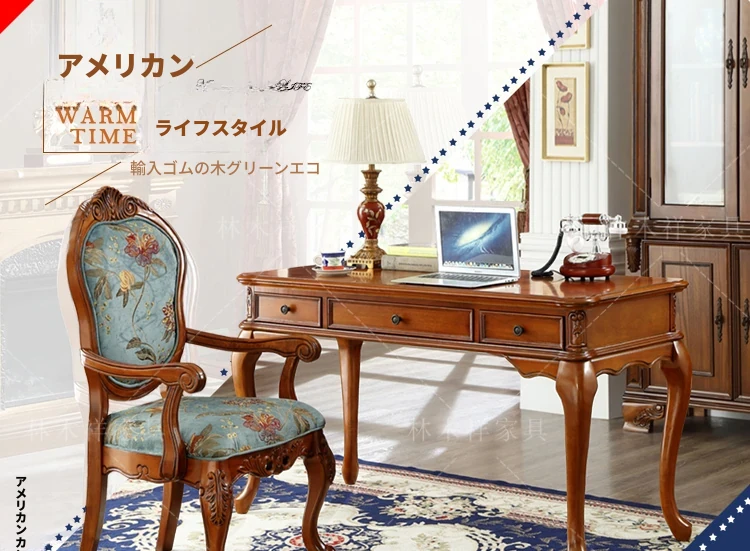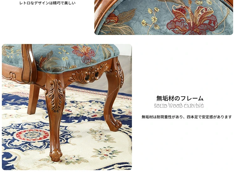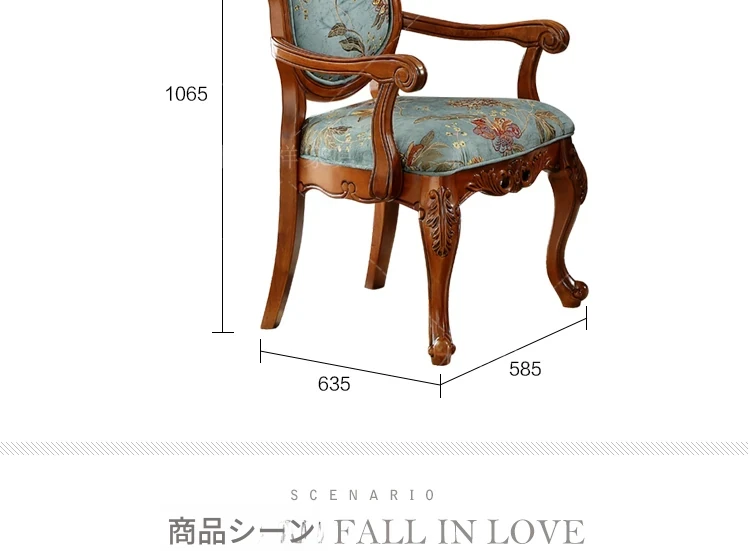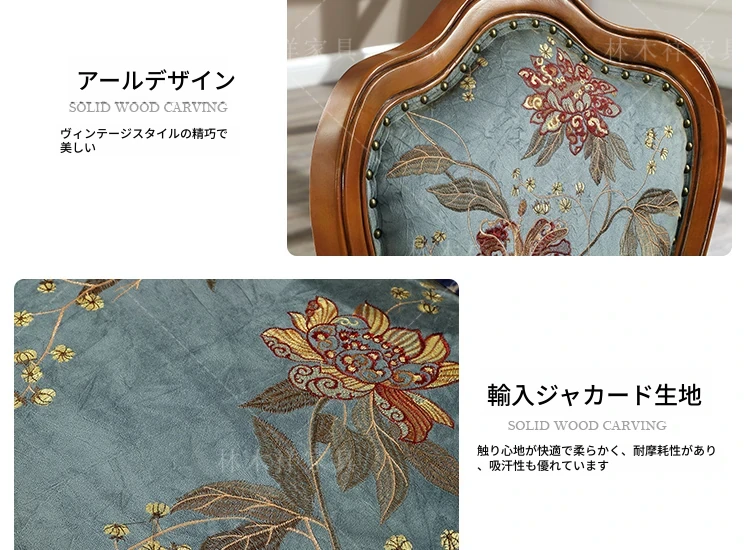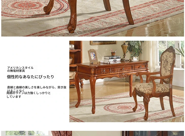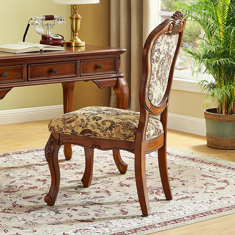 アメリカンスタイルの全木製ダイニングチェア|布製クッション付き|リラックスできる背もたれ|欧風デザインのパソコンチェア|書斎やリビングにぴったりなアームチェア!快適さとスタイルを両立させた一品です。